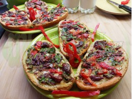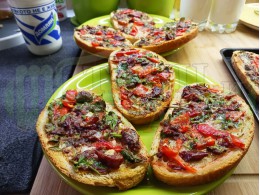 В "Свързани продукти" вижте рецептите на други видове филийки запечени на фурна, мини скара или тостер, печива със саздърма, червени и/или зелени пресни чушки, различни яйчени плънки и техни"ТЕ" производни.