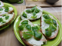 ПРОДУКТИ: Приблизителни количества за препечени филийки на тостер с масло, краве бяло сирене и зелена чушка