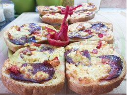 Поставете тавите с намазаните филийки в предварително загрятата фурна (загрейте я за поне 5 минути). Запечете (запържете) на фурна без вентилатор на 180 градуса за около 30 минути.