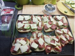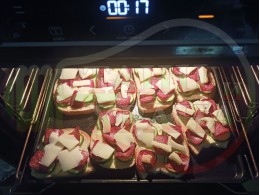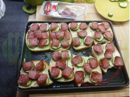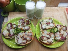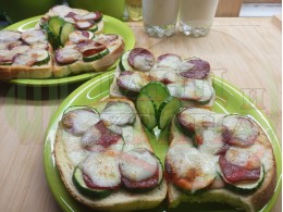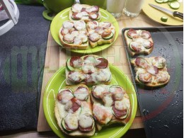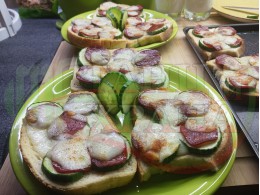 В "Свързани продукти" вижте рецептите на други видове филийки запечени на фурна или мини скара с различни видове колбаси, салам, краставици, млечен кашкавал и техни"ТЕ" производни.