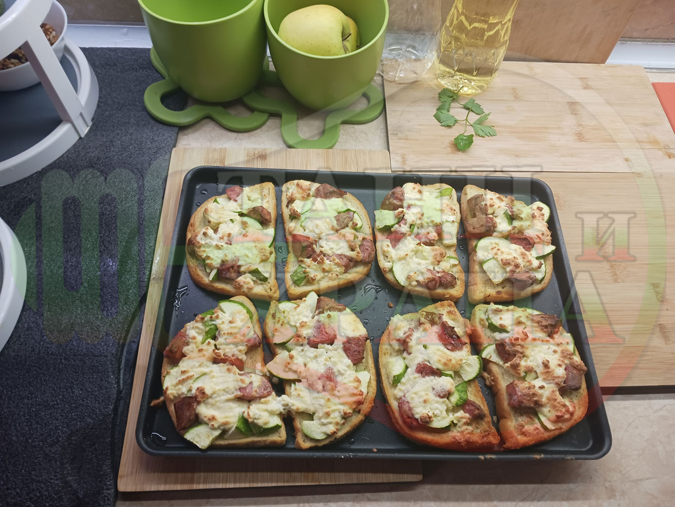В "Свързани продукти" вижте рецептите на други видове филийки и сандвичи запечени на фурна, салати, печива и ястия с тиквички, наденица и техни"ТЕ" производни.