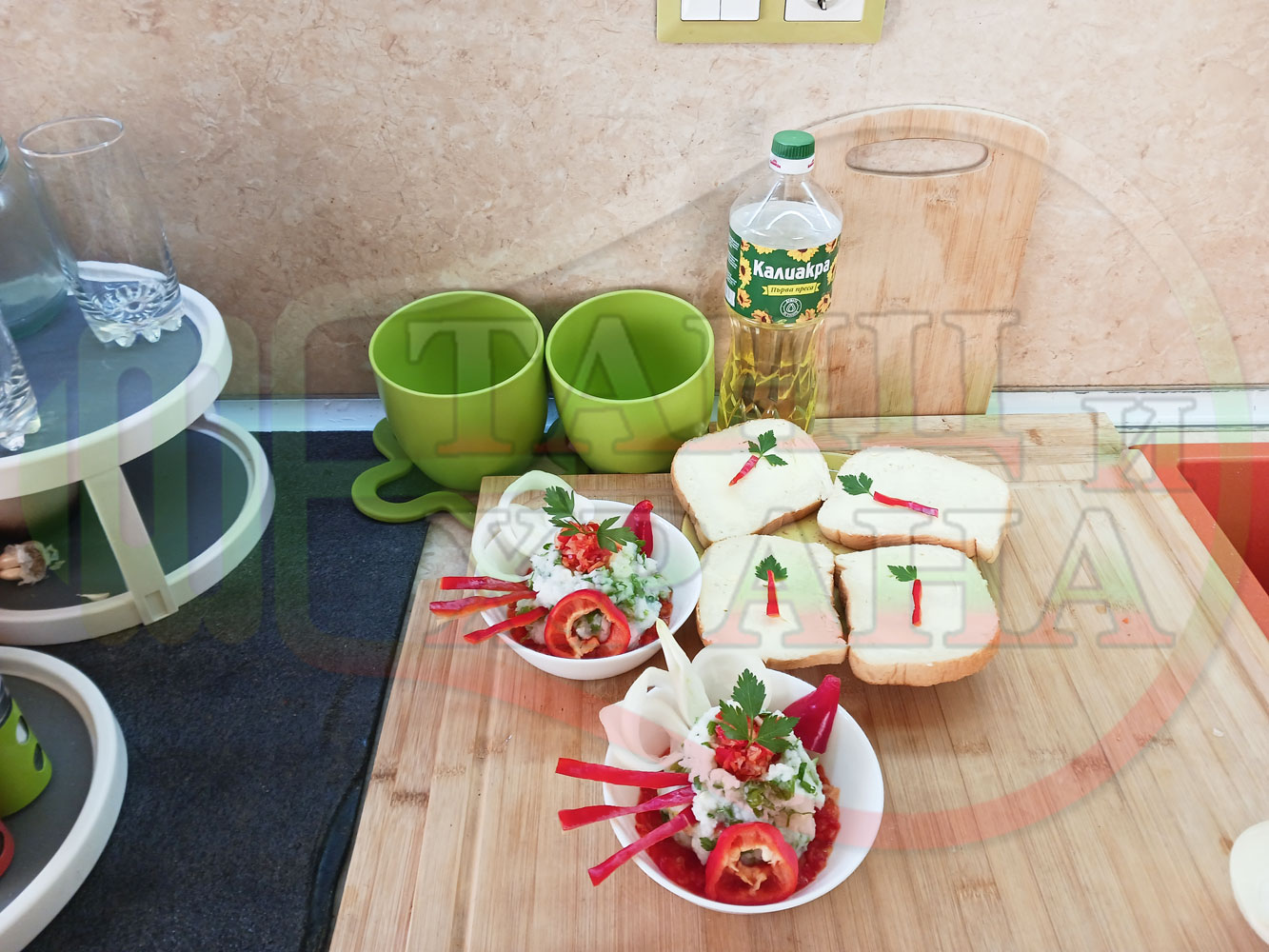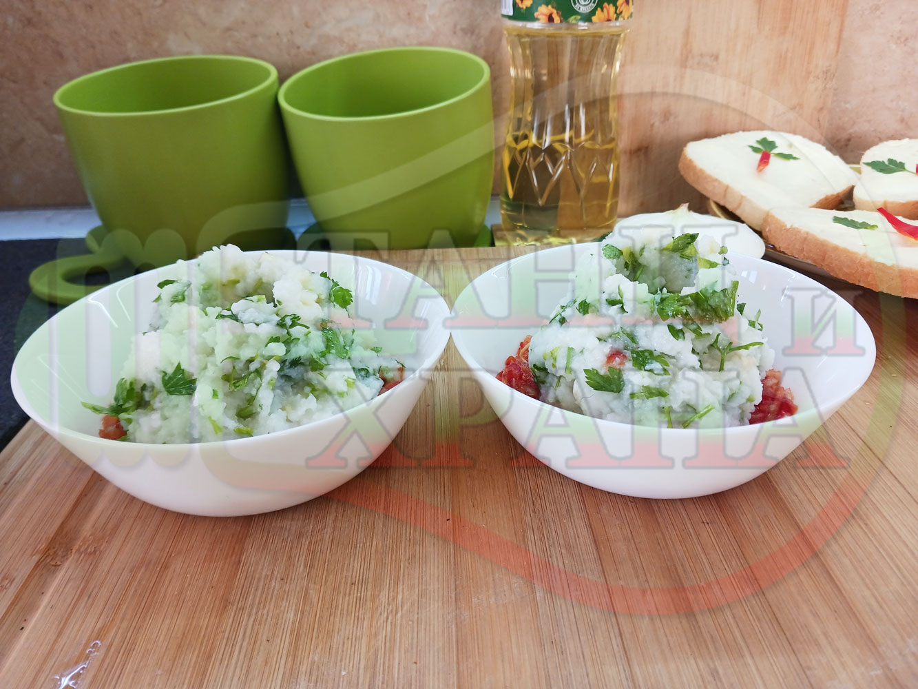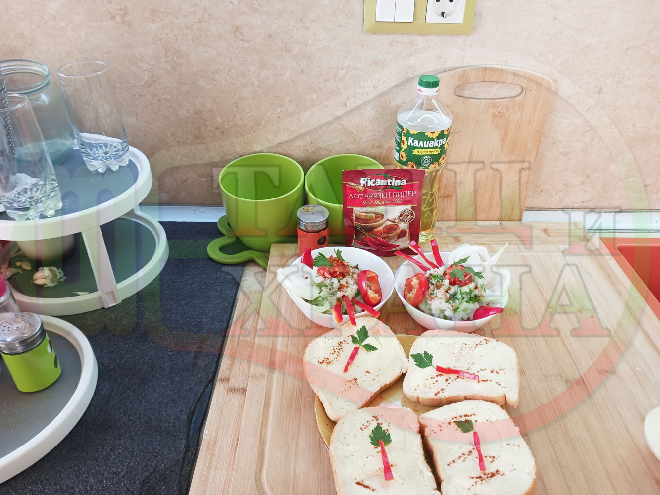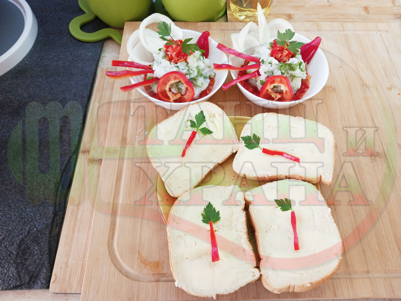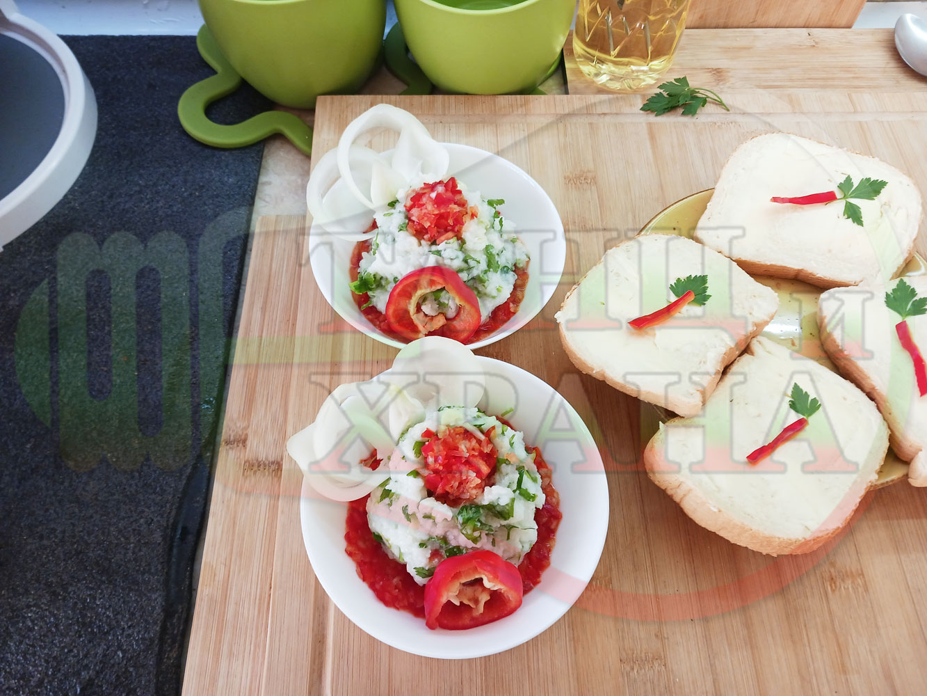 ОФОРМЯНЕ НА ПОРЦИИТЕ И НАПЪЛВАНЕ С ЧЕРВЕНОПИПЕРКОВАТА ЯХНИЯ (ОСНОВЕН КОМПОНЕНТ)