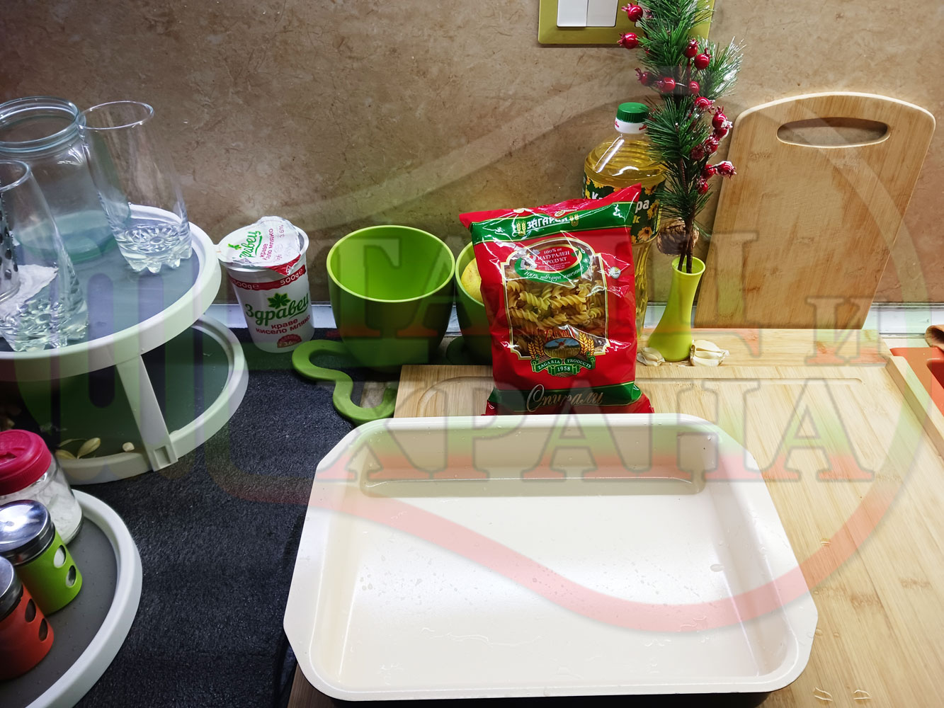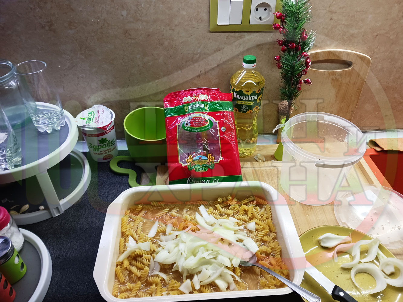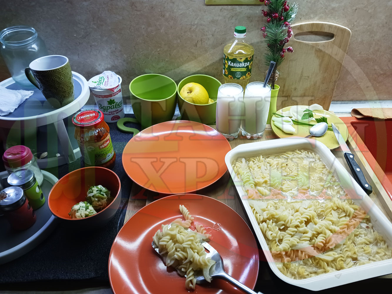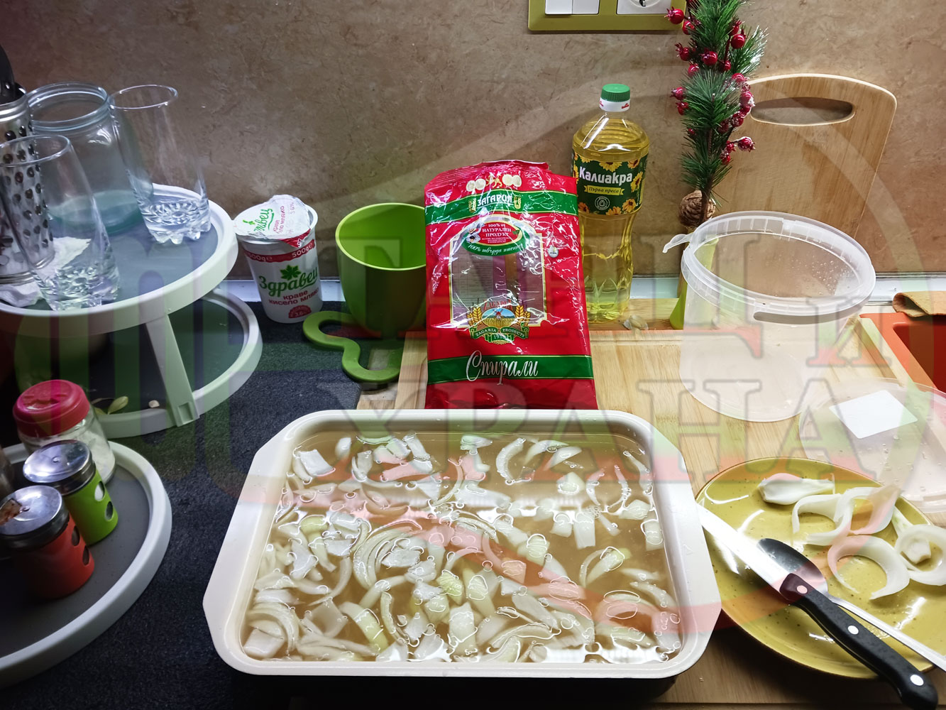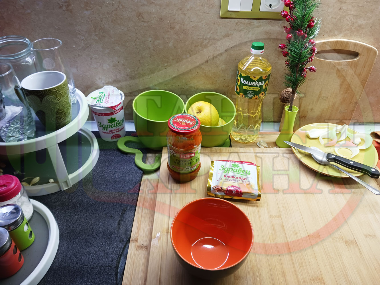 ... вплела традиционни български продукти, които се намират във всеки български дом през зимните и пролетни месеци (сок от кисело зеле и лютеница). ![]()
