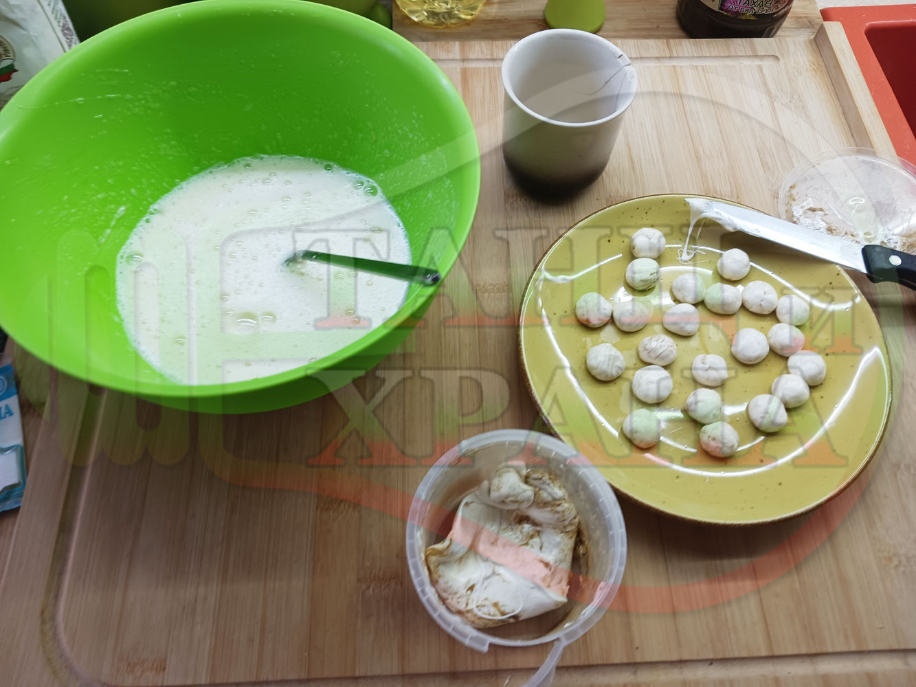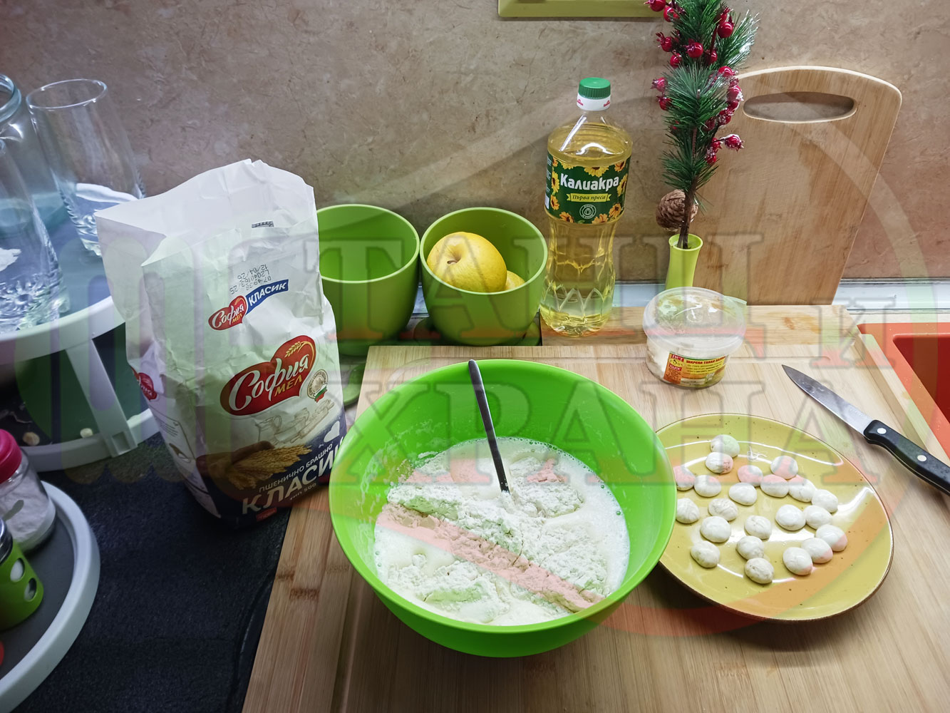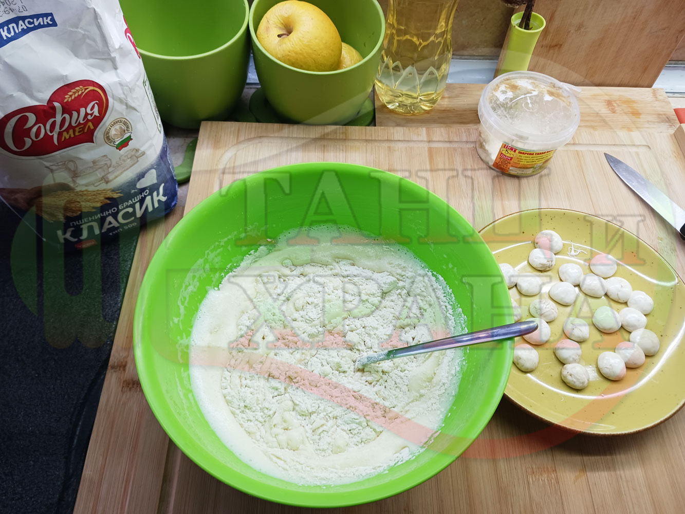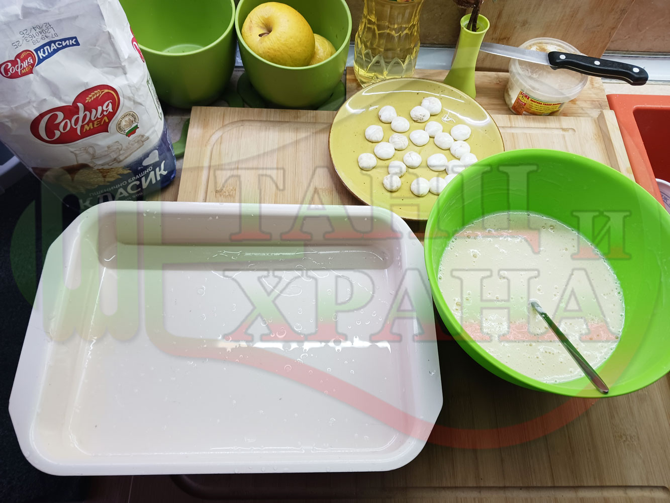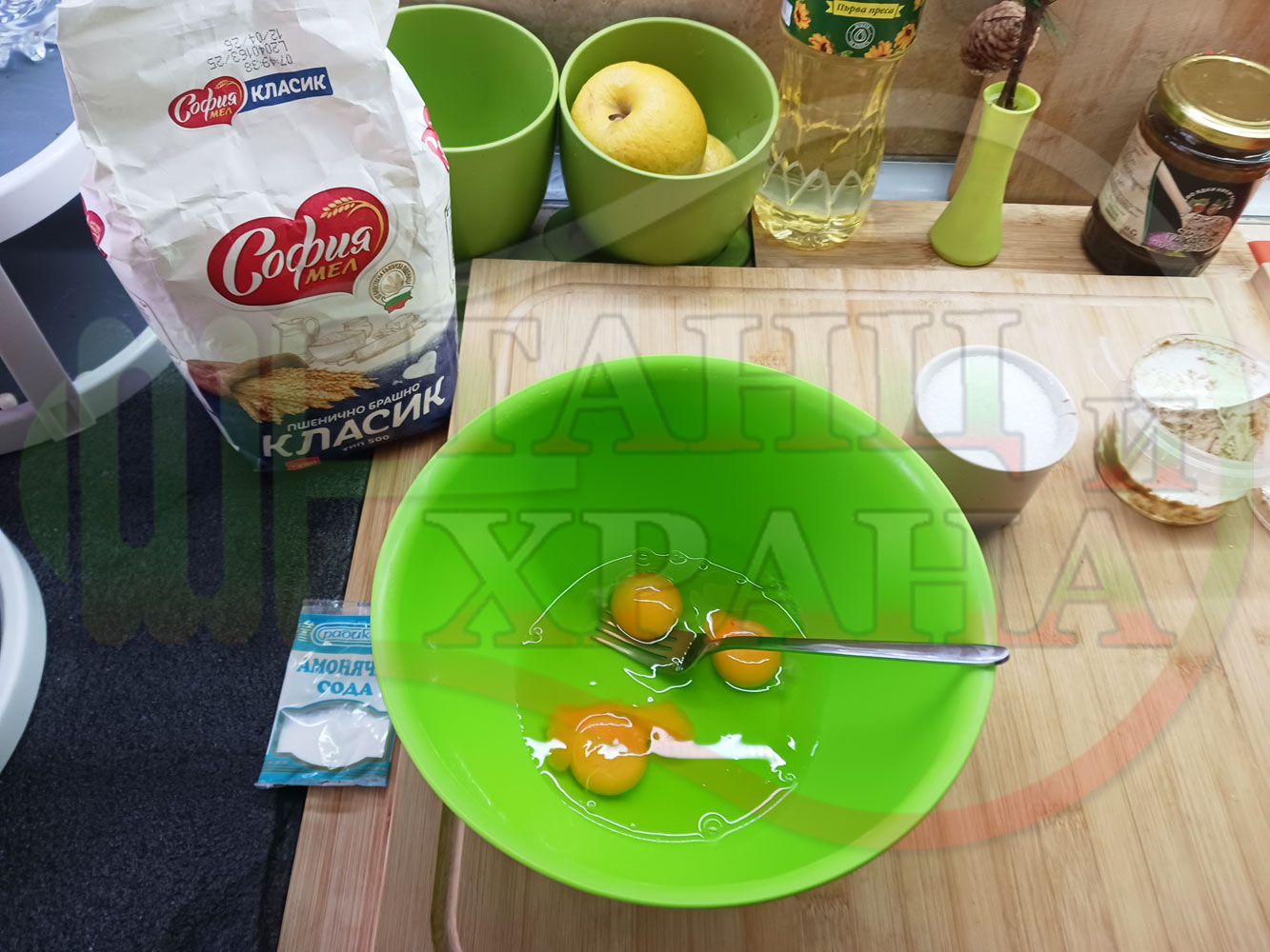 ПРОДУКТИ: Приблизителни количества за български сладък кекс "Халвян орехов" приготвен с яйца, брашно, прясно мляко и кристална захар с плънка от топчета оформени от тахан халва от Ябланица и сурови орехи