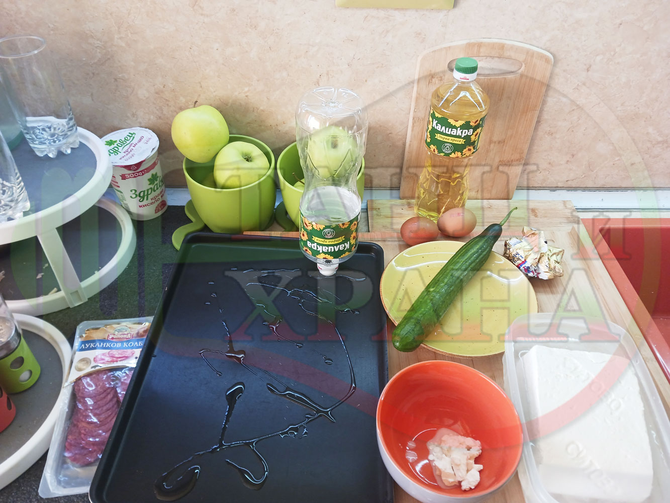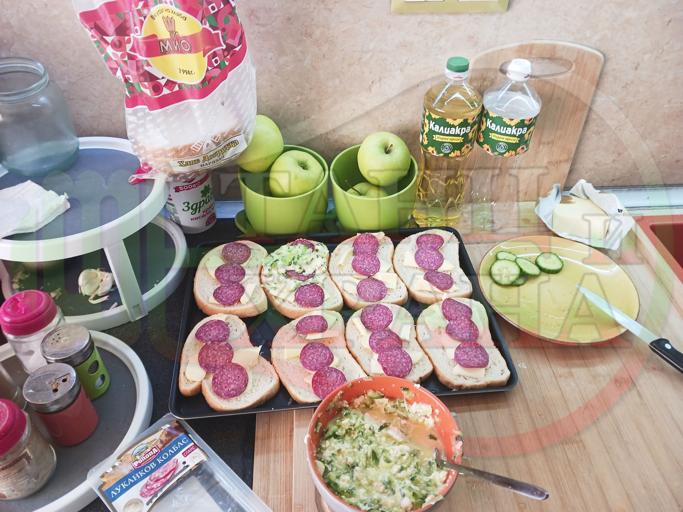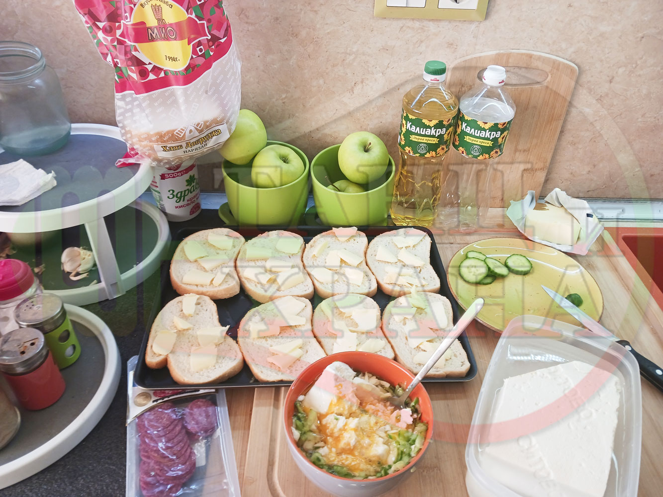 ПРОДУКТИ: Приблизителни количества за български филийки "Краставичнояйчени чеснови с БГсирене" запечени на фурна с краве масло, луканков колбас и яйчено сиренова плънка с пресни краставици, яйца, стар чесън и краве бяло сирене (българско, саламурено)