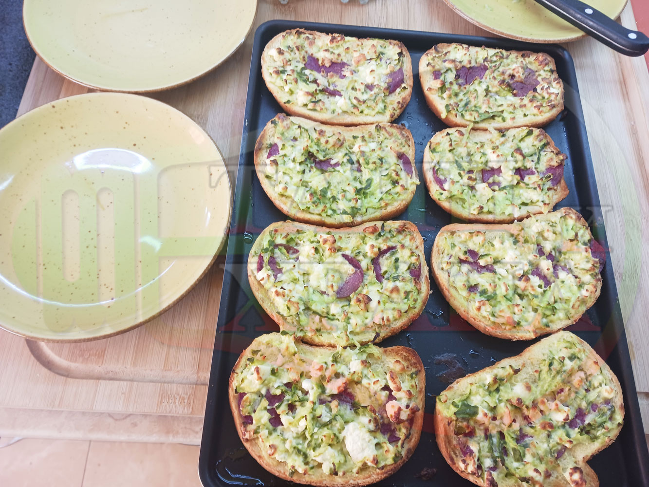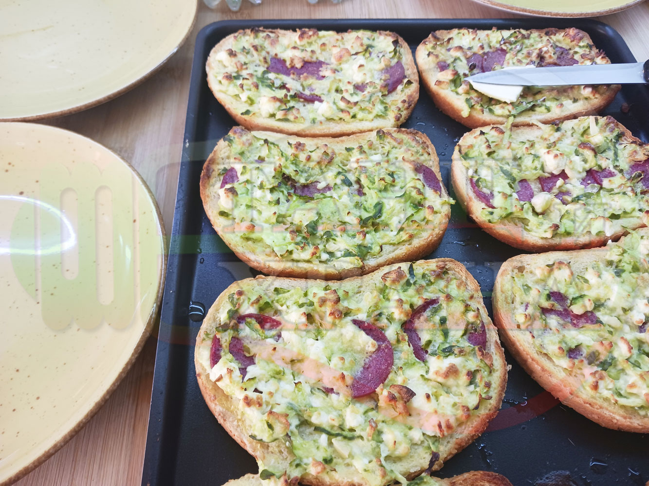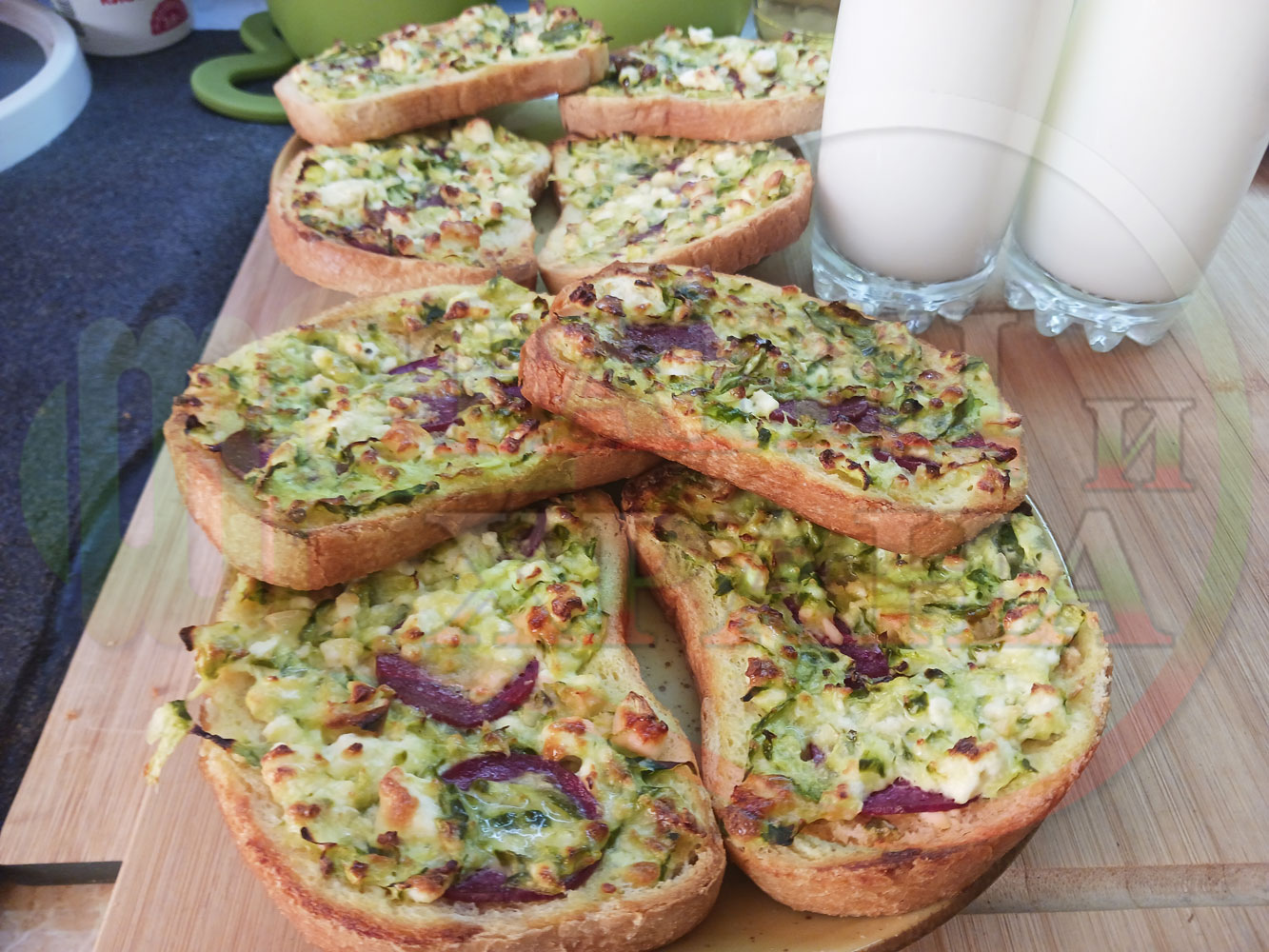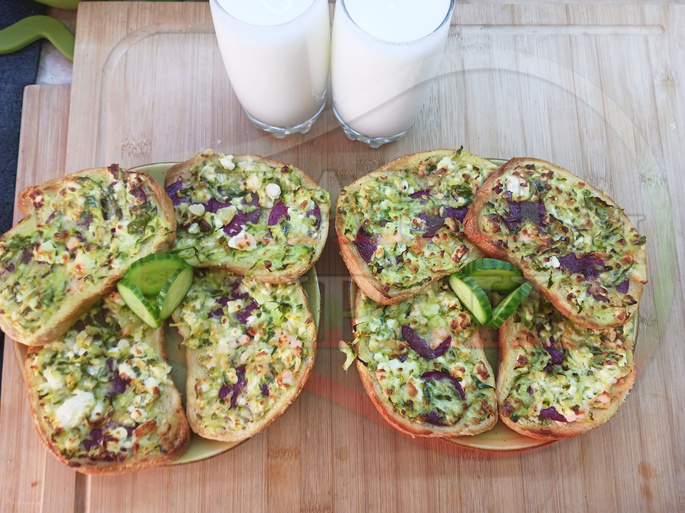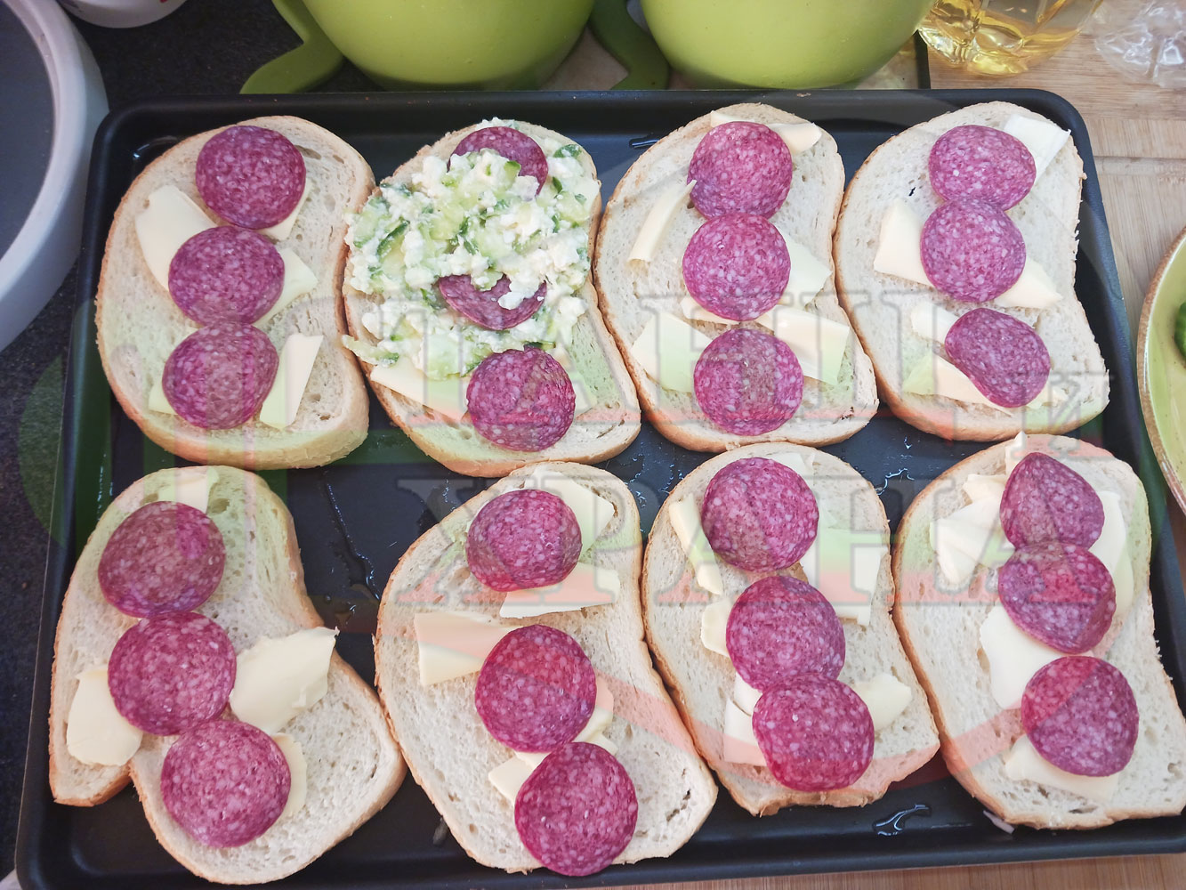 Спретнах невероятно вкусни български филийки, запечени на фурна с луканков колбас и яйчено сиренова плънка, приготвена с пресни краставици, яйца, чесън и българско краве бяло саламурено сирене. Луканковият колбас отделя сокове при запичане, които овкусяват яйчено сиреновата плънка в идеална хармония и баланс със запечените краставици, сирене и яйца и отново се получи невероятна вкусно, вкусна, вкусотия (вкуснотия)...laughing