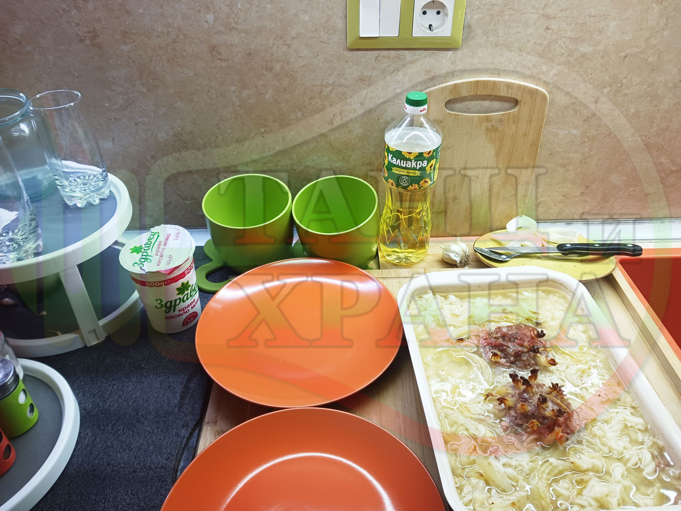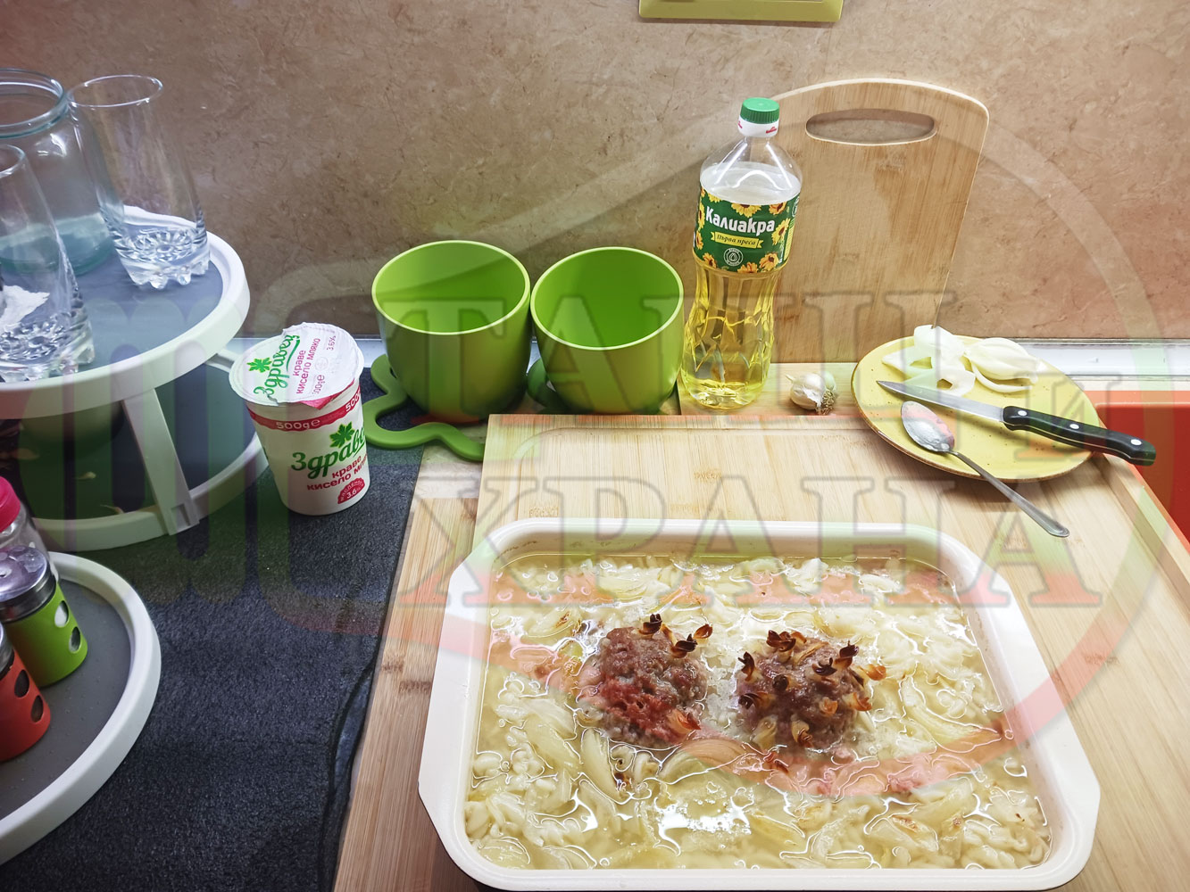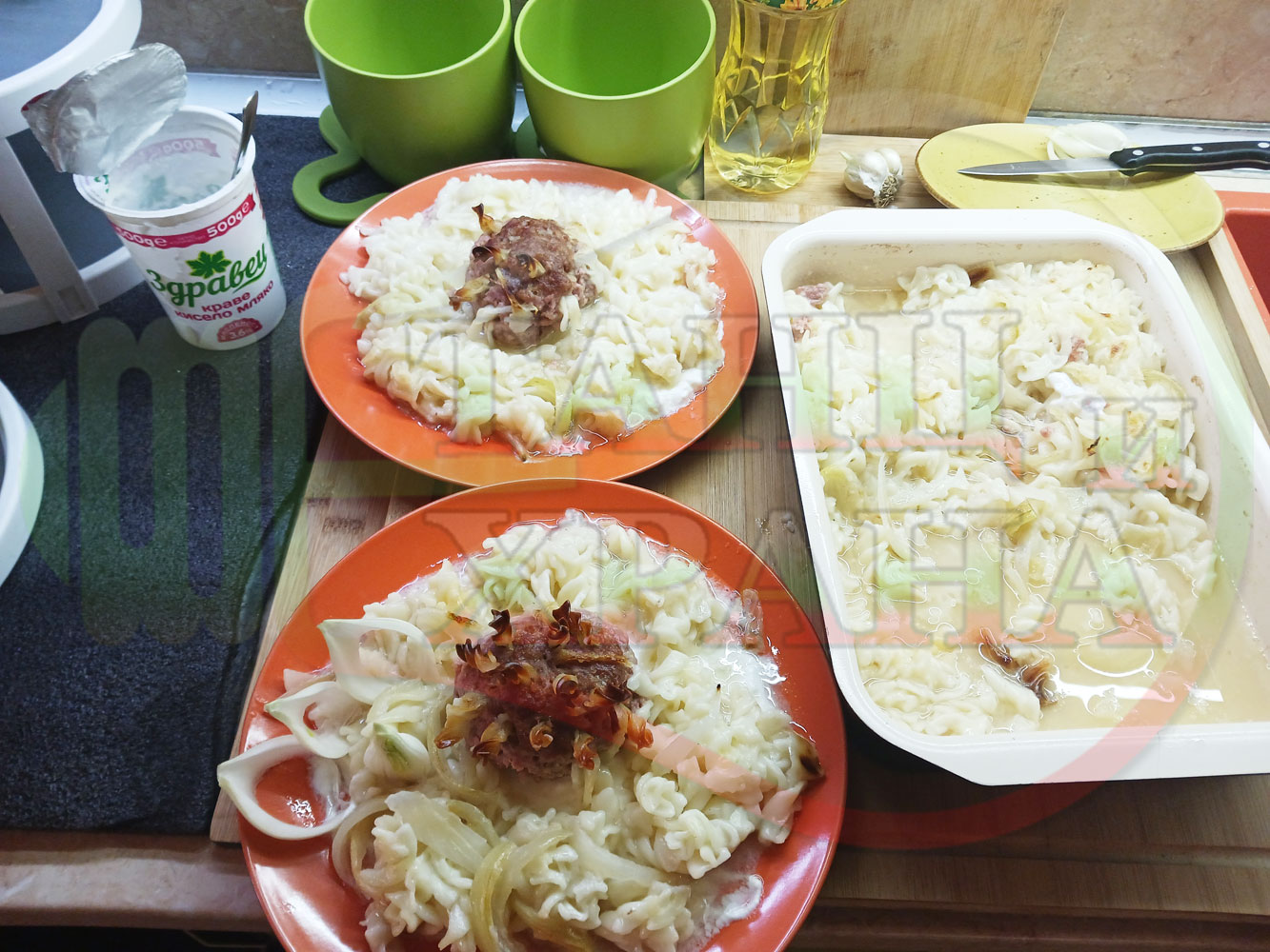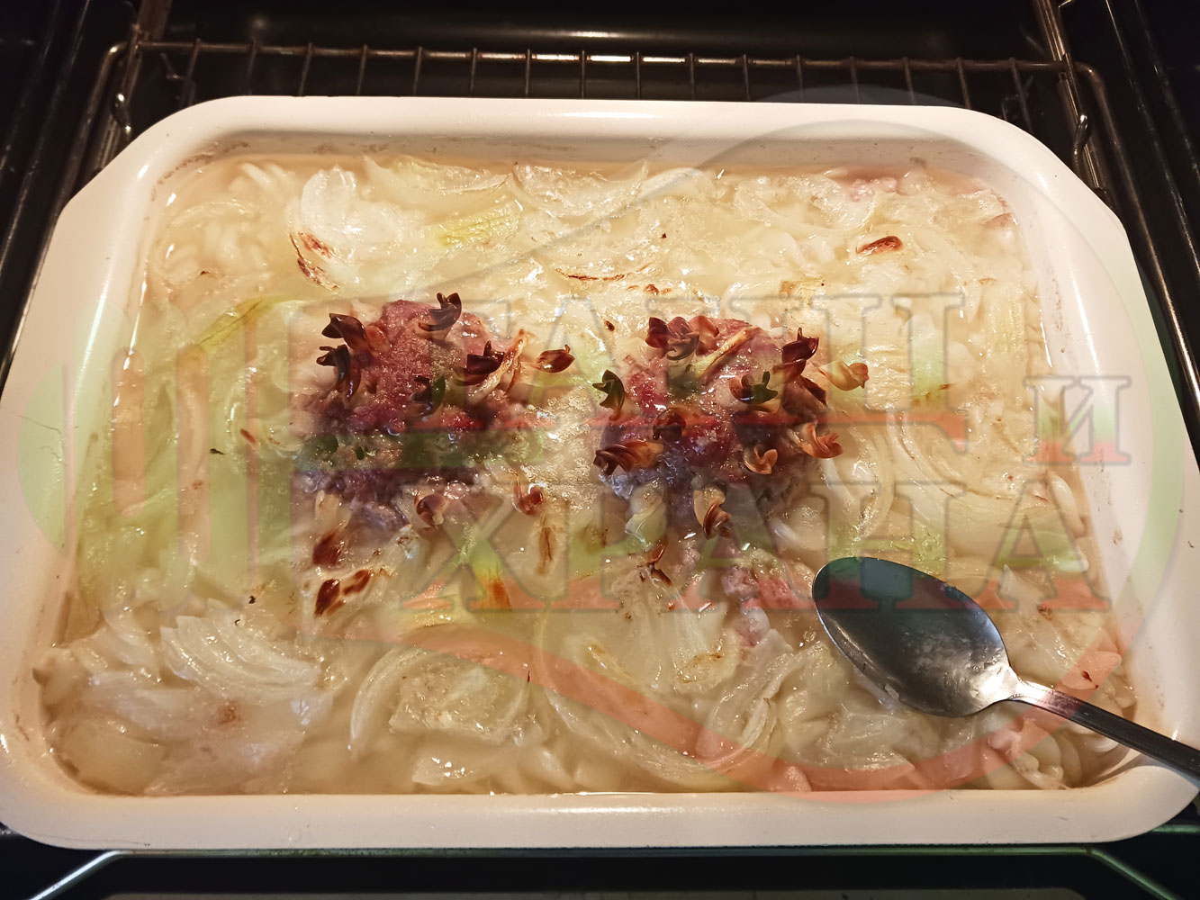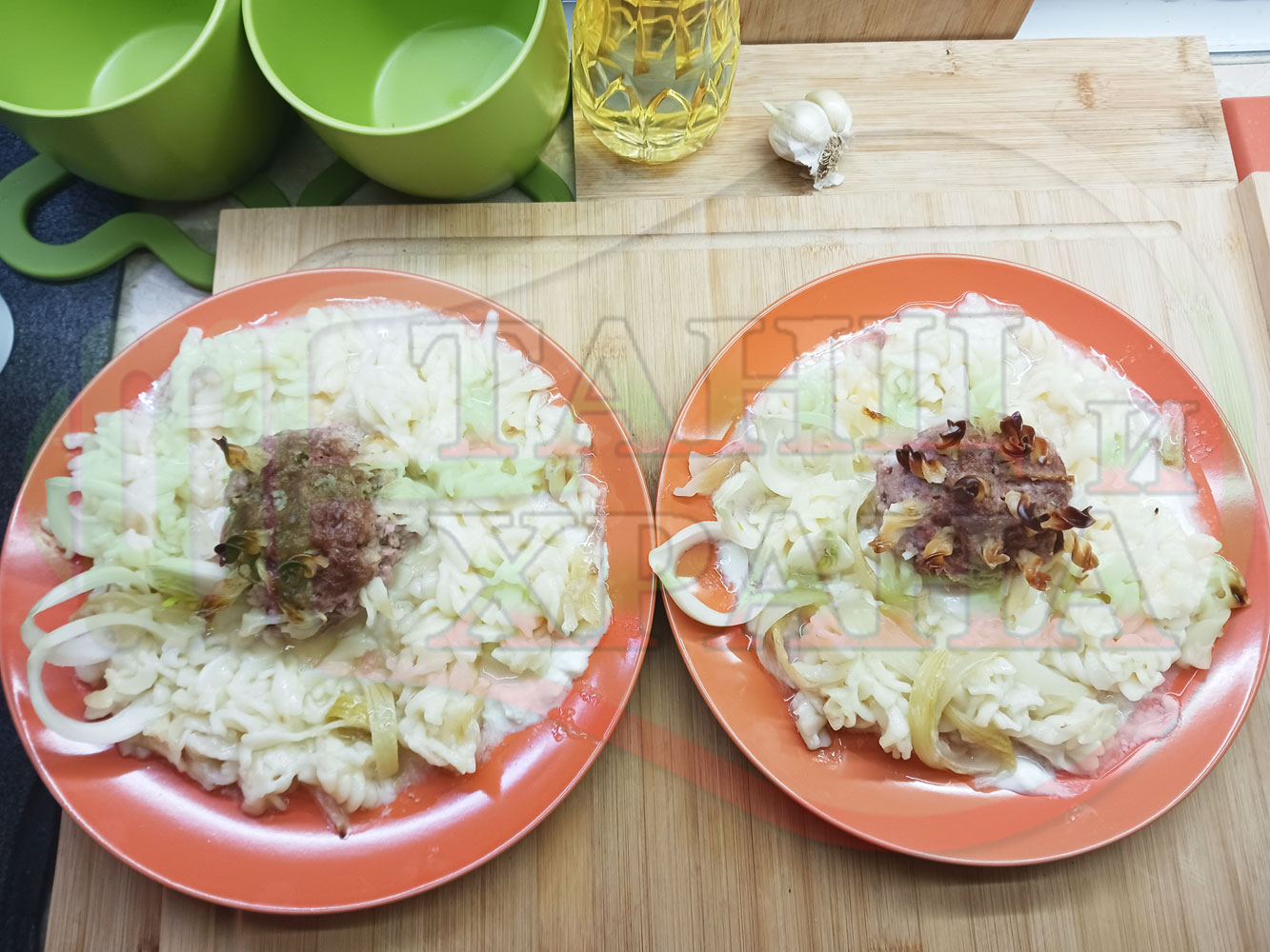 Спретнах изключително вкусни макарони с каймяни топчести кюфтета от неовкусена кайма, които набодох с малка част от витите макарони. Сварих и леко запекох топчестите макарони на фурна с кромид лук и ги гарнирах с млечна основа с българско кисело мляко от България. Макароните се получиха изключително вкусни, обогатени от соковете на каймата и сладостта на леко карамелизирания кромид лук и отново се получи невероятна вкусно, вкусна, вкусотия (вкуснотия). ![]()