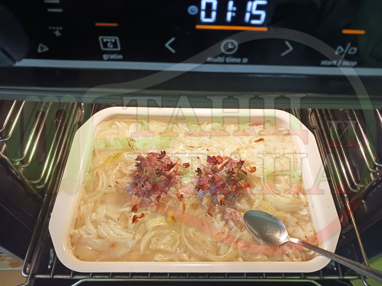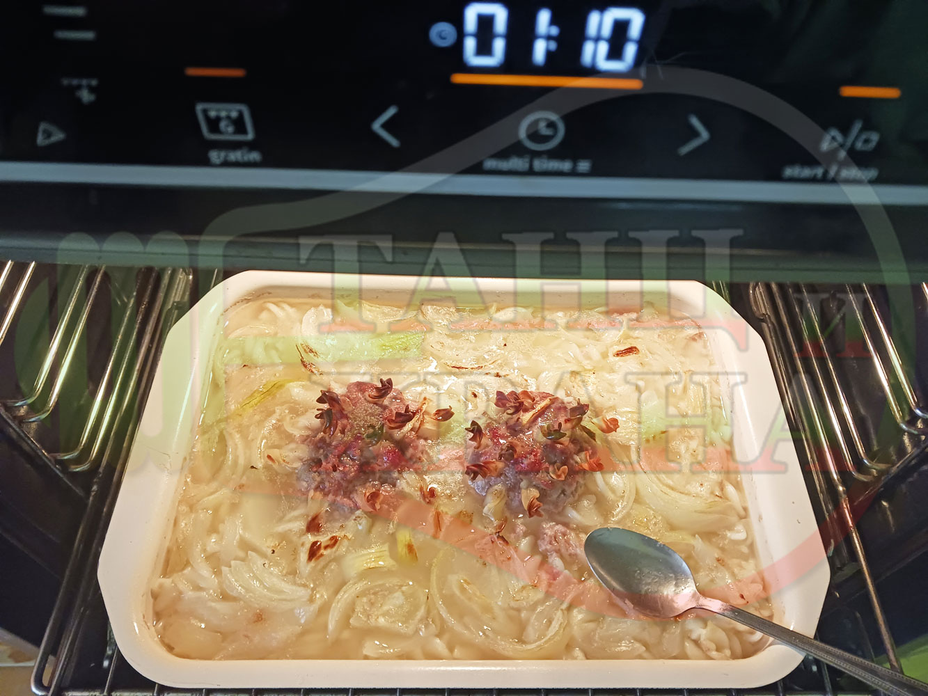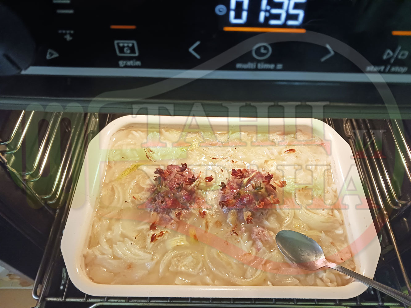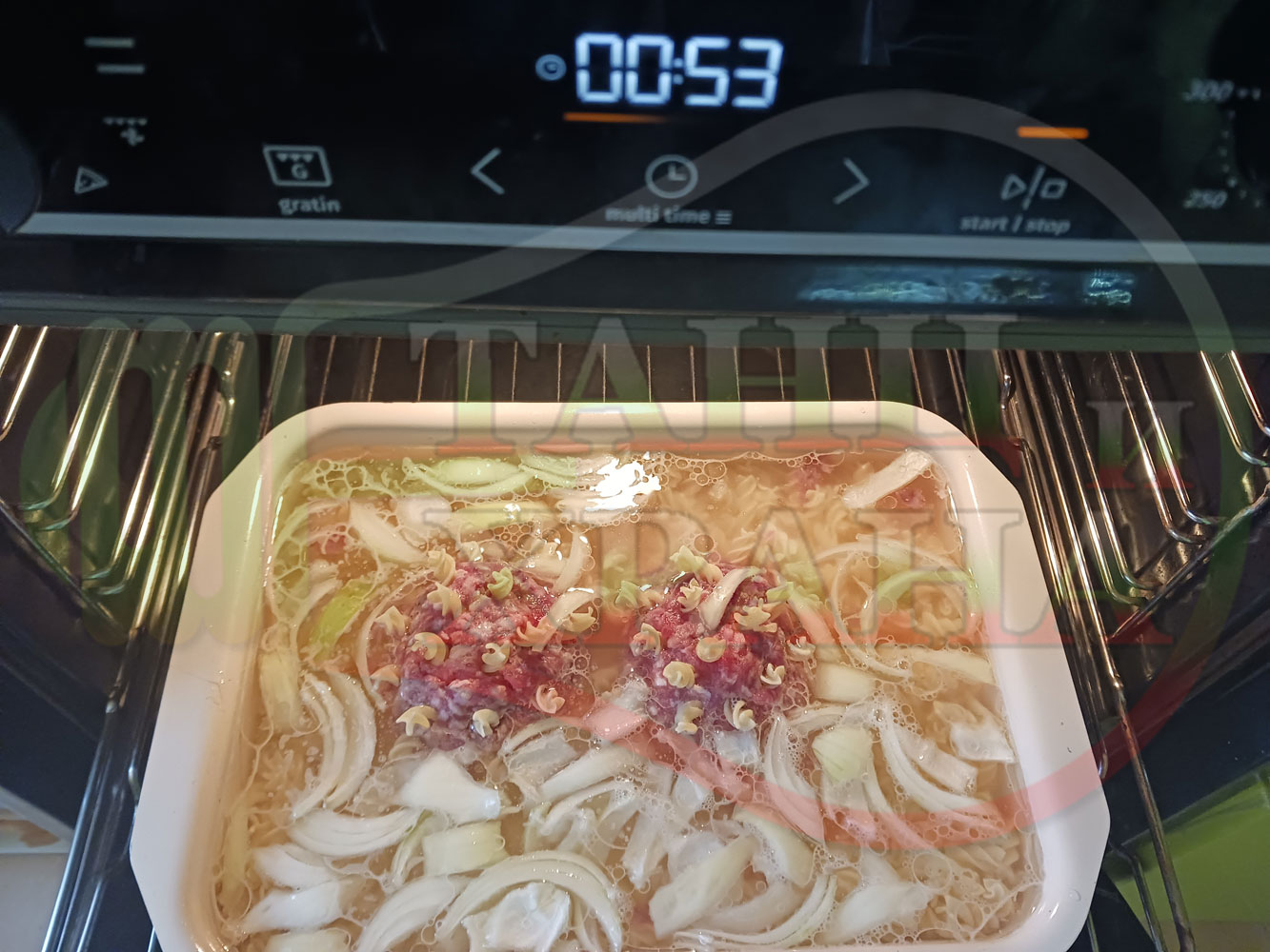 ВНИМАНИЕ: Фурните са различни и съответно времето за сваряване и запичане е ориентировъчно. Наблюдавайте процеса на запичане и при необходимост покрийте с капак или отстранете тавата от фурната. Разбърквайте често макароните и обливайте със соса кюфтетата за да се запекат равномерно и макароните върху тях да се сварят и запекат до желаната от вас степен (средно запечени кюфтета или по-запечени кюфтета и разварени и запечени макарони).