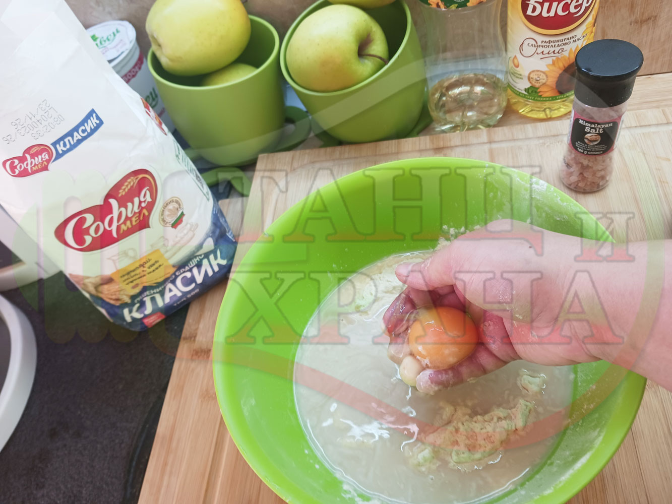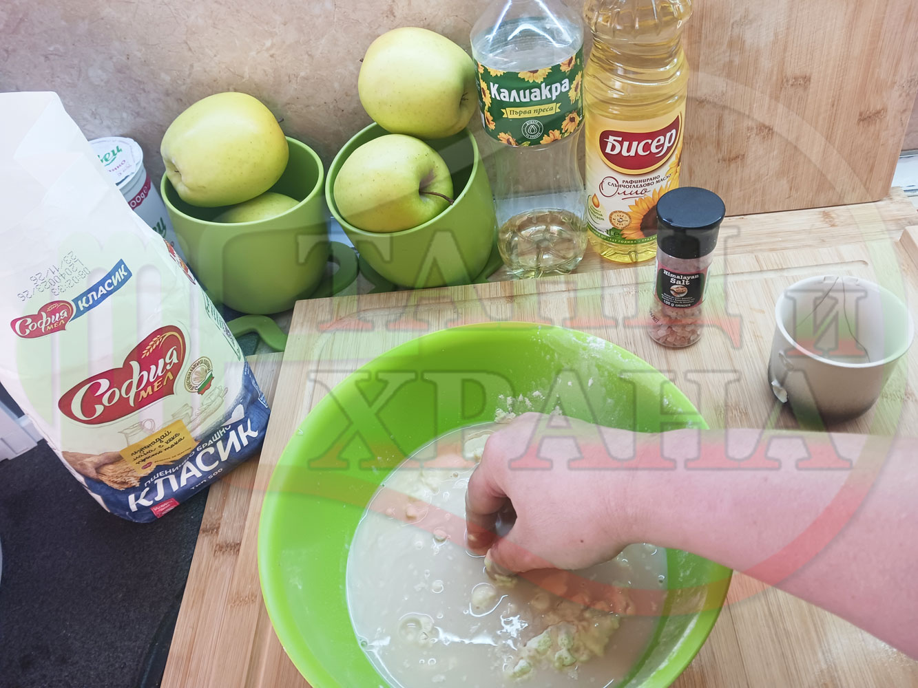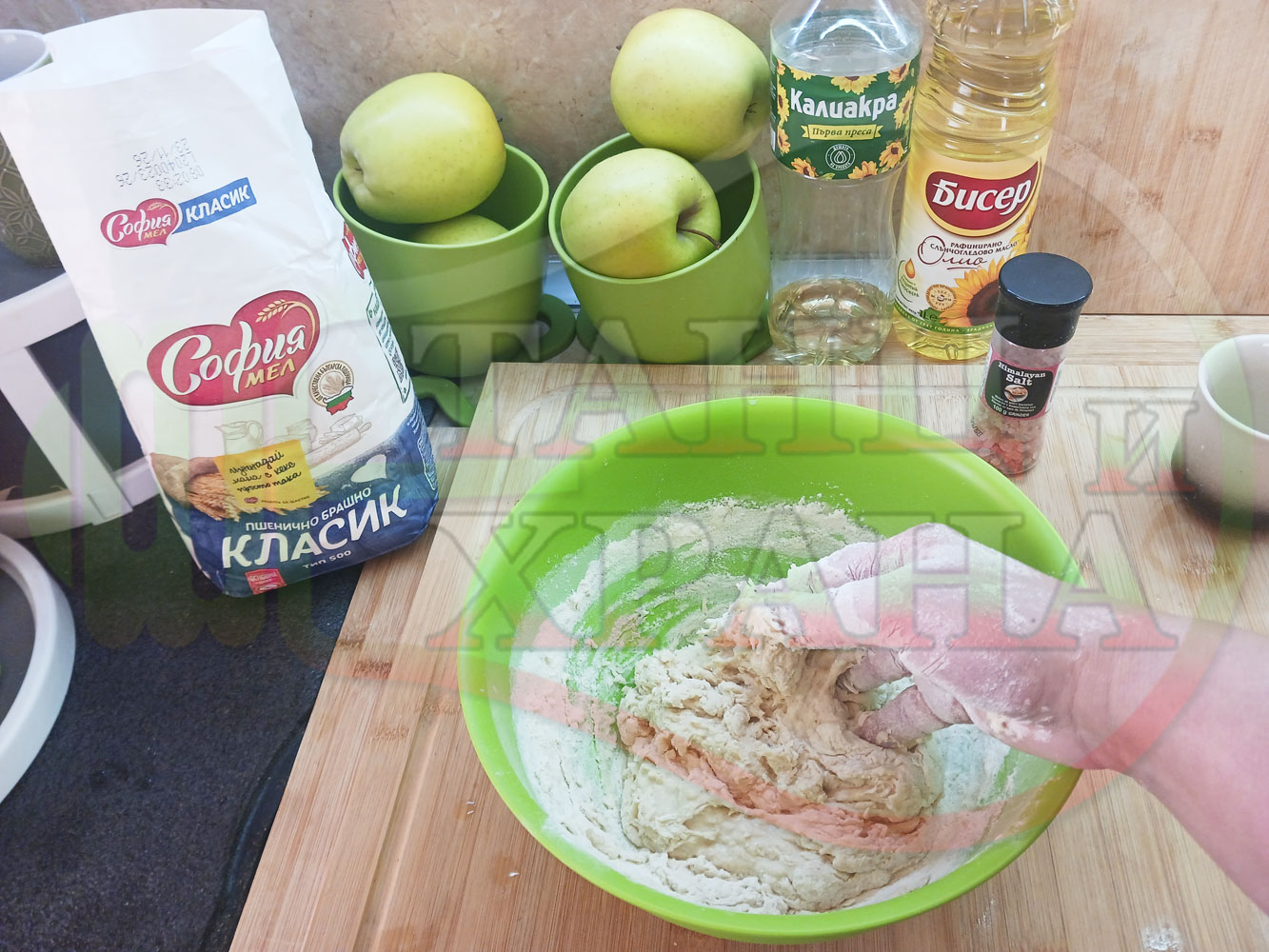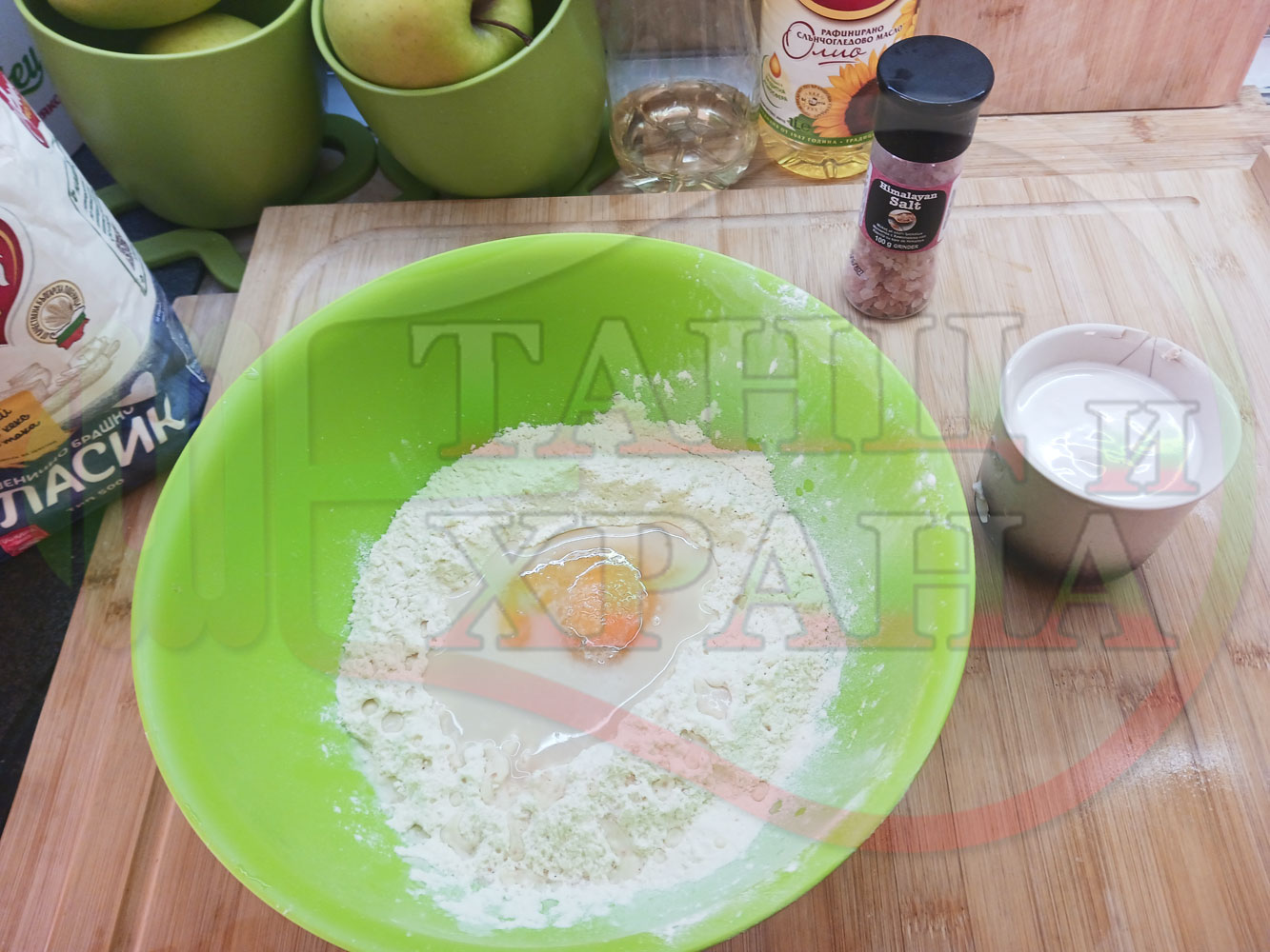 Сипете брашното в купа, направете "кладенче" в средата и добавете яйцето, захарта и хималайската сол в кладенчето. Налейте хладка вода от чешмата в чаша, добавете маята и разбъркайте до пълното разтваряне на маята (разтварянето на маята гарантира по-доброто и по-бързото й активиране и усвояване от брашното). Сипете разтворената мая в кладенчето и започнете да замесвате тестото от средата на кладенчето до пълното отлепяне на тестото от купата и намаляване на лепкавостта му (поръсвайте и добавяйте брашно при необходимост, докато замесвате). Сипете слънчогледовото олио, доомесете тестото с олиото и оформете "топка" от тестото. Намажете купата и тестото с олио, покрийте купата с прозрачен найлонов плик и оставете отвор в единия край на плика за да "диша" тестото докато втасва. Поставете купата на топло място за около 30 минути за да втаса тестото и удвои и дори утрои обема си (времето за втасване зависи от топлината в кухнята и вида и количеството на маята в зависимост от количеството на брашното и включените продукти при замесването).
