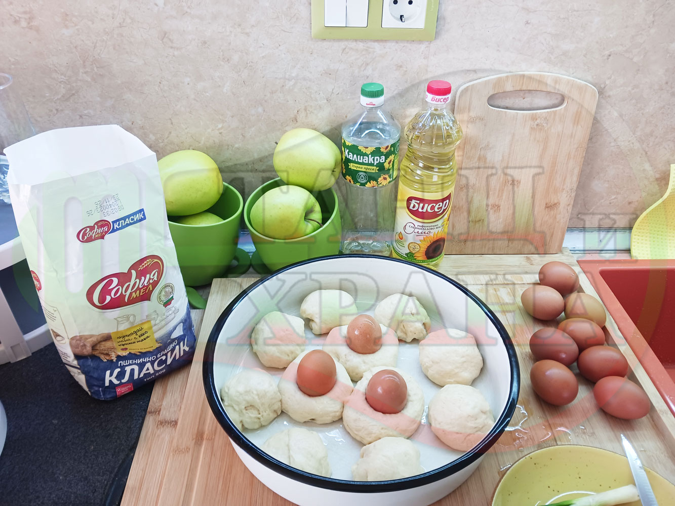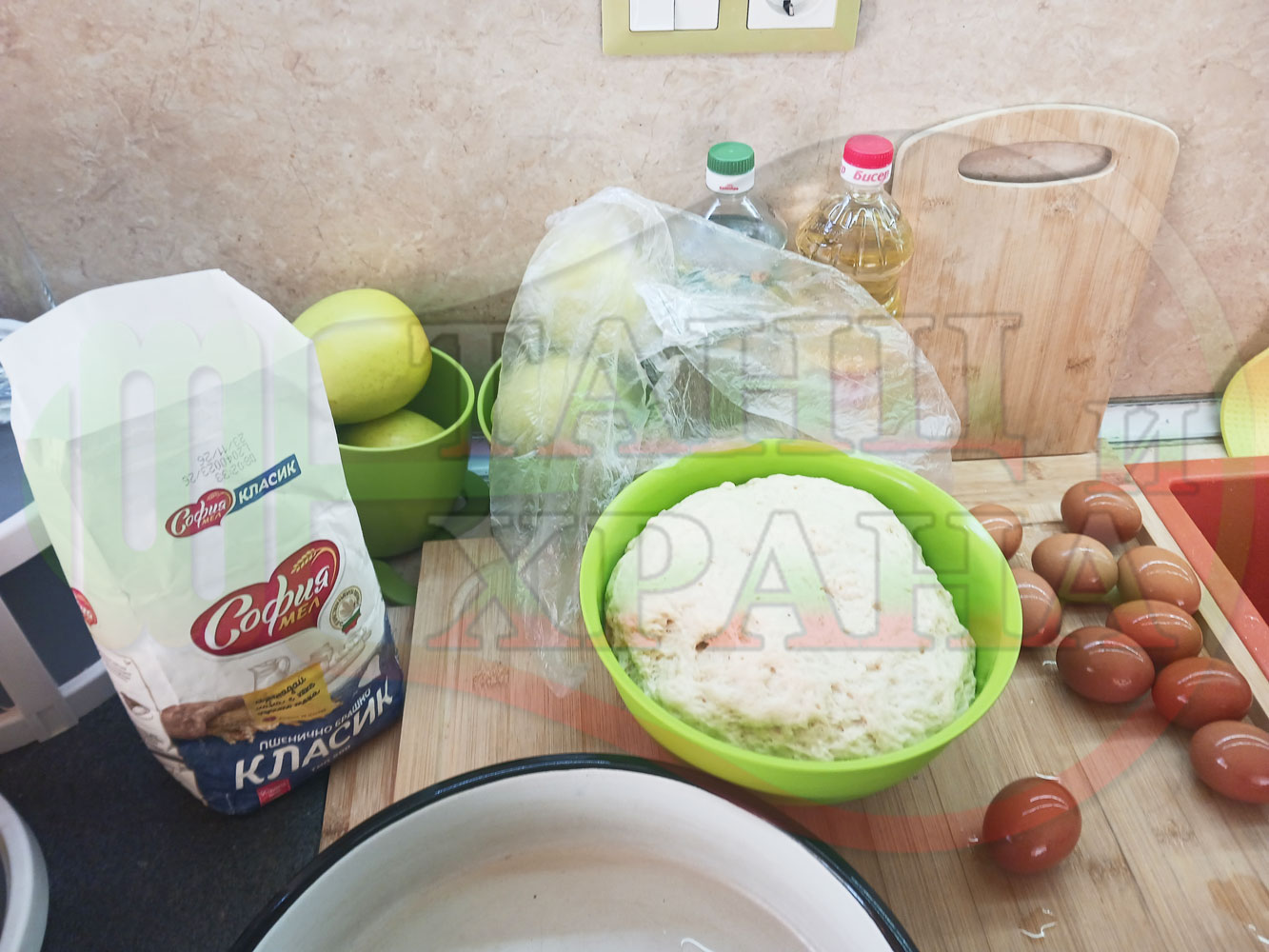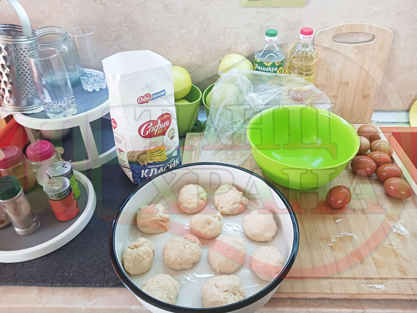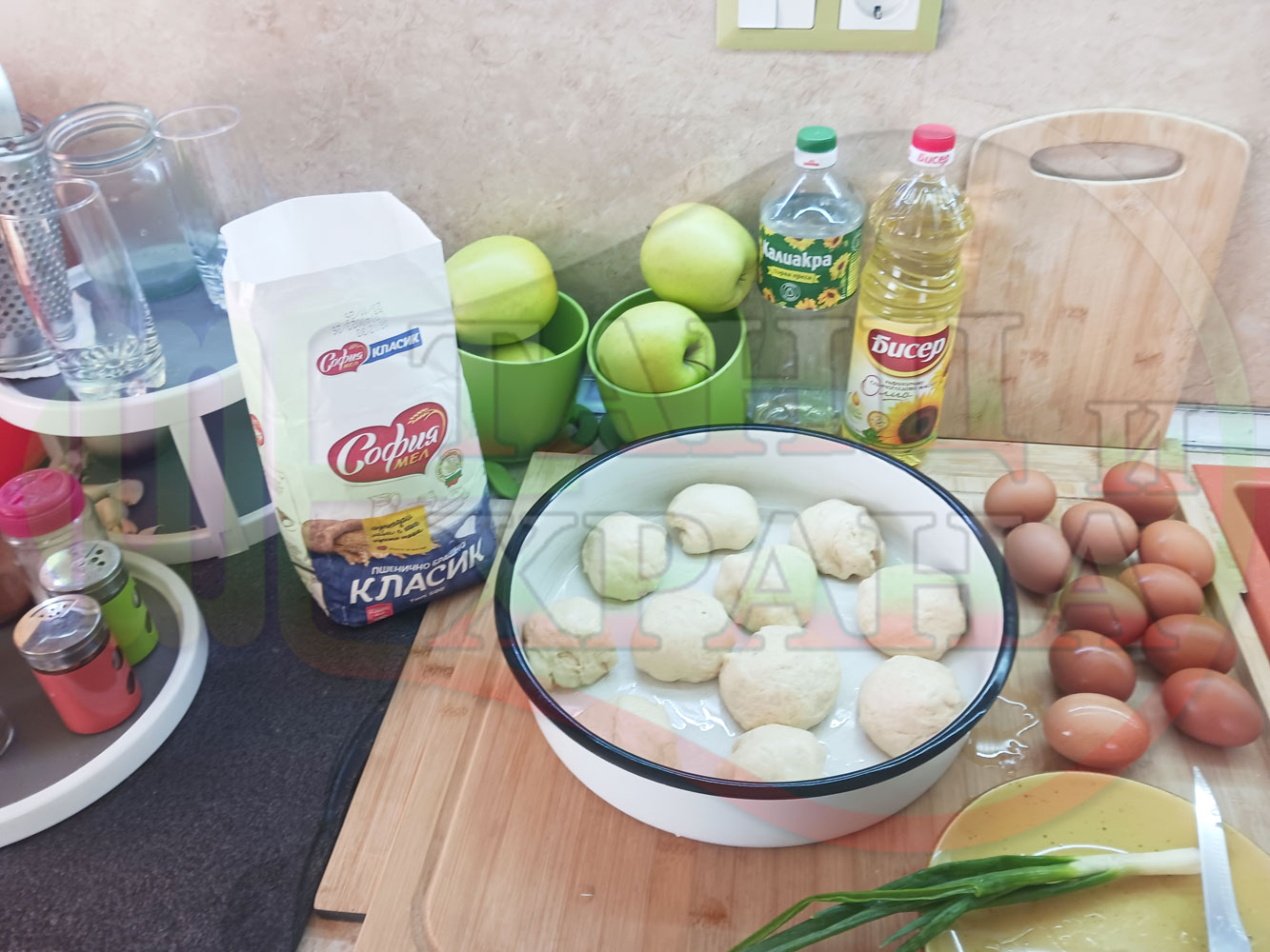 ПРОДУКТИ: Приблизителни количества за български коколници "Зеленопряснолучени" запечени на фурна с перца от пресен зелен лук и сурови цели небоядисани яйца в средата омесени с непостно тесто със жива мая и слънчогледово олио за Великден 2026 г.