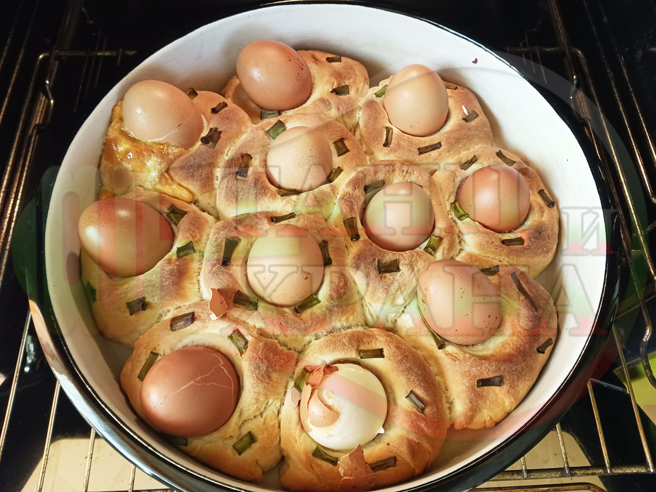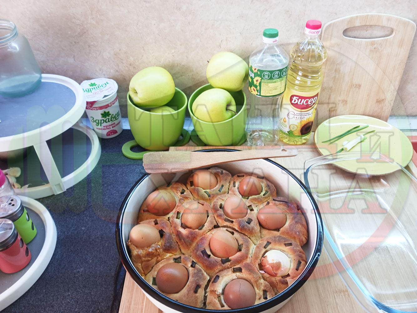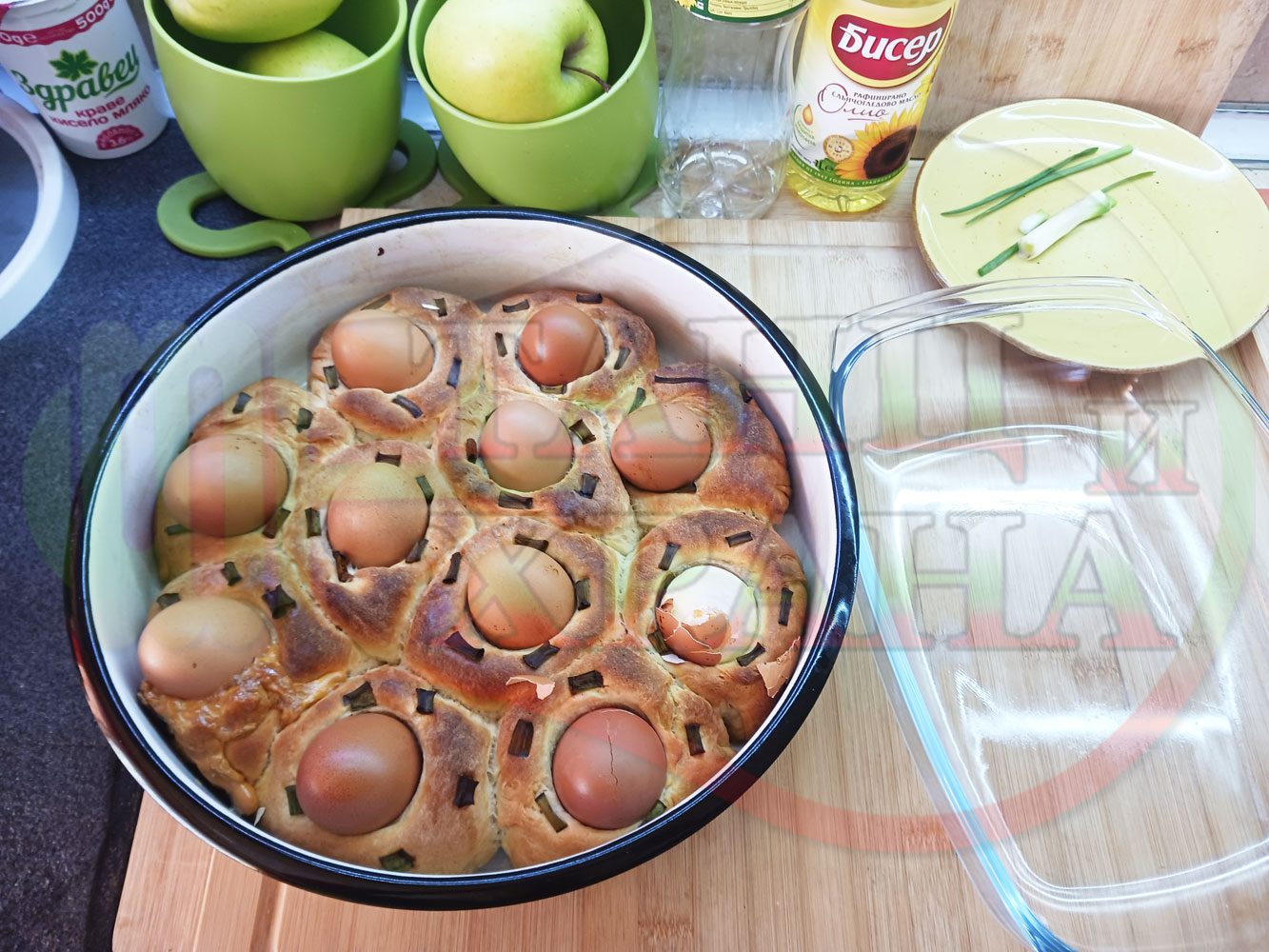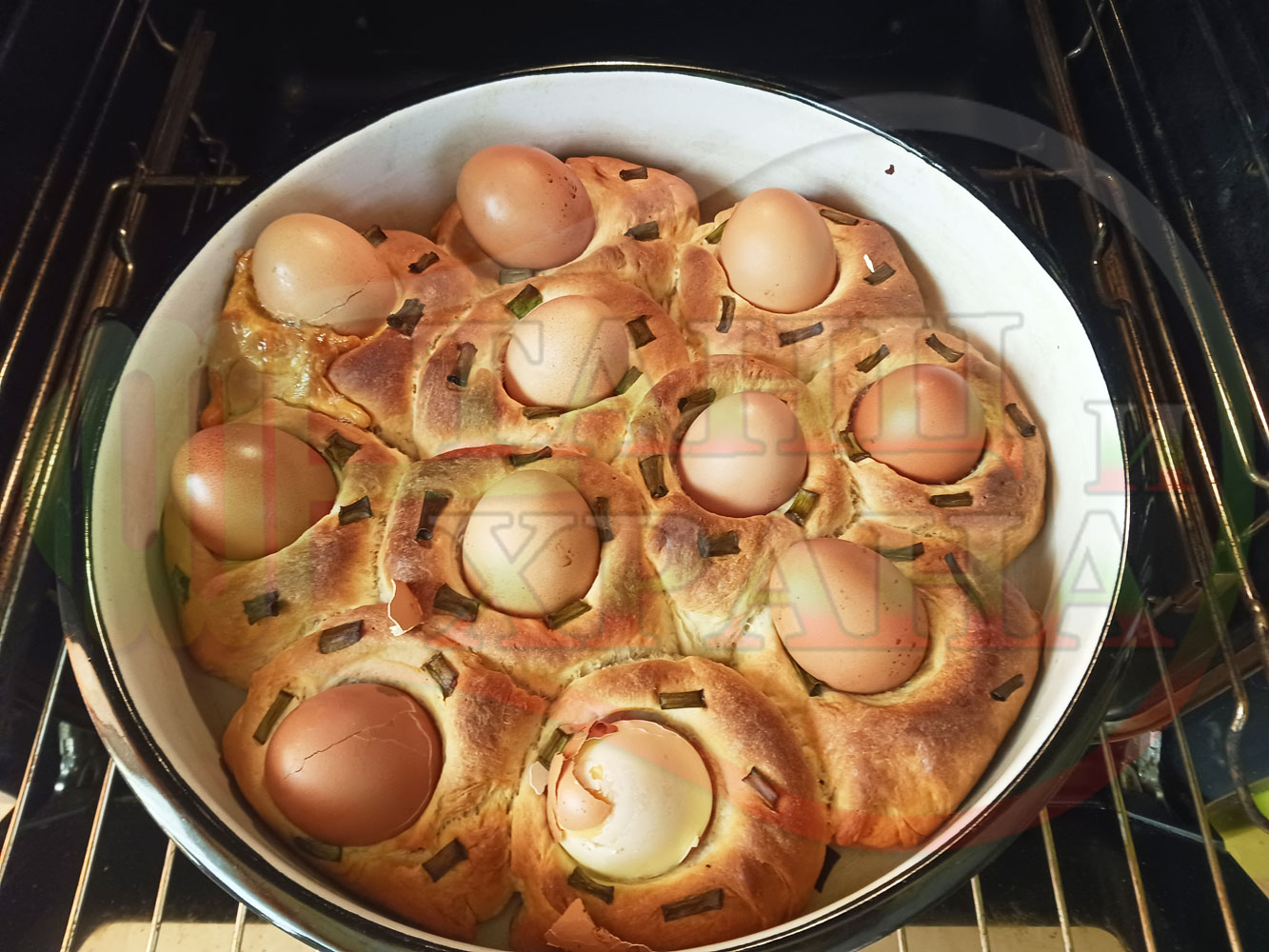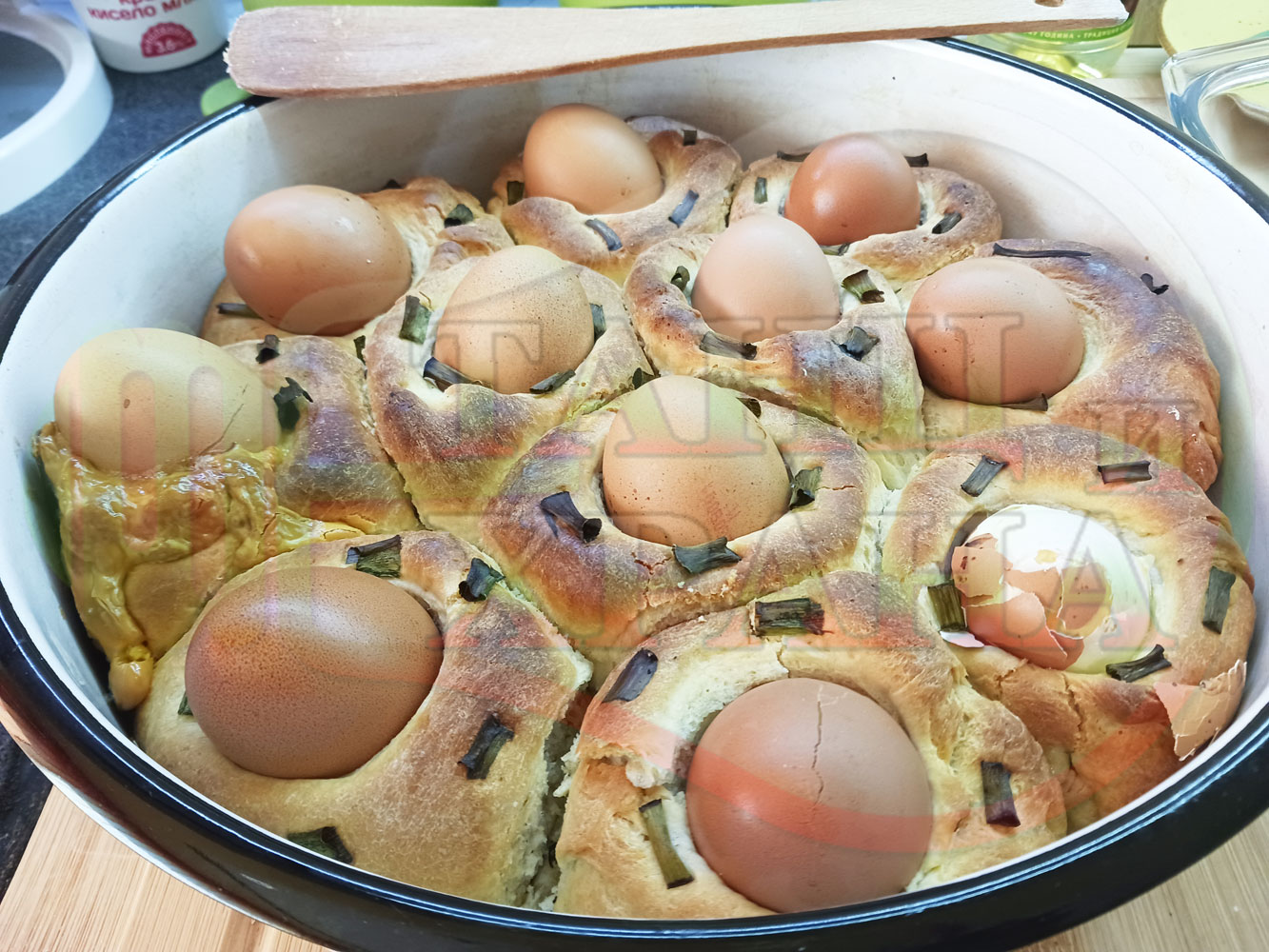 Спретнах вкусни, ароматни, меки и пухкави коколници с цели сурови, небоядисани яйца, запечени с перца от пресен зелен лук за Великден (2026 г.). Омесих тестото за коколниците с яйце и жива мая и в кухнята се носи аромат на запечени лучени перца и великденски хлебчета с хрупкава коричка. Отново се получи невероятна вкусно, вкусна, вкусотия (вкуснотия)... ![]()
