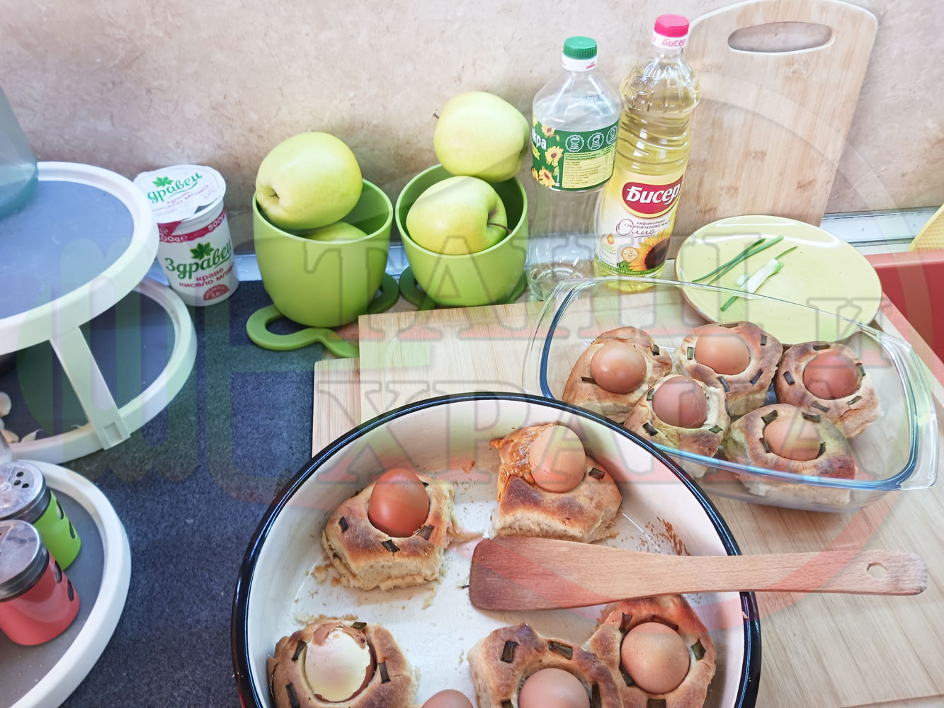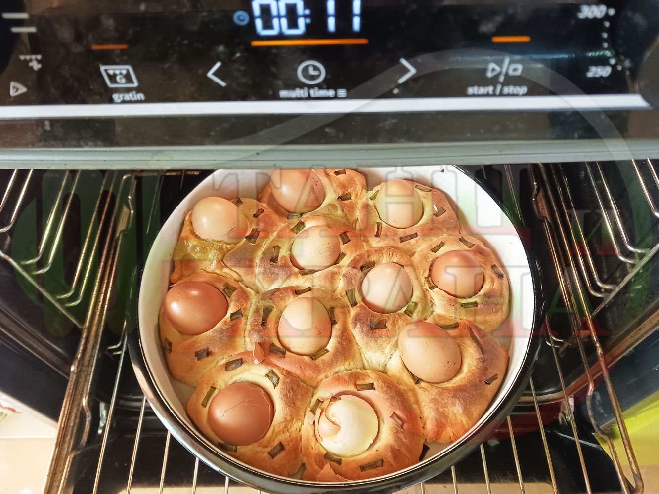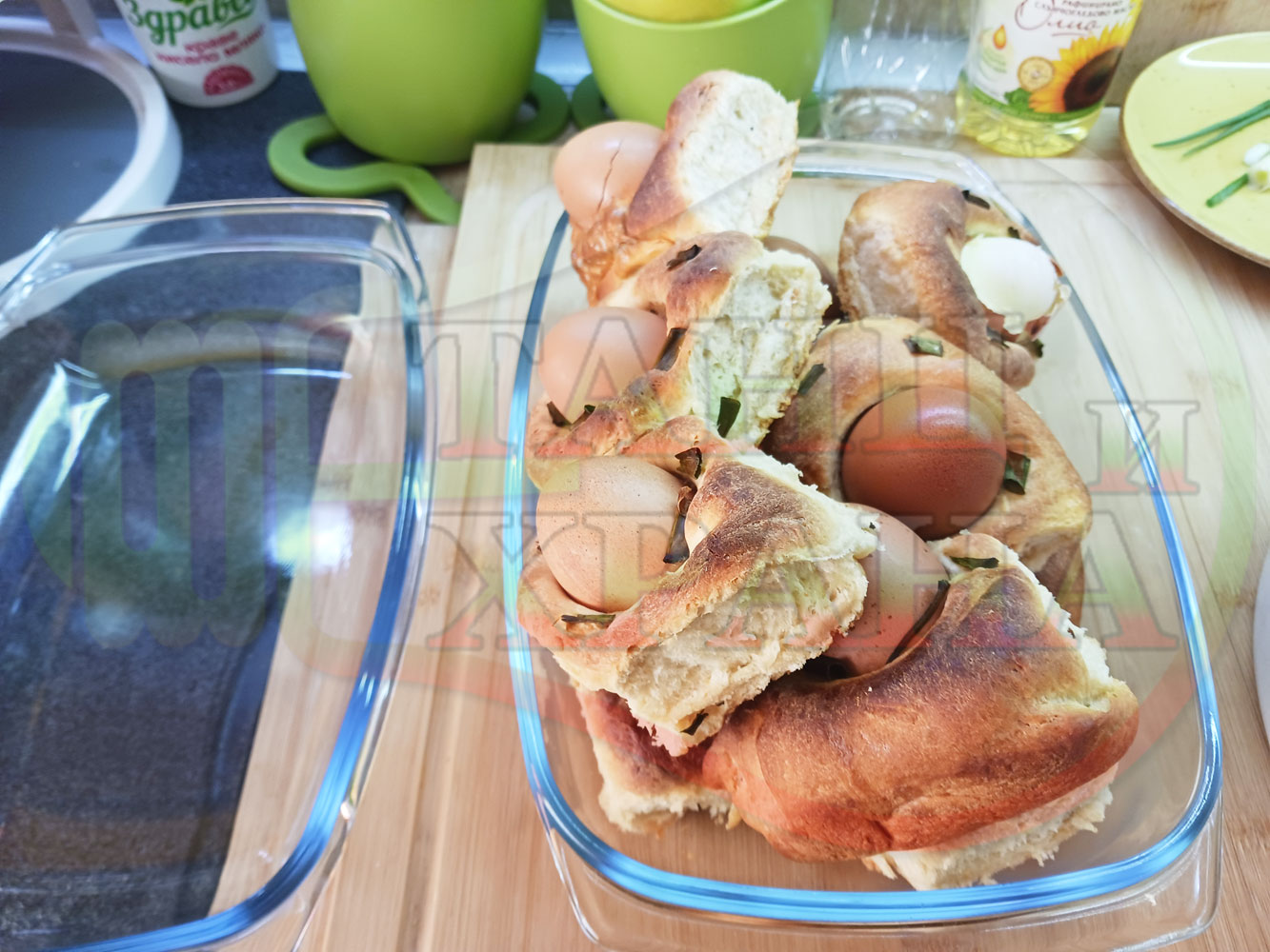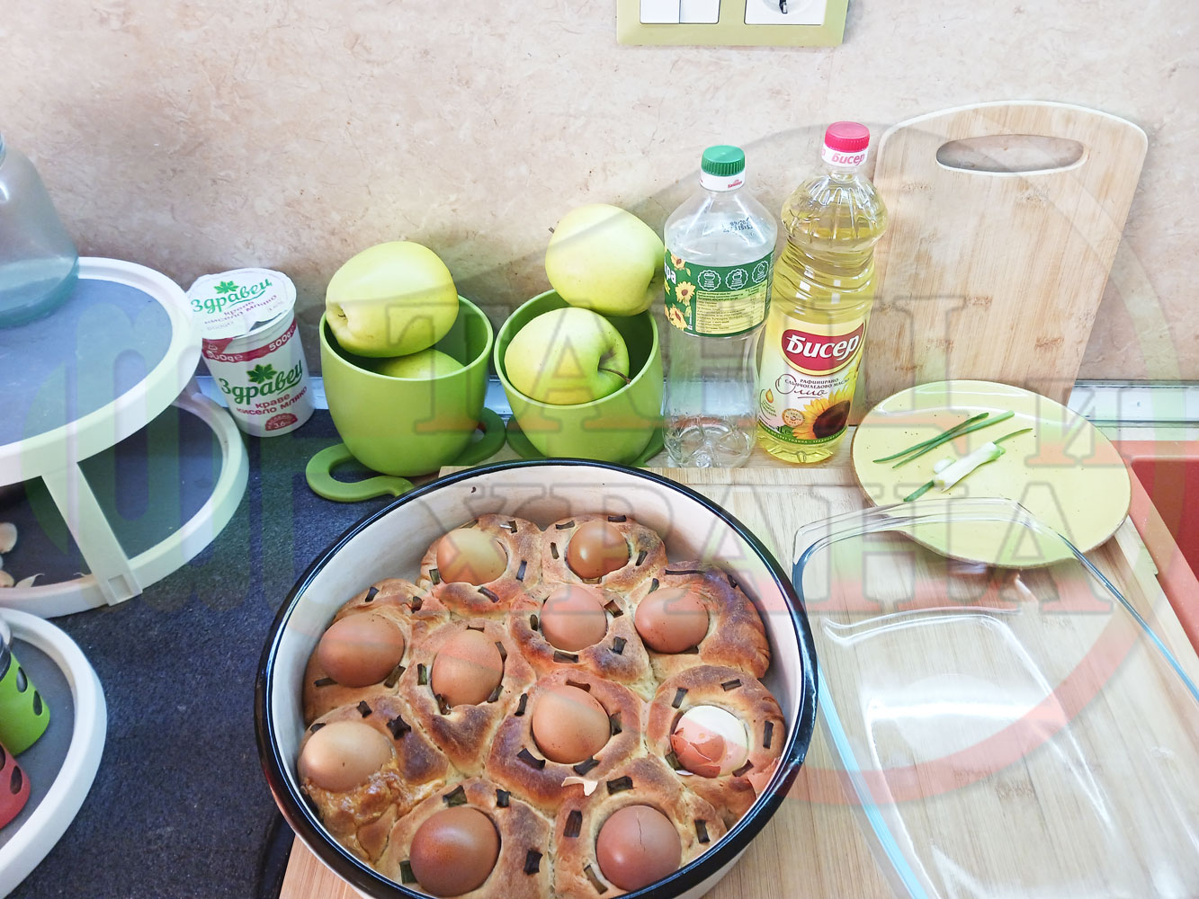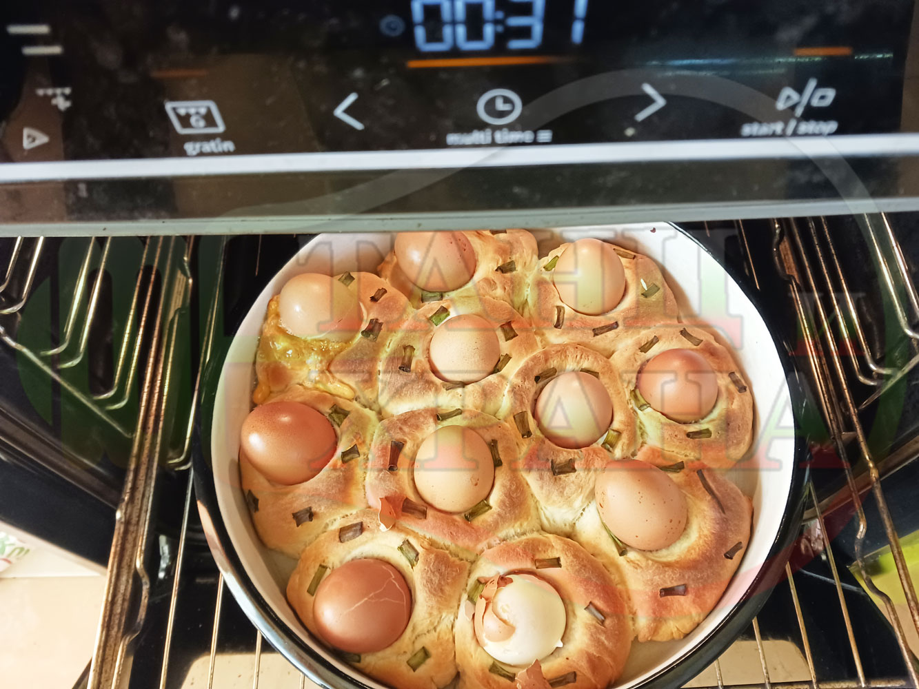 Спретнах вкусни, ароматни, меки и пухкави коколници с цели сурови, небоядисани яйца, запечени с перца от пресен зелен лук за Великден (2026 г.). Омесих тестото за коколниците с яйце и жива мая и в кухнята се носи аромат на запечени лучени перца и великденски хлебчета с хрупкава коричка. Отново се получи невероятна вкусно, вкусна, вкусотия (вкуснотия)... ![]()