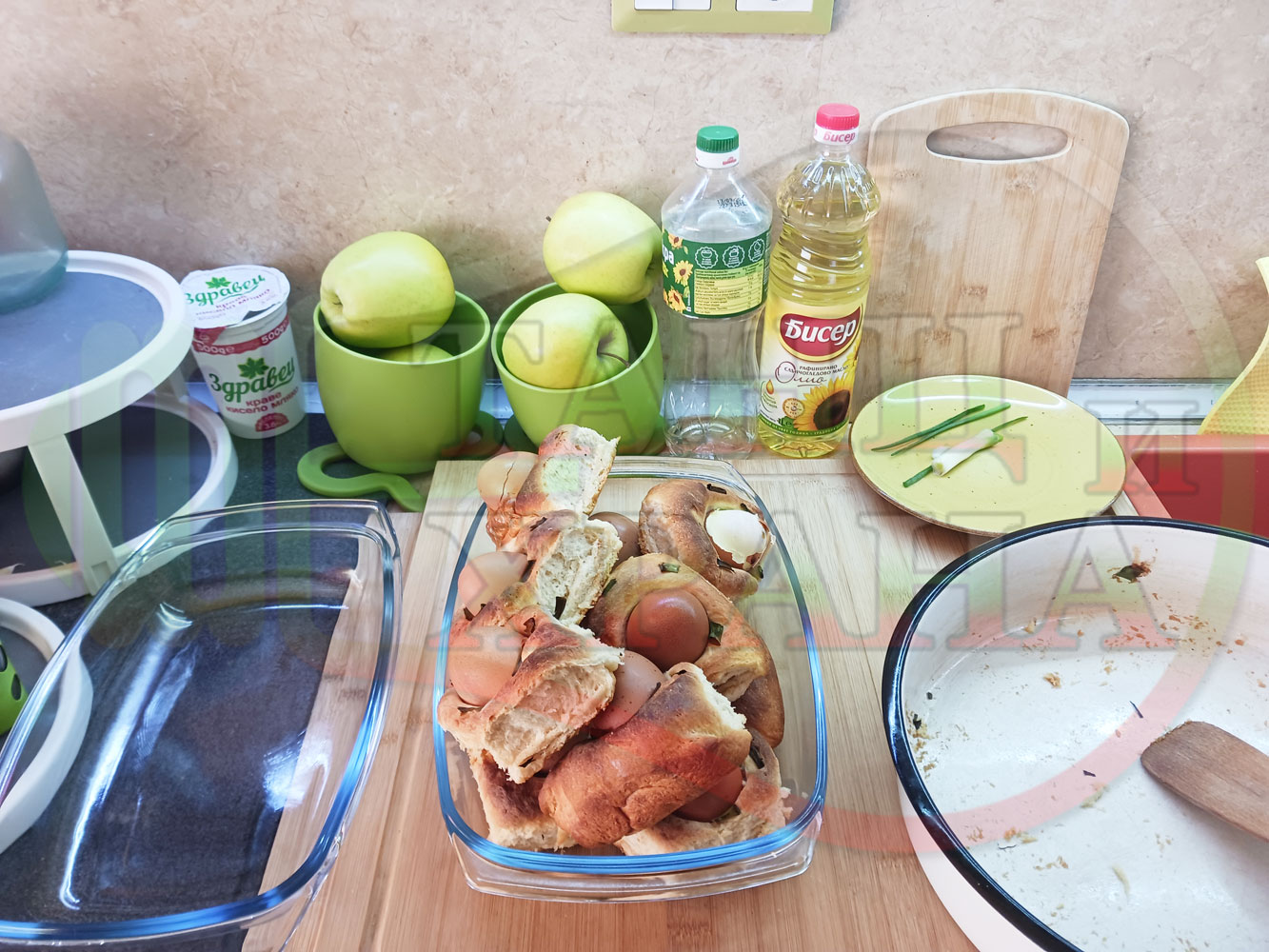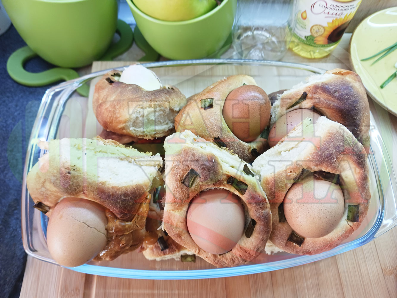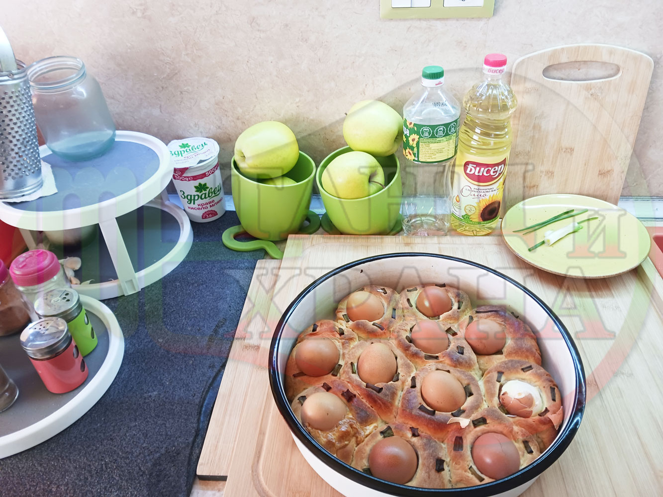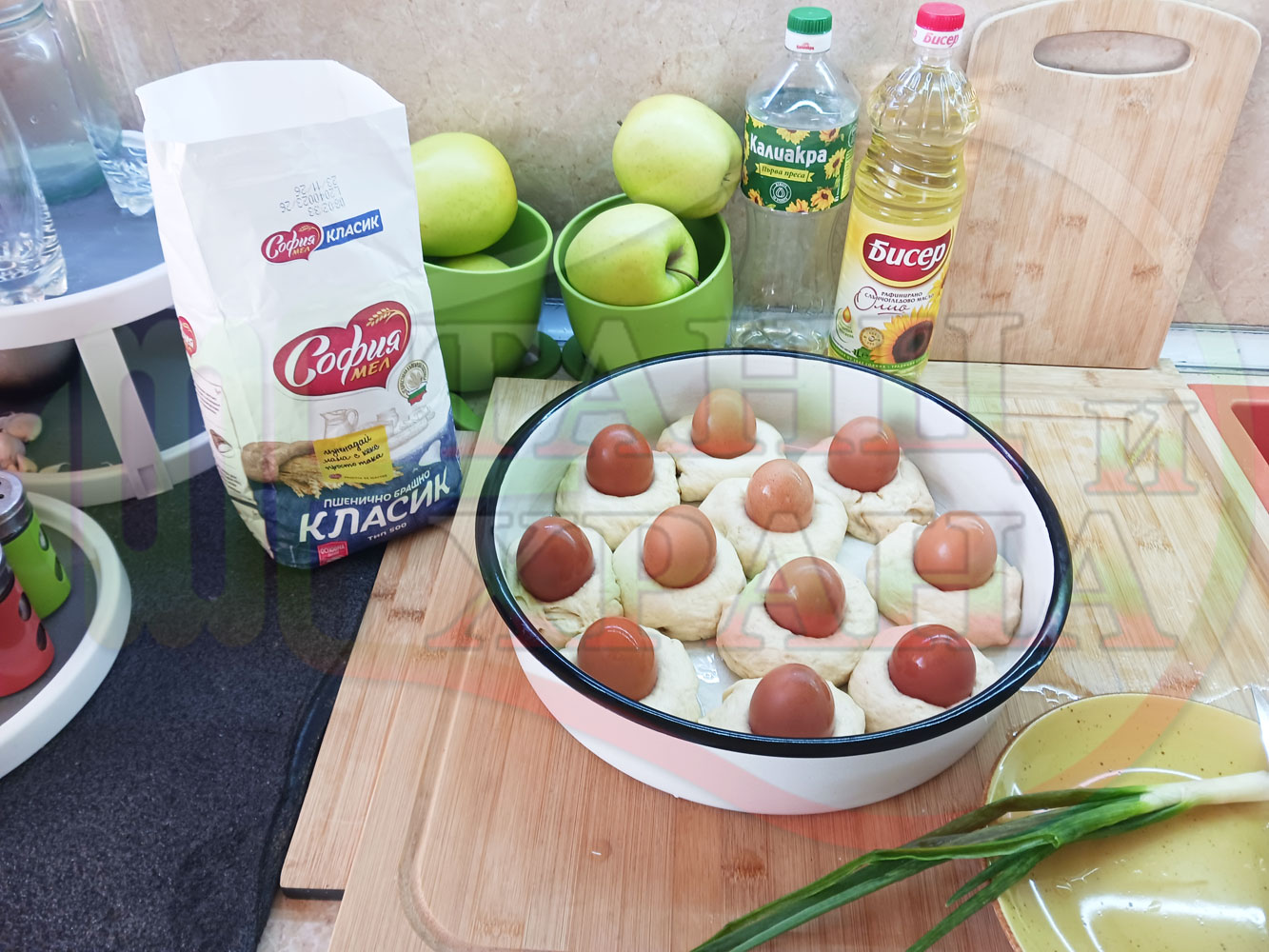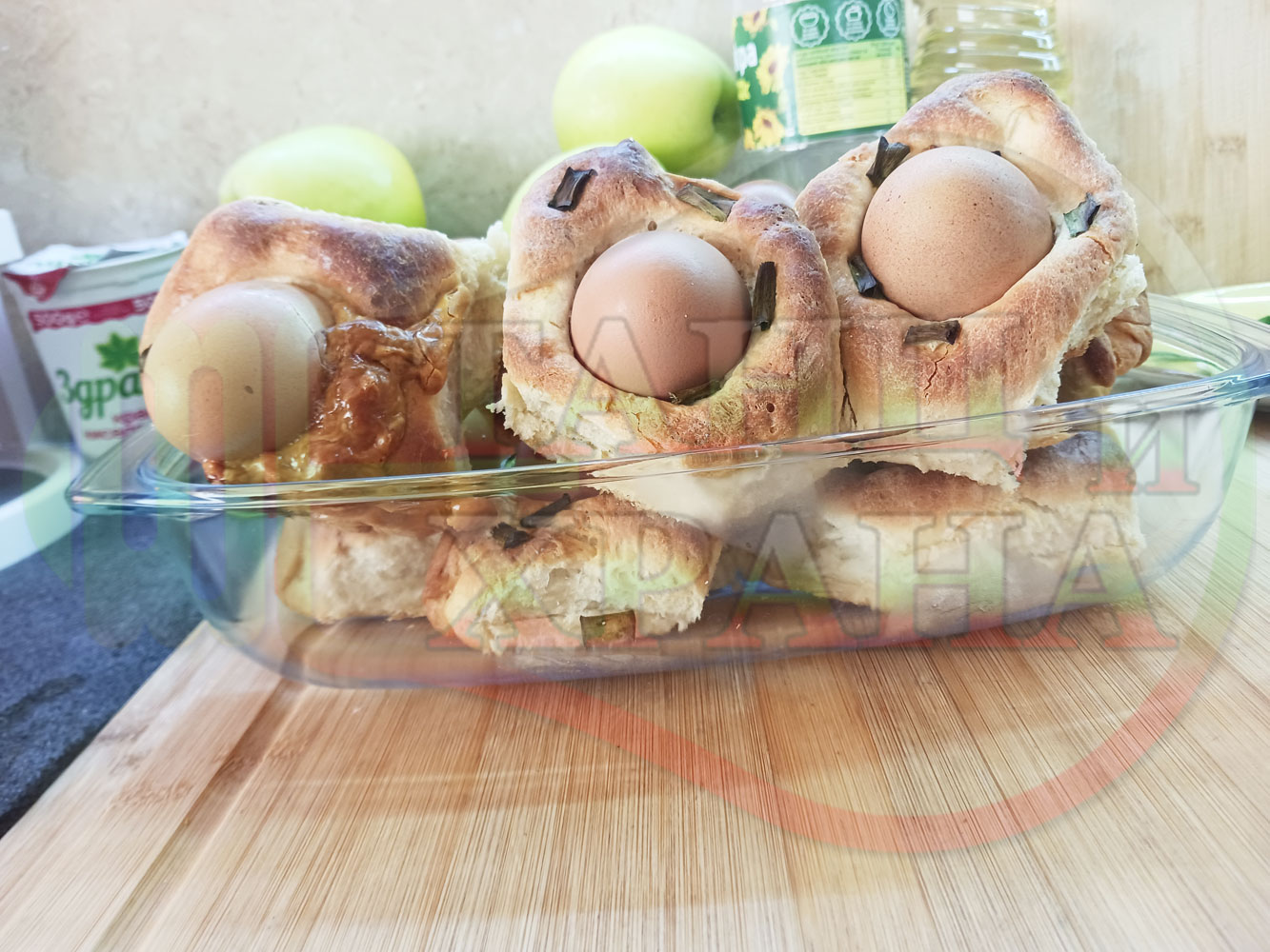 Спретнах вкусни, ароматни, меки и пухкави коколници с цели сурови, небоядисани яйца, запечени с перца от пресен зелен лук за Великден (2026 г.). Омесих тестото за коколниците с яйце и жива мая и в кухнята се носи аромат на запечени лучени перца и великденски хлебчета с хрупкава коричка. Отново се получи невероятна вкусно, вкусна, вкусотия (вкуснотия)... ![]()