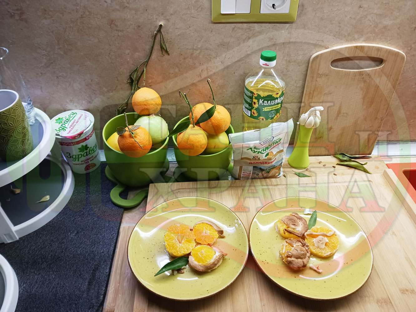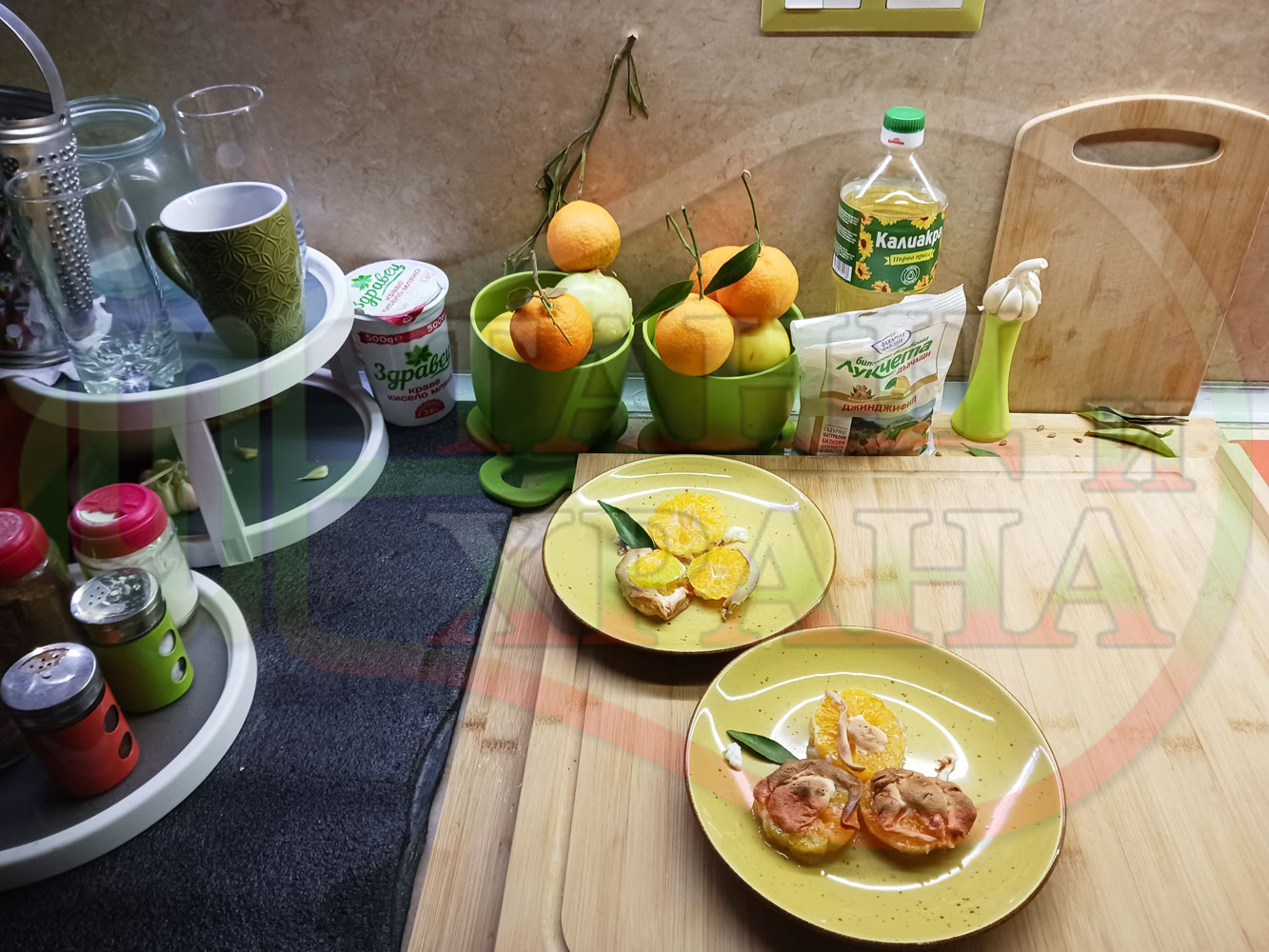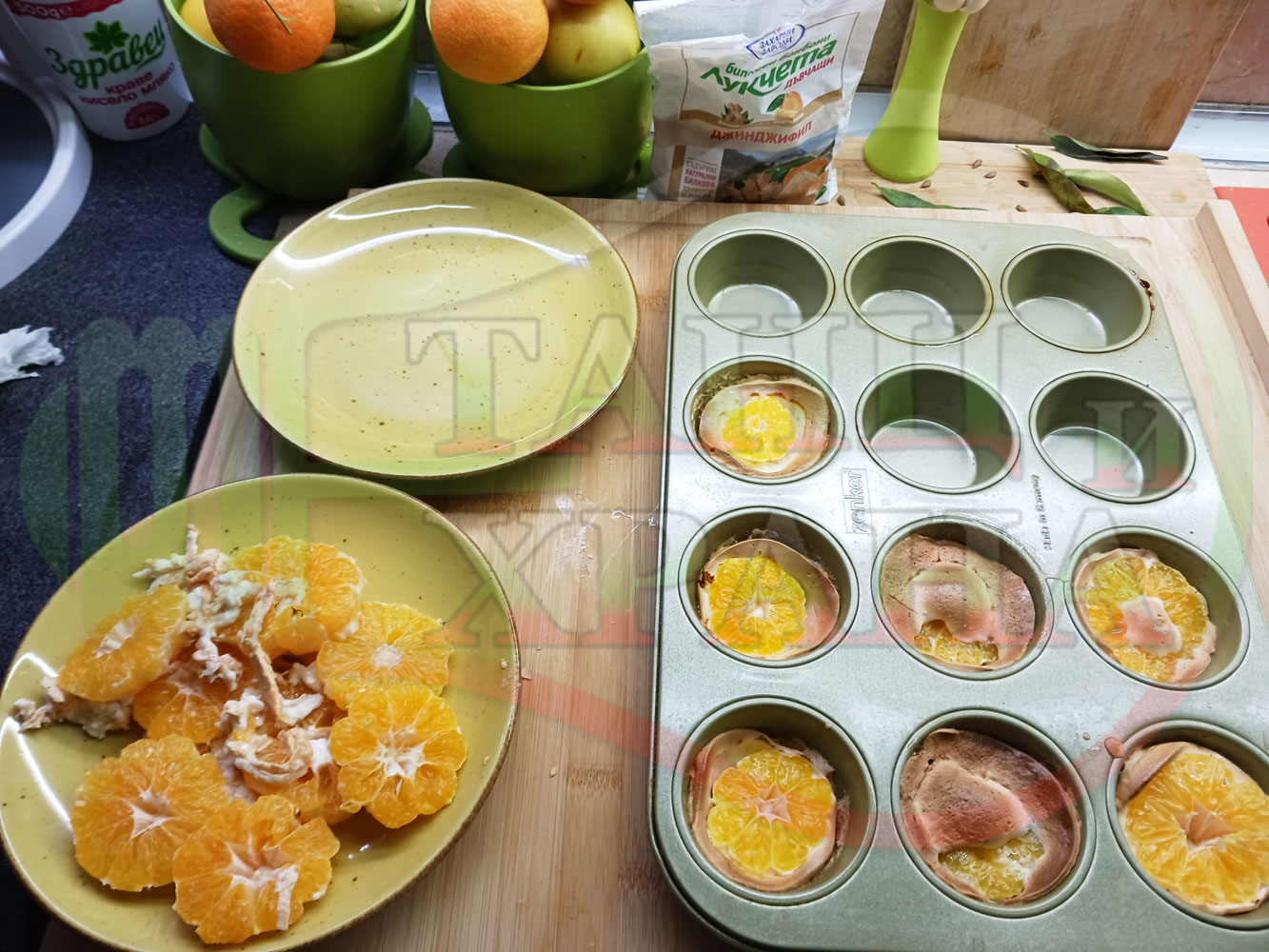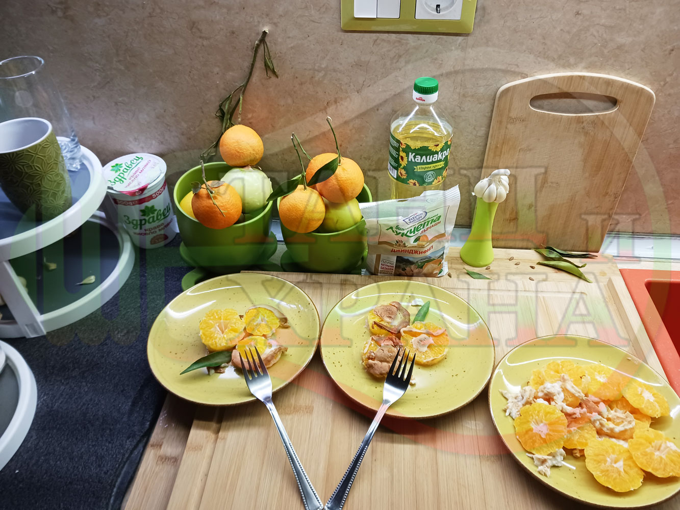П. С. Листата на мандарината не са ядливи, горчат и ги поставяйте по-далече от мини плодовите десерти, без да се допират до мандарините за да не ги вгорчат.