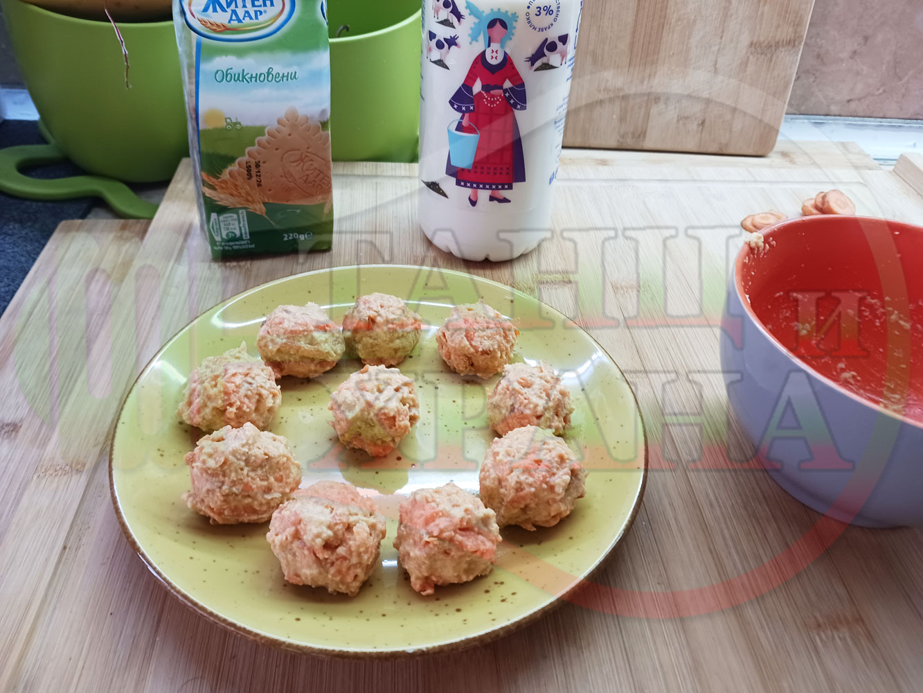 ПРОДУКТИ: Приблизителни количества за български бисквитени бонбонени млечни десерти "Морковени бисквитенотрюфелни прясномлечни" приготвен с обикновени бисквити, прясно мляко и пресни моркови гарнирани с медна основа от билков пчелен мед