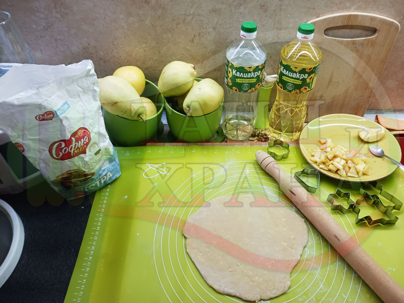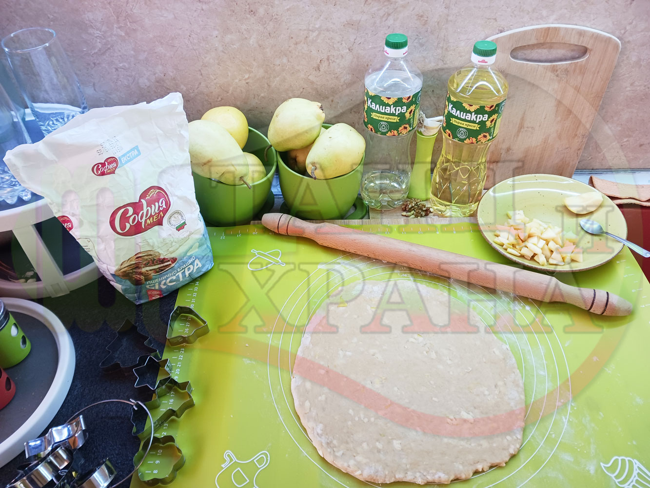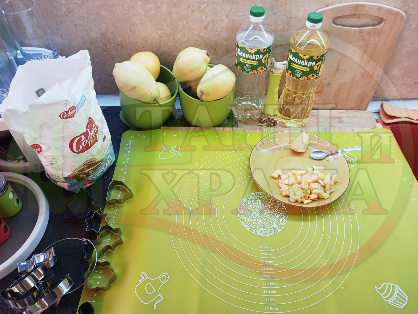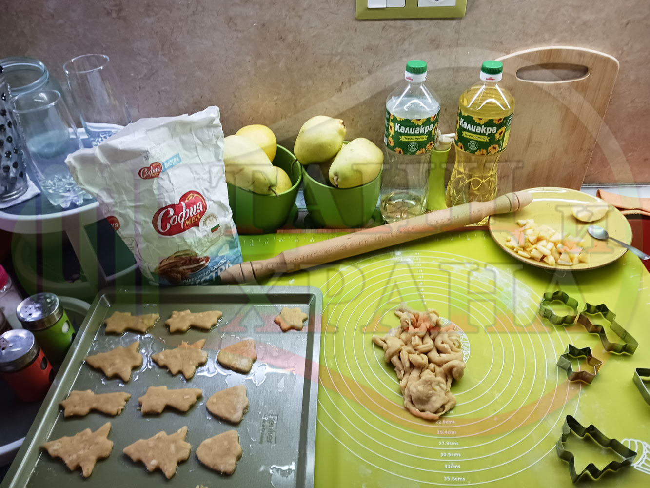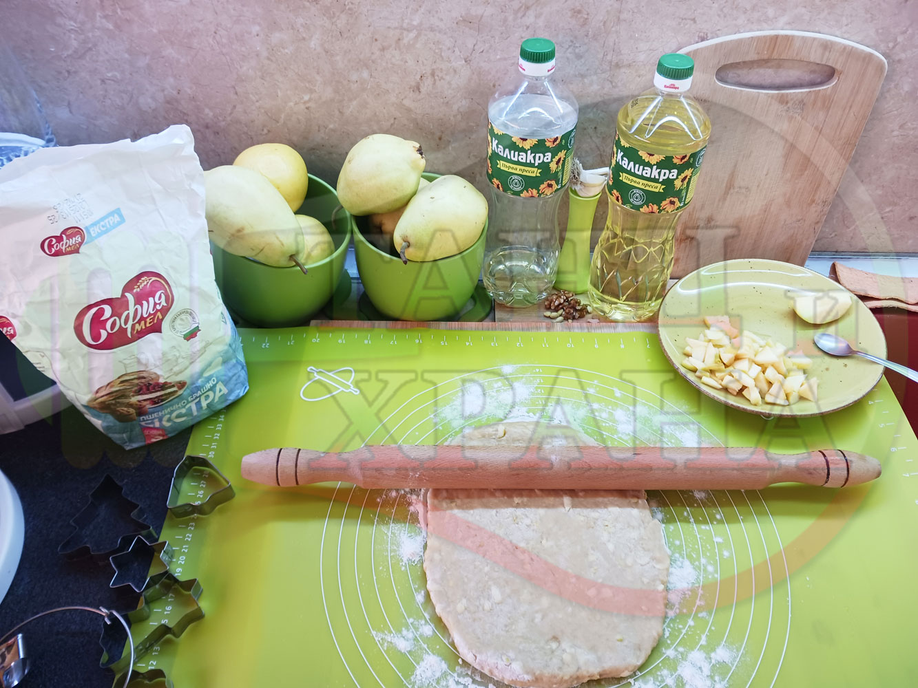 ПРОДУКТИ: Приблизителни количества за български класически коледни курабийки "Ябълкови канелени" приготвени с пресни ябълки и канела за Коледа 2025 г. омесени с брашно, яйца и кристална захар