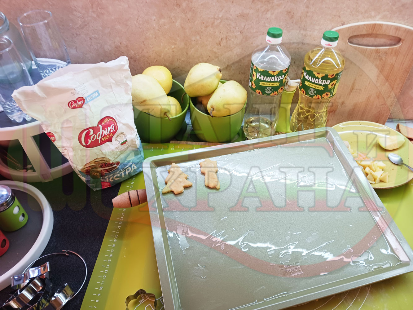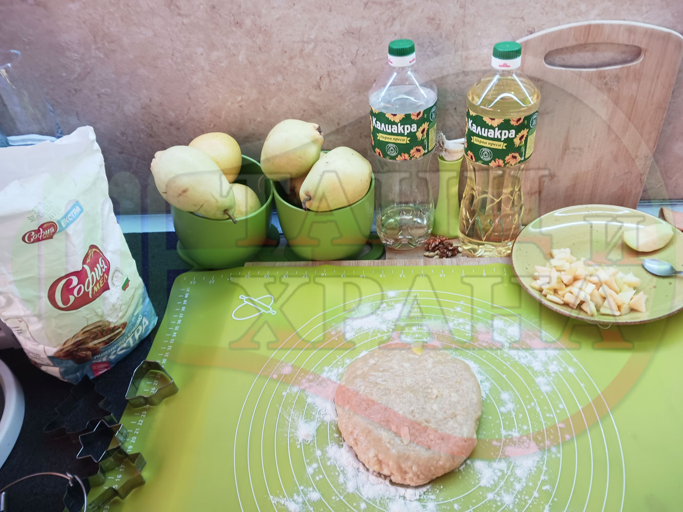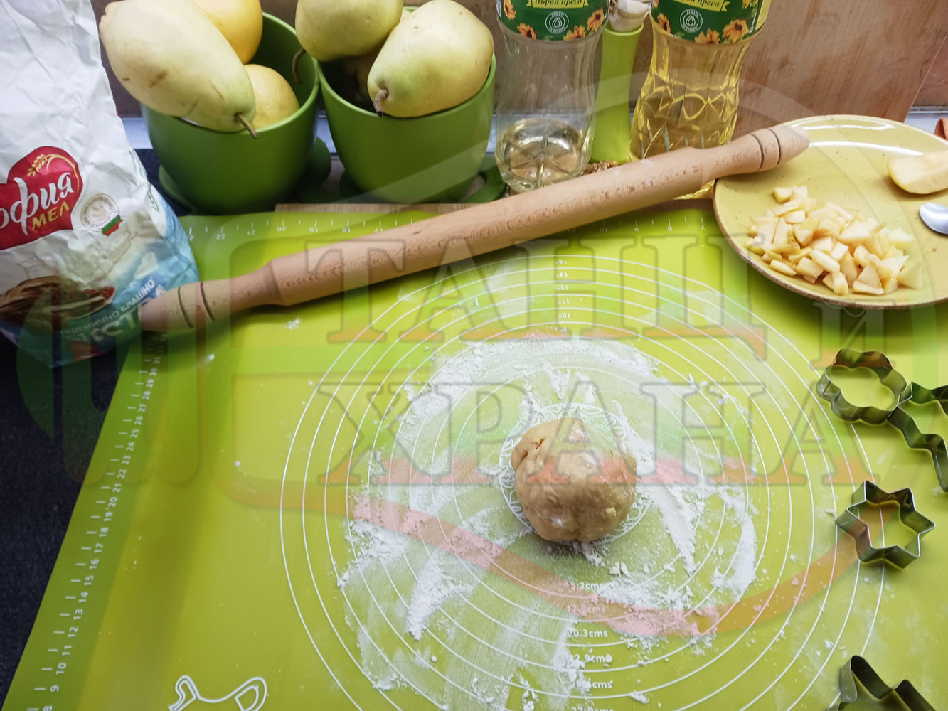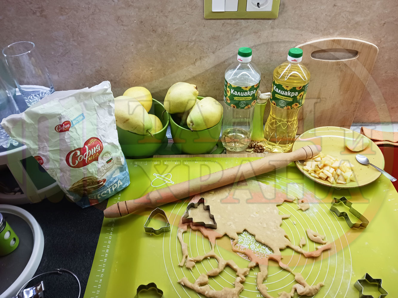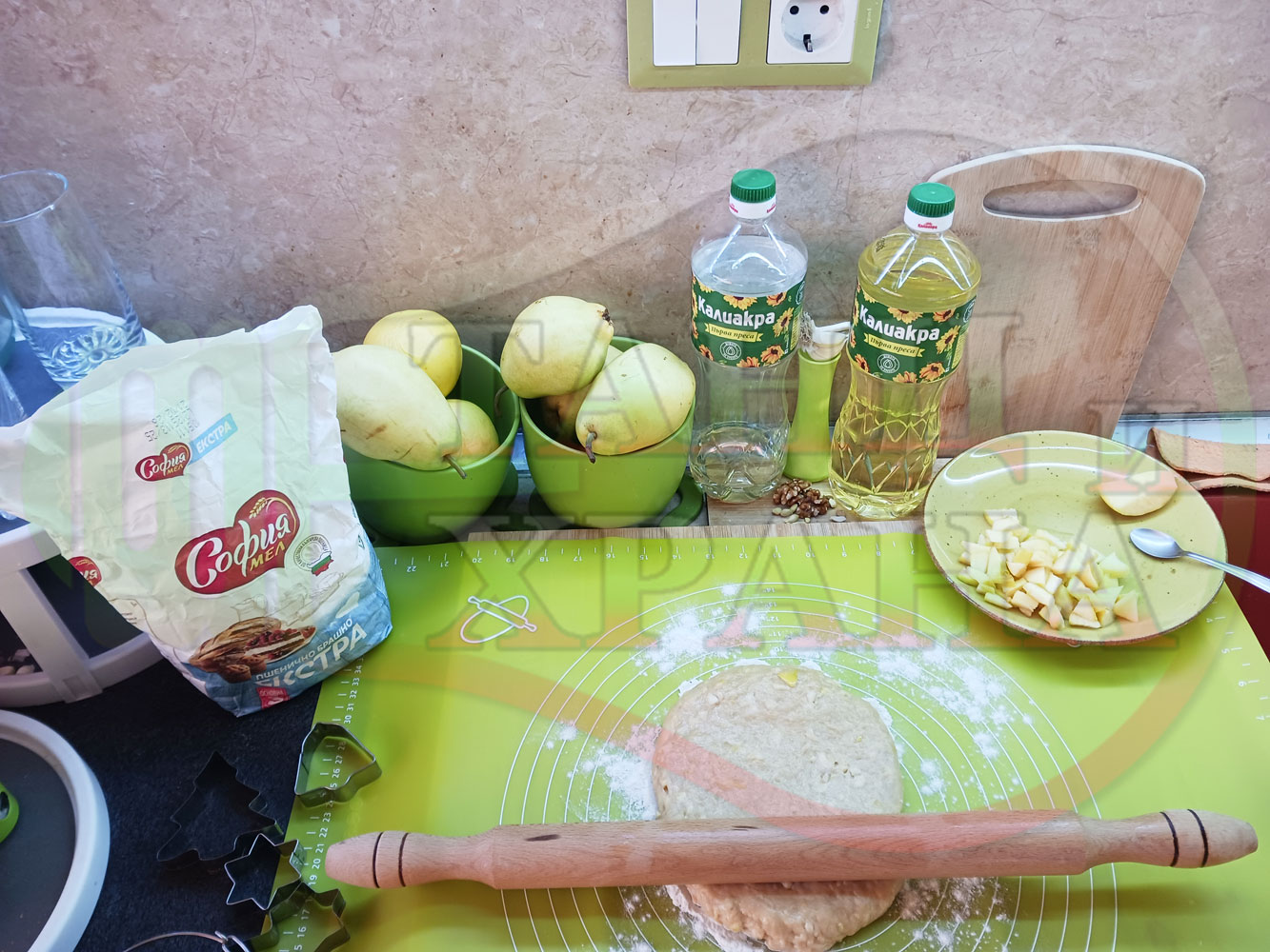 ПРОДУКТИ: Приблизителни количества за български класически коледни курабийки "Ябълкови канелени" приготвени с пресни ябълки и канела за Коледа 2025 г. омесени с брашно, яйца и кристална захар