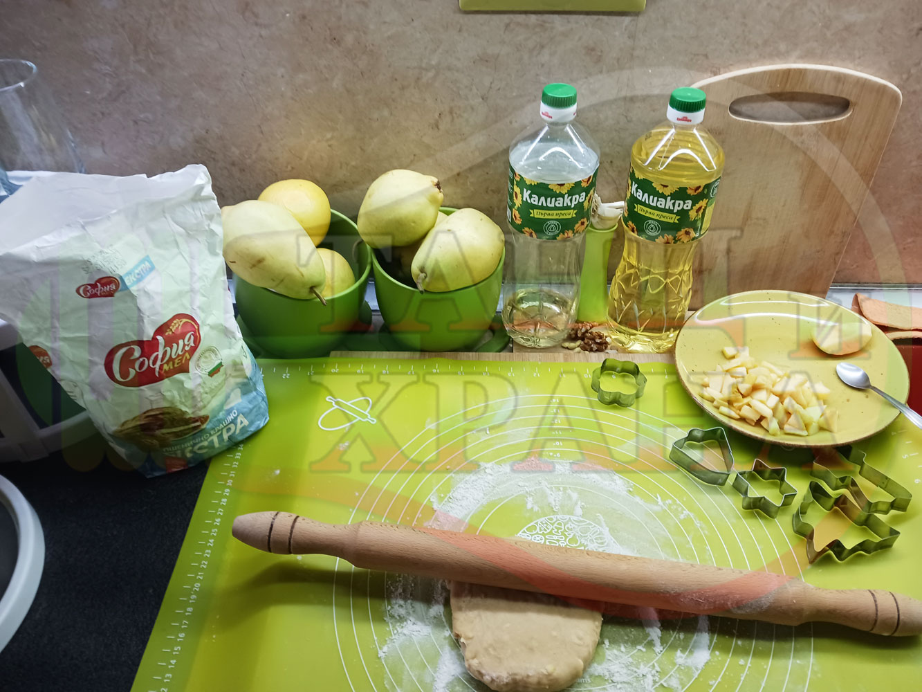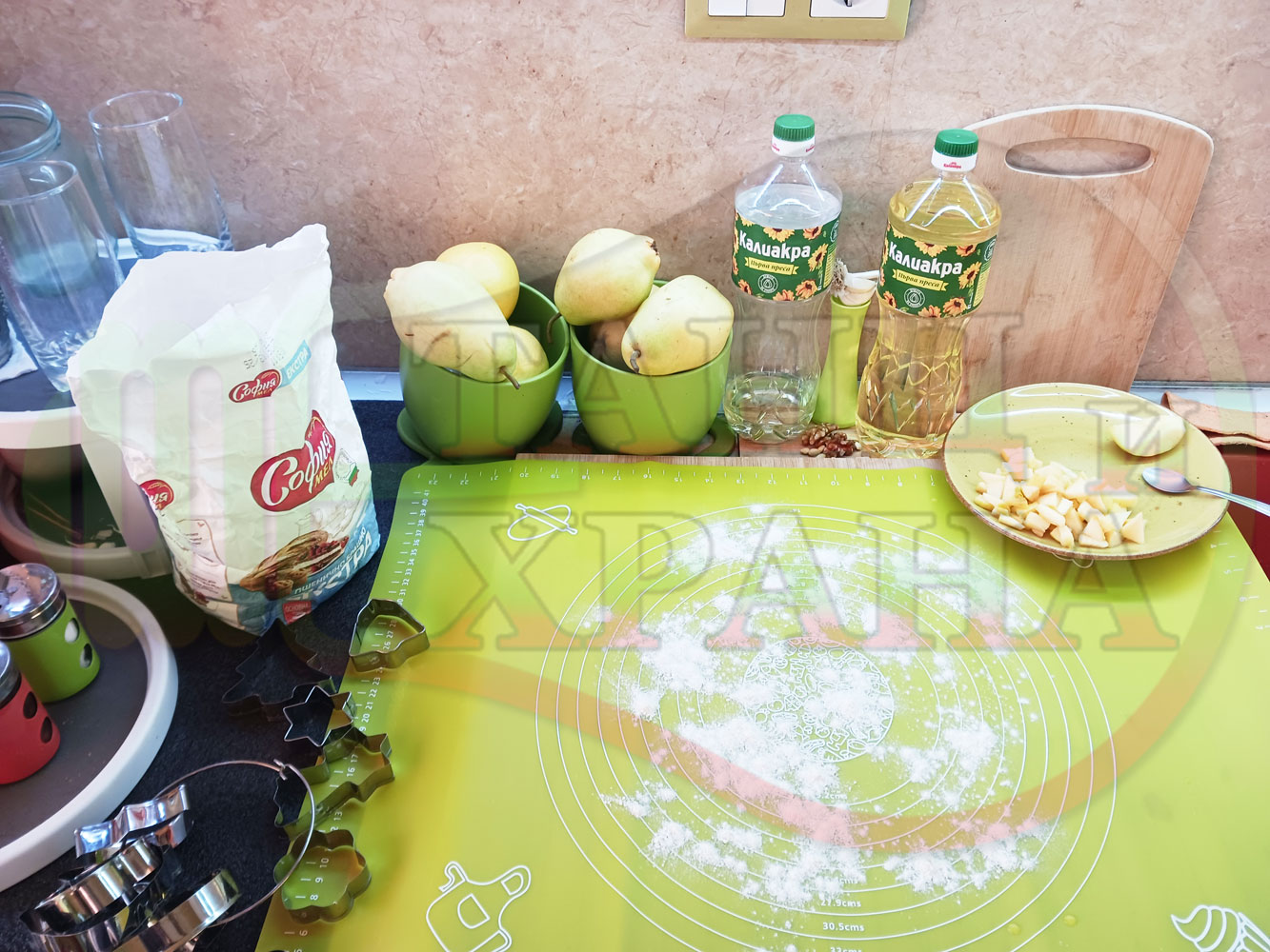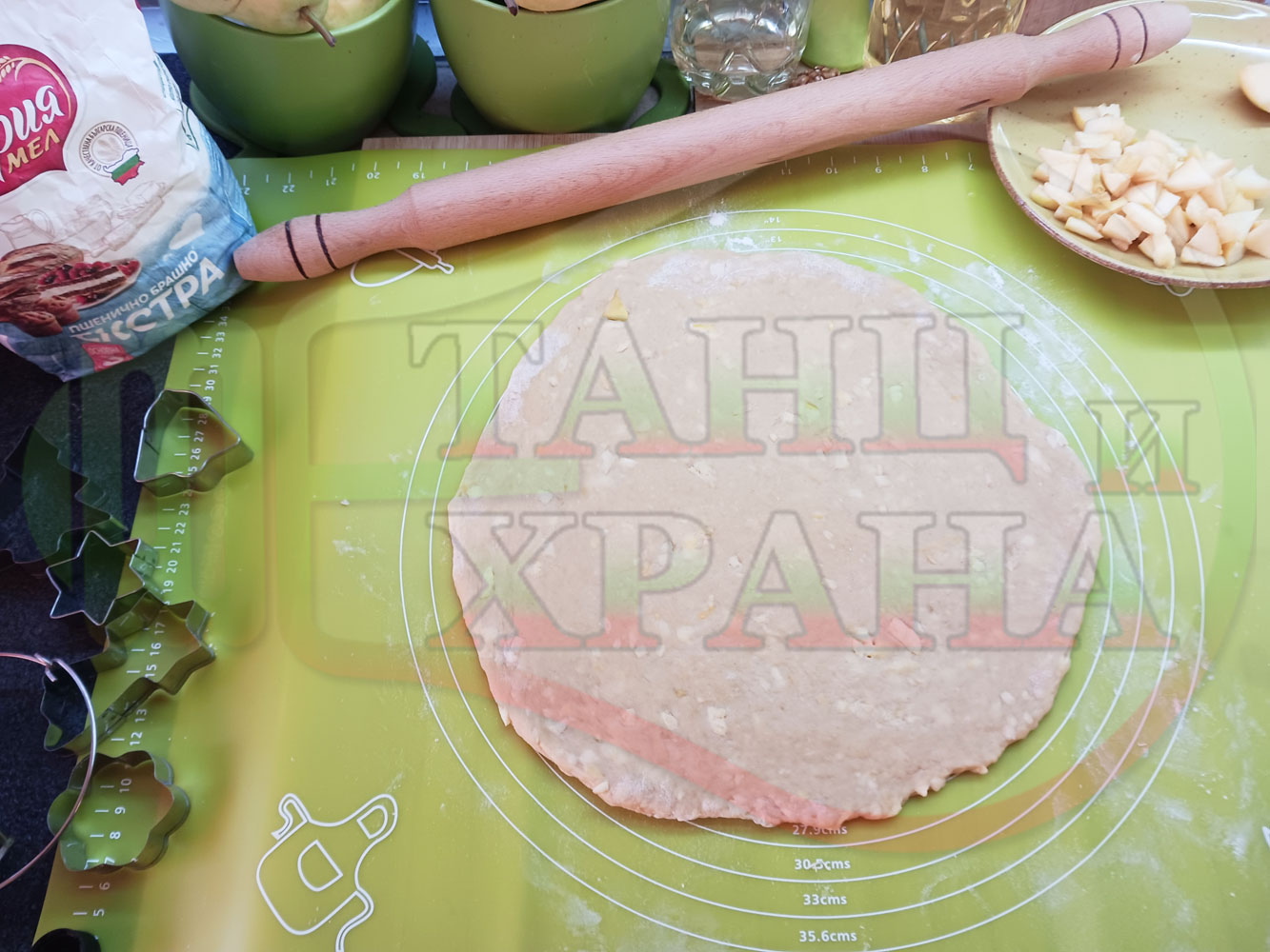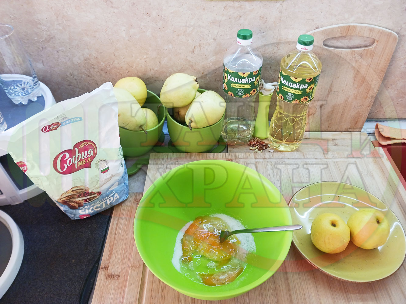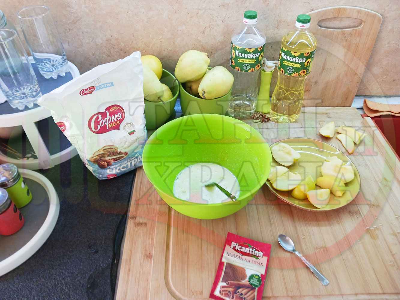 ПРОДУКТИ: Приблизителни количества за български класически коледни курабийки "Ябълкови канелени" приготвени с пресни ябълки и канела за Коледа 2025 г. омесени с брашно, яйца и кристална захар