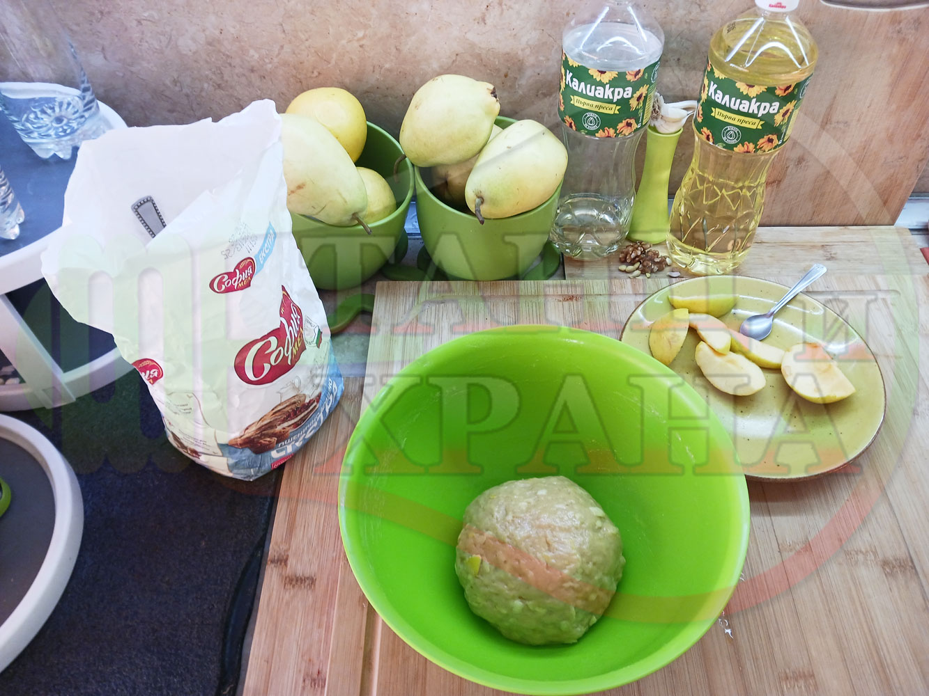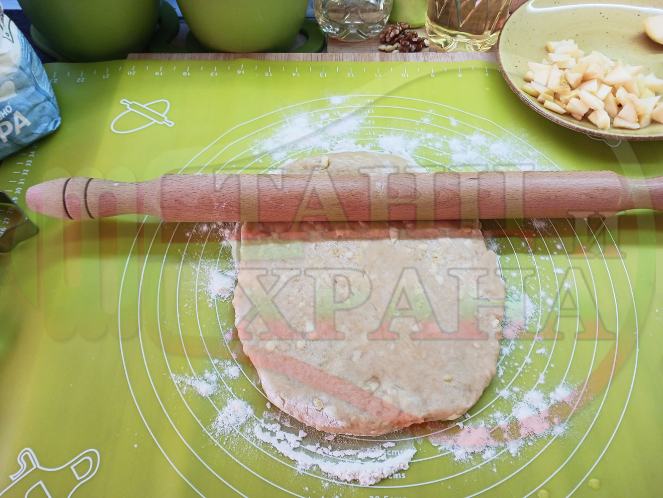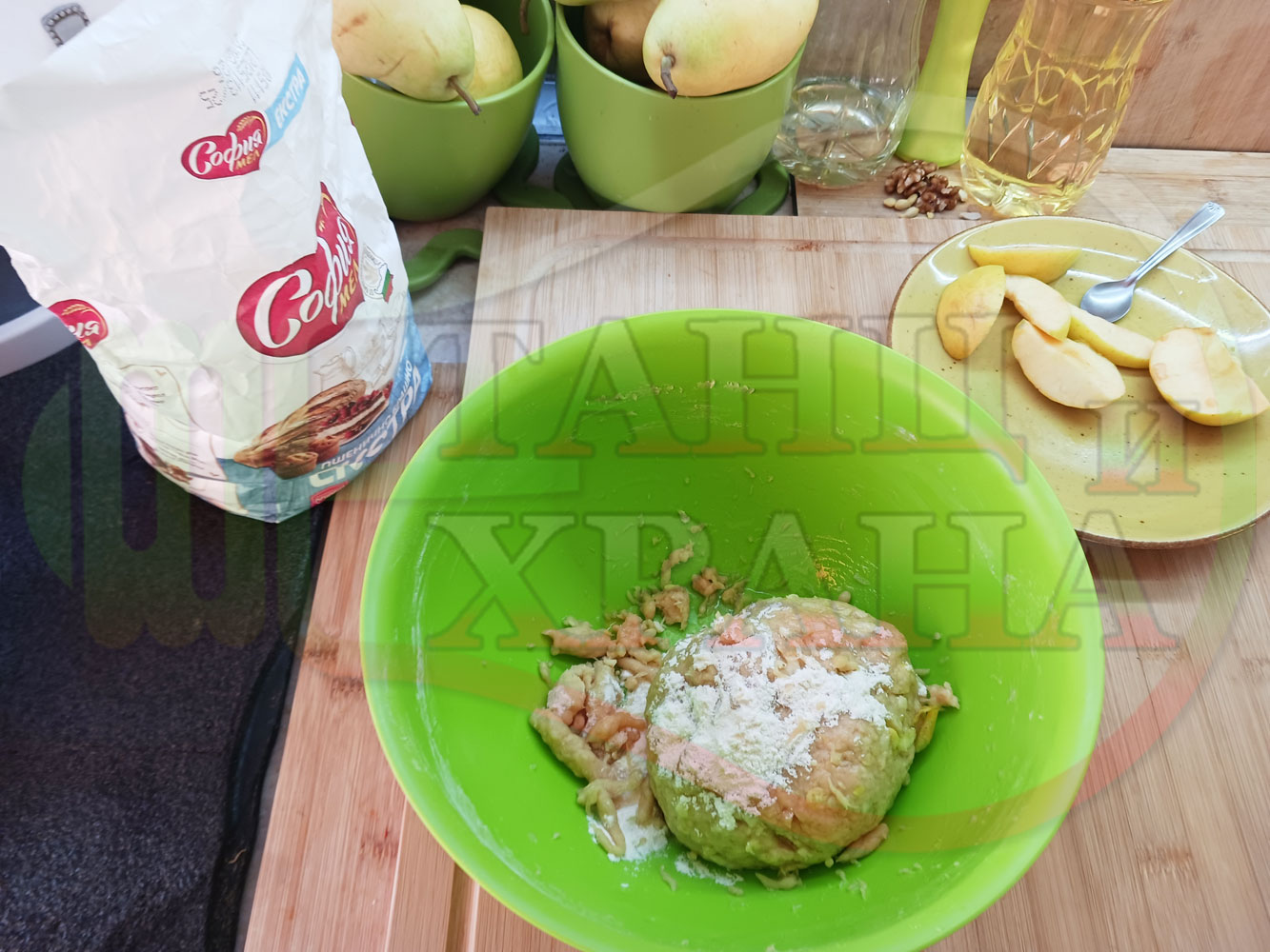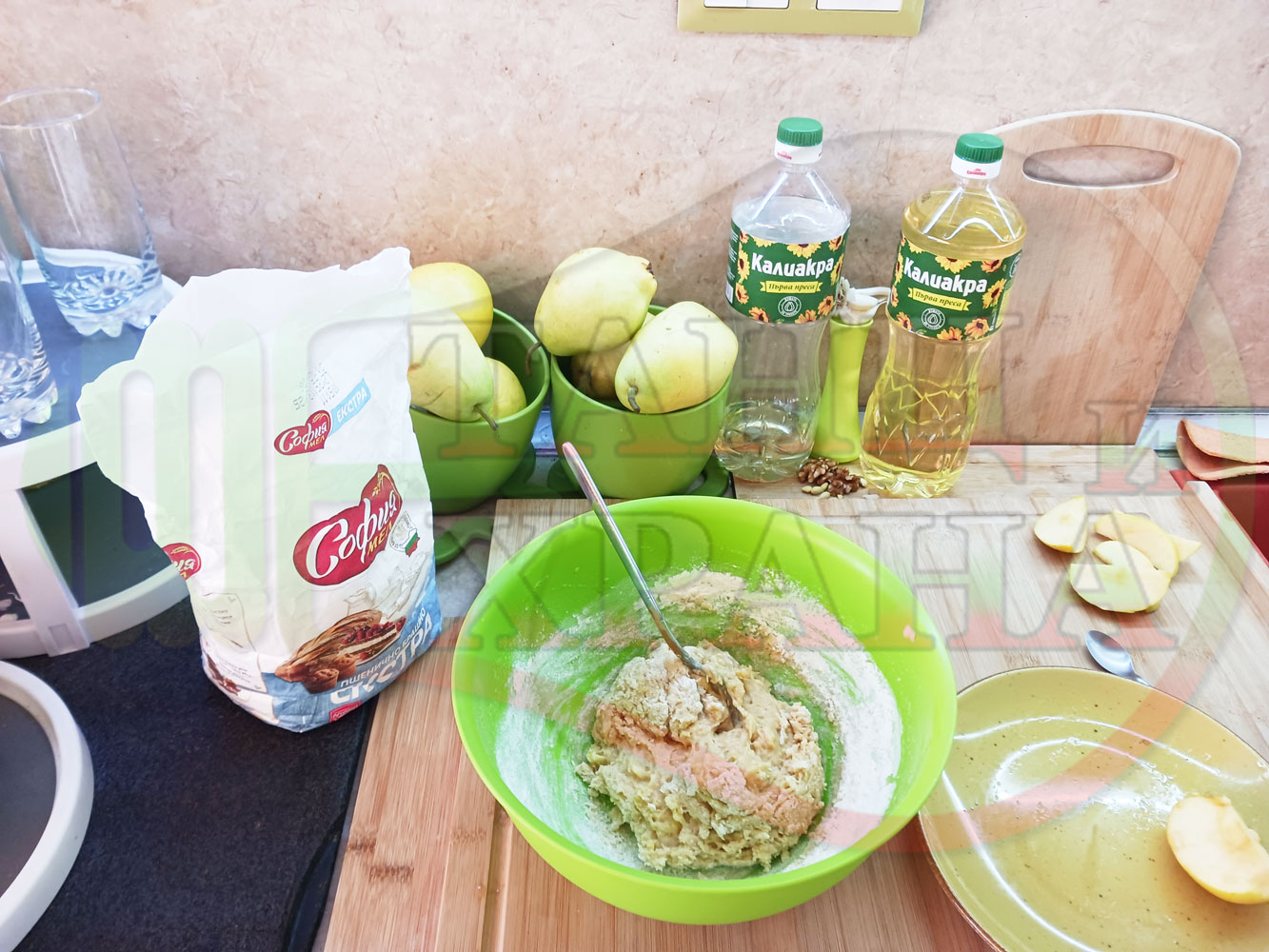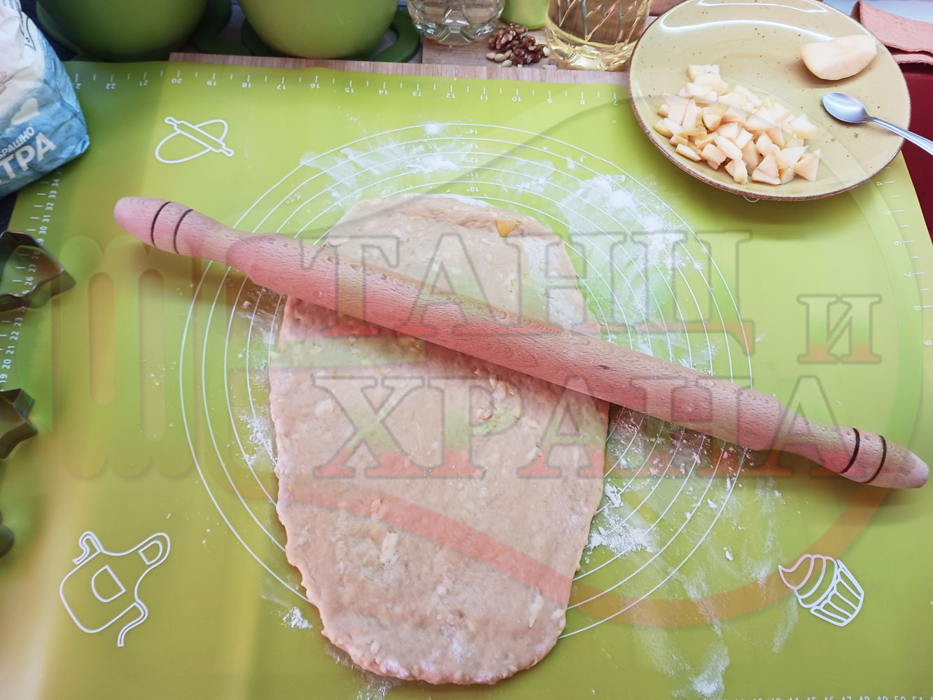 ПРОДУКТИ: Приблизителни количества за български класически коледни курабийки "Ябълкови канелени" приготвени с пресни ябълки и канела за Коледа 2025 г. омесени с брашно, яйца и кристална захар