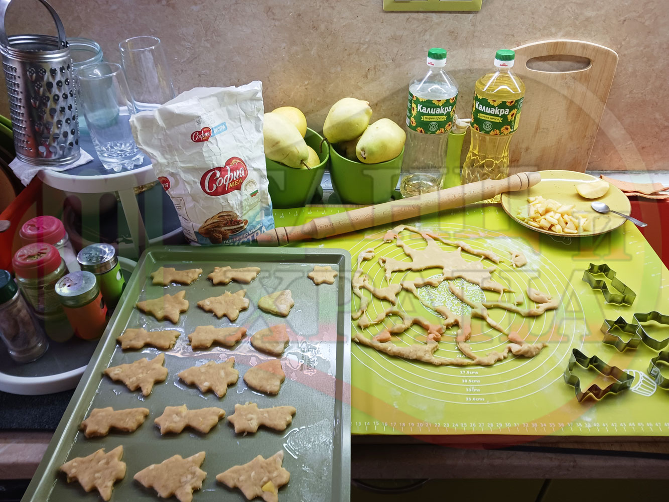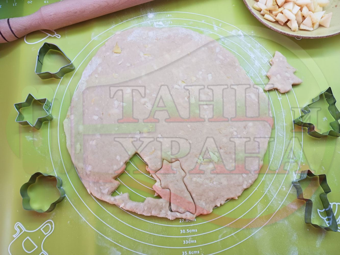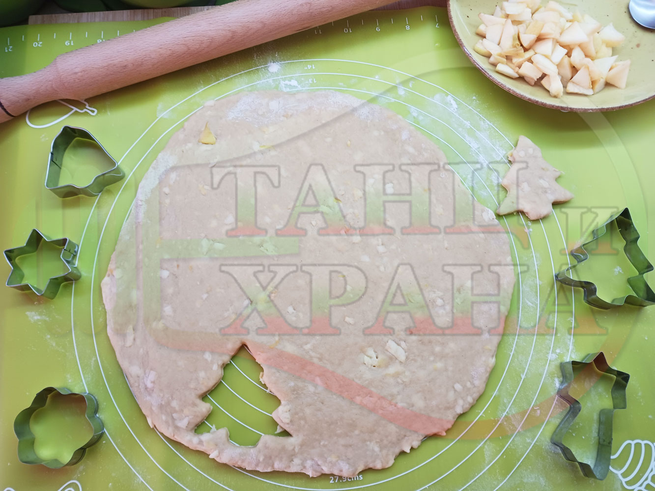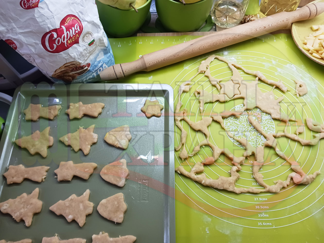 Български класически коледни курабийки "Ябълкови канелени" приготвени с пресни ябълки и канела за Коледа 2025 г. омесени с брашно, яйца и кристална захар