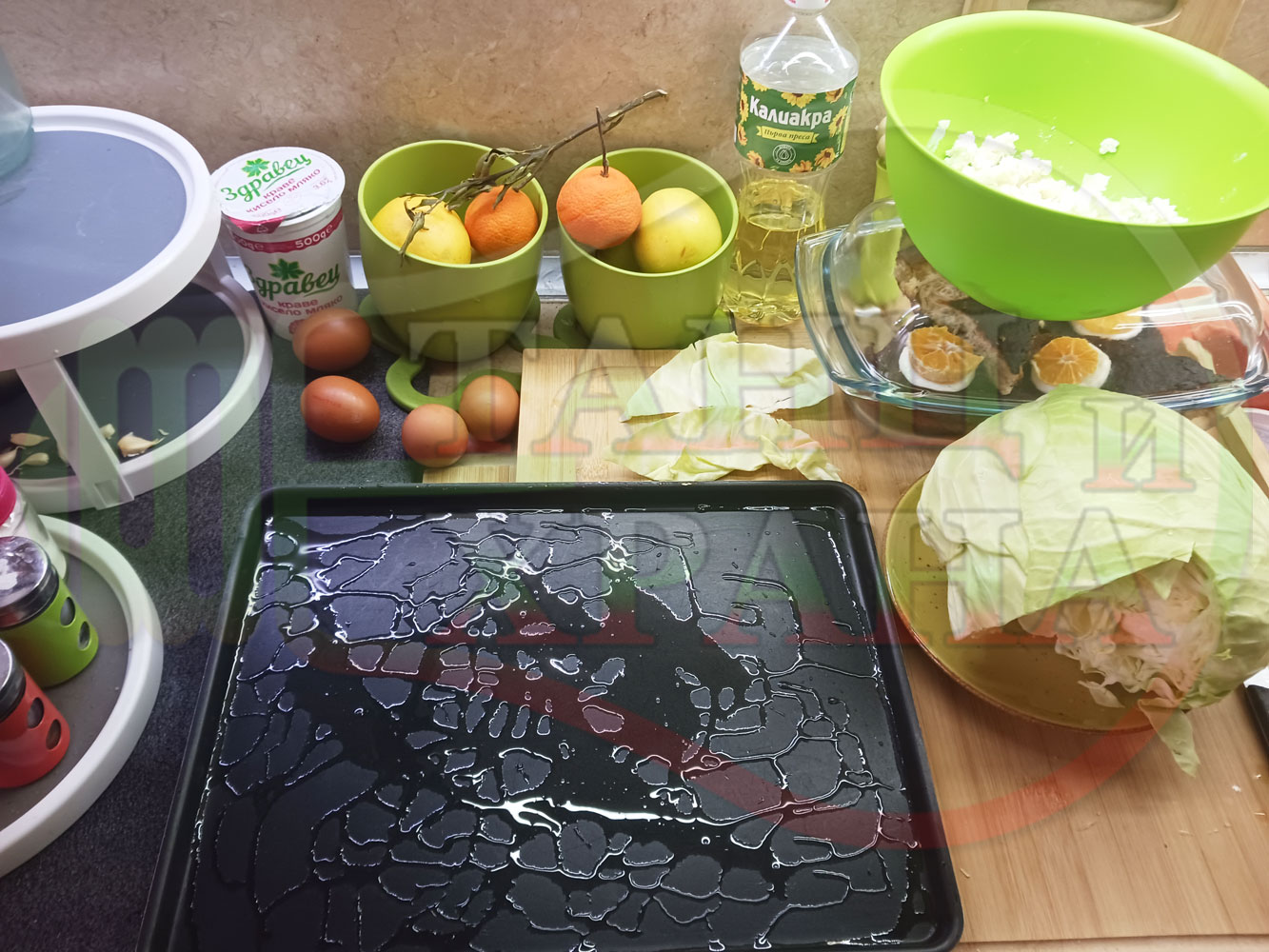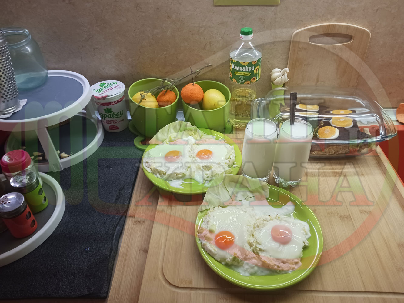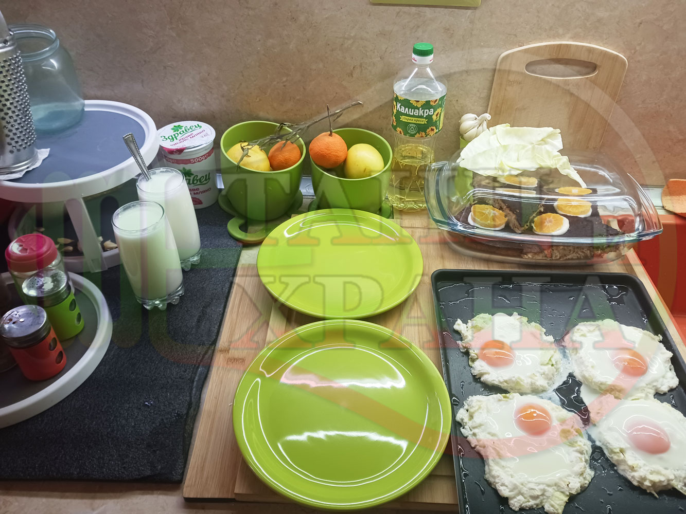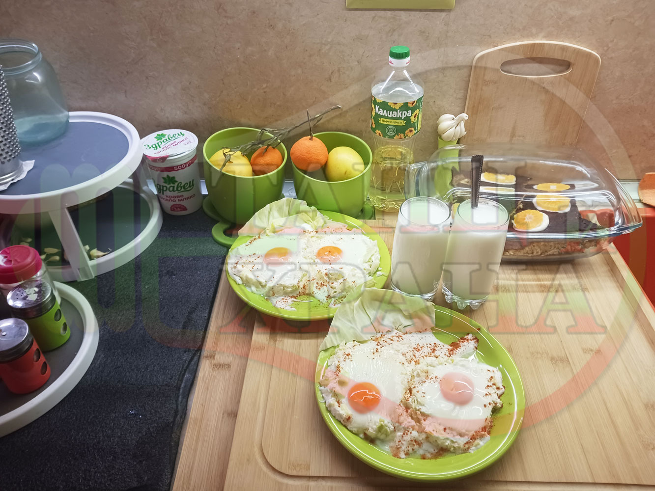 ПРОДУКТИ: Приблизителни количества за българска зеленчукова млечна яйчена салата "Пряснозелева с БГсирене" запечена на фурна със сиреново зелев крем от прясно зеле и краве бяло сирене оформен на кладенчета напълнени с яйца на очи гарнирана с кисело мляко от България - двукомпонентна