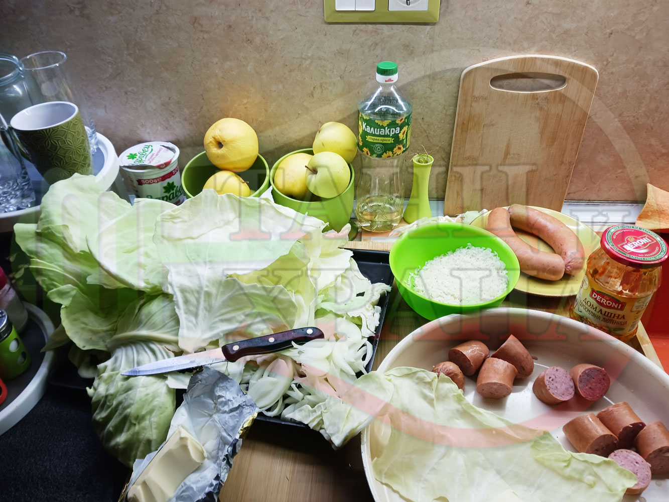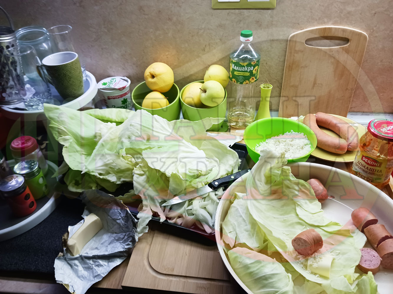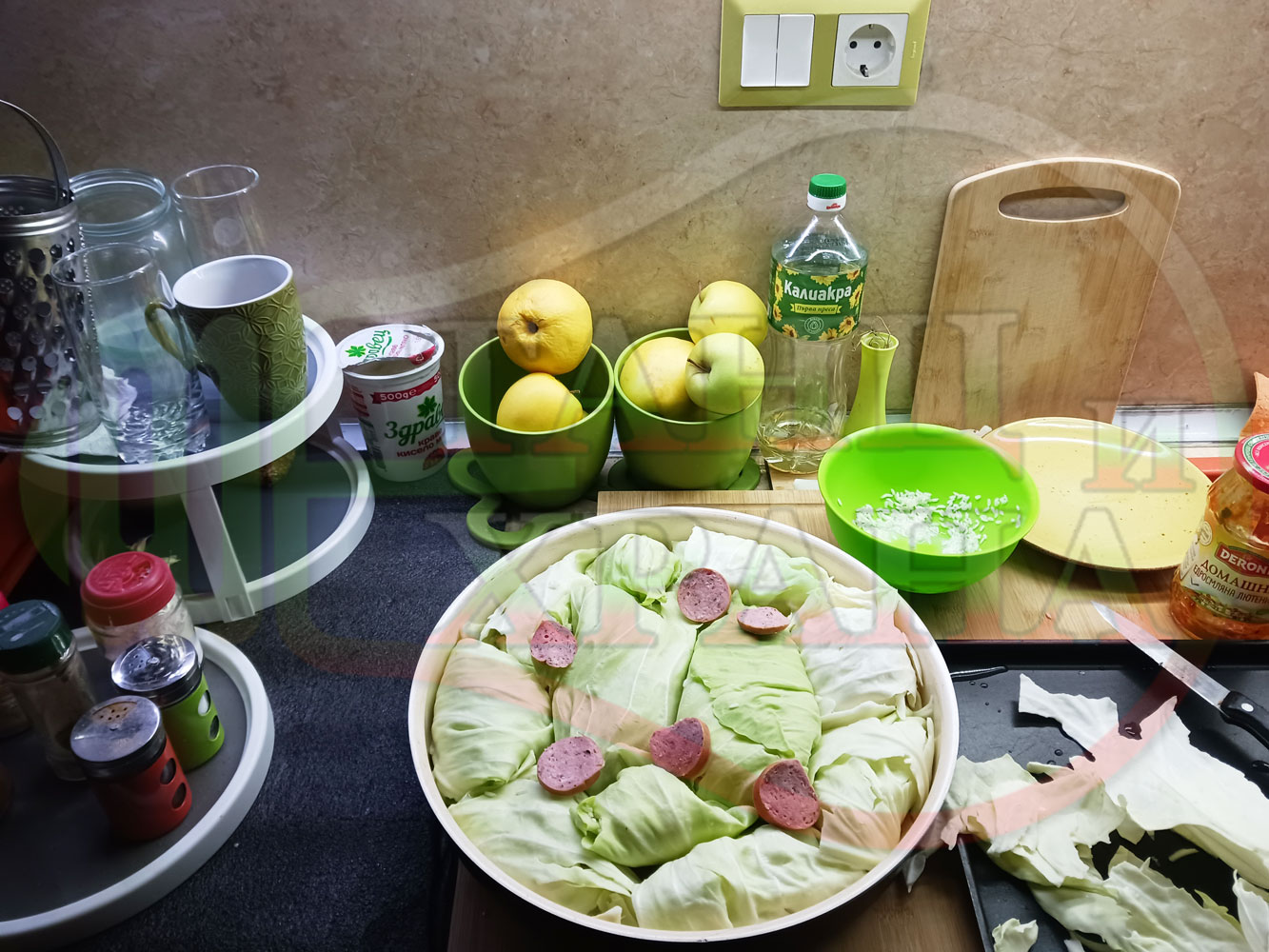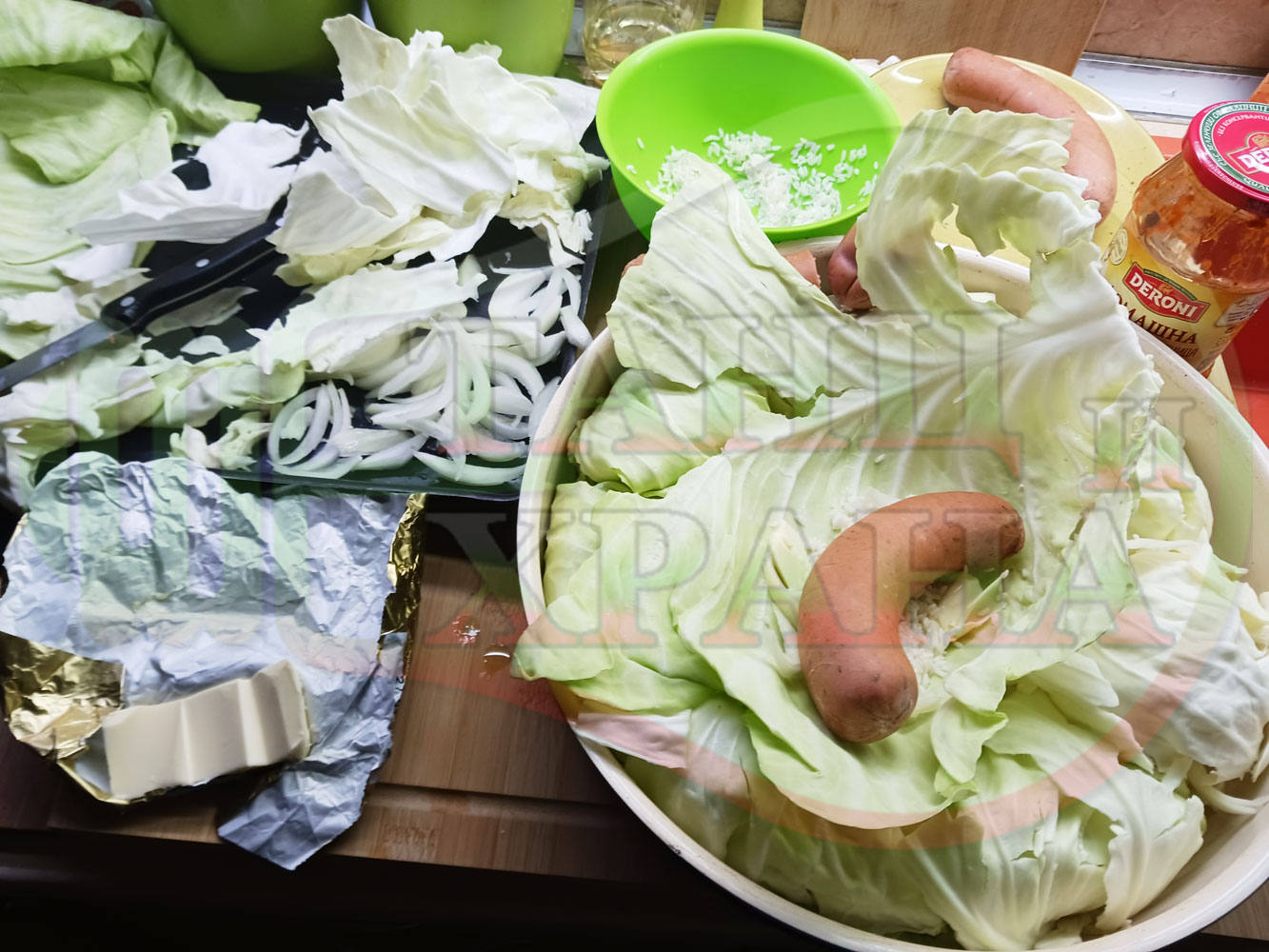 Често в главата ми се въртят повече от една рецепта и всеки път се чудя коя точно да спретна. В крайна сметка реших да приготвя зелеви сарми с ориз с необичайна плънка от родопска наденица (с цели наденици и нарязани на едро парчета), ориз, кромид лук и краве масло без предварително запичане (запържване) на плънката и без сушени мерудии. Овкусих водата с едросмляна лютеница, в която сварих и запекох големите, зелеви сарми и отново се получи невероятна вкусно, вкусна, вкусотия (вкуснотия). ![]()