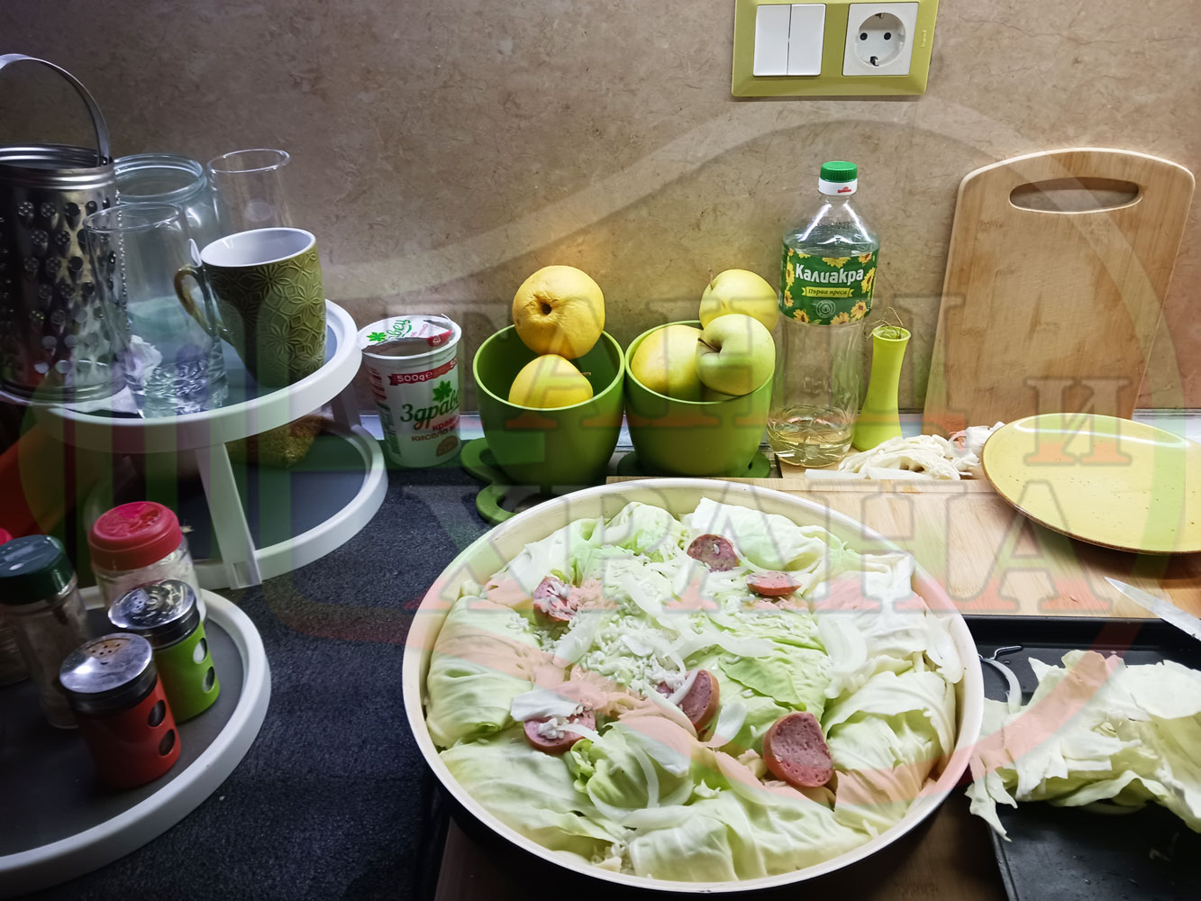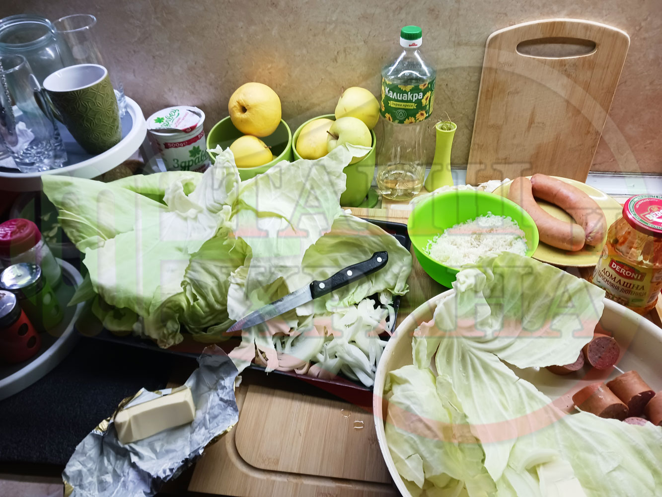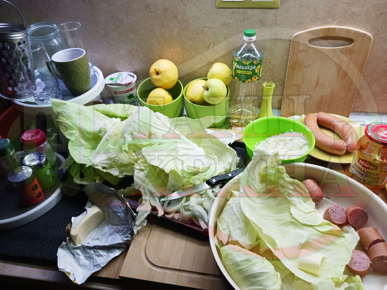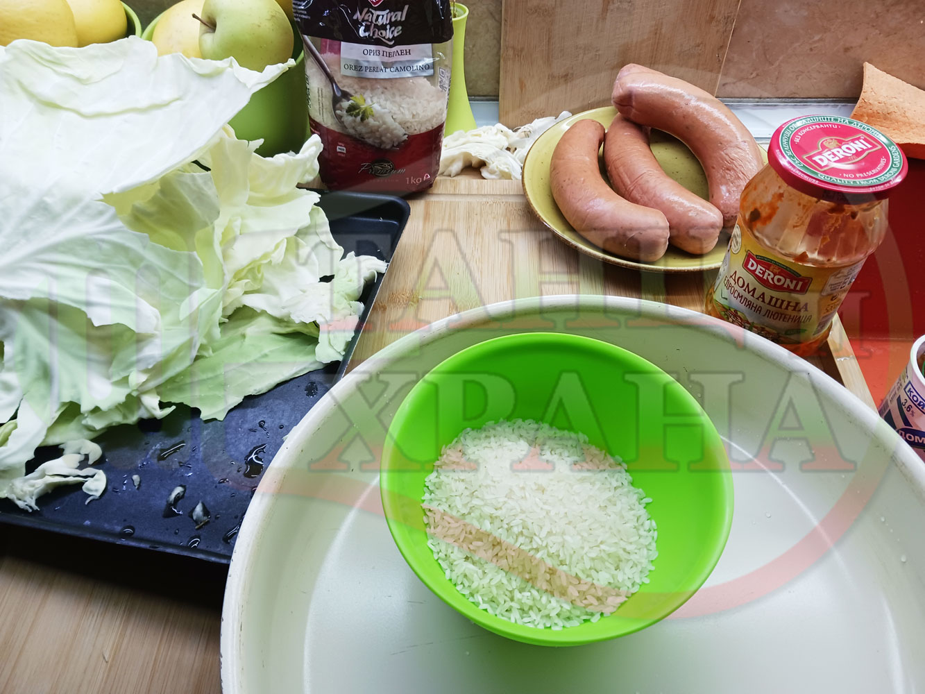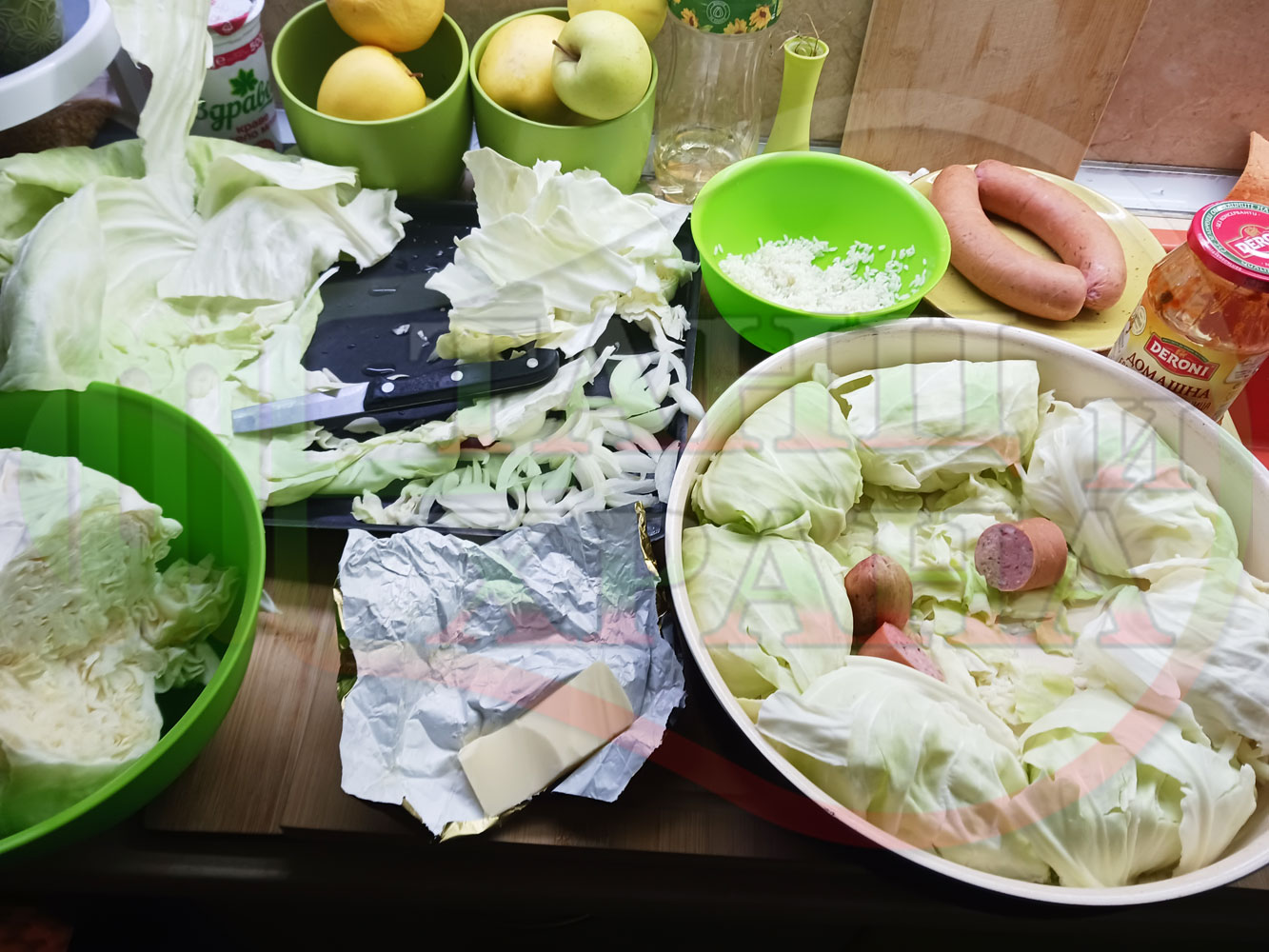 Често в главата ми се въртят повече от една рецепта и всеки път се чудя коя точно да спретна. В крайна сметка реших да приготвя зелеви сарми с ориз с необичайна плънка от родопска наденица (с цели наденици и нарязани на едро парчета), ориз, кромид лук и краве масло без предварително запичане (запържване) на плънката и без сушени мерудии. Овкусих водата с едросмляна лютеница, в която сварих и запекох големите, зелеви сарми и отново се получи невероятна вкусно, вкусна, вкусотия (вкуснотия). ![]()