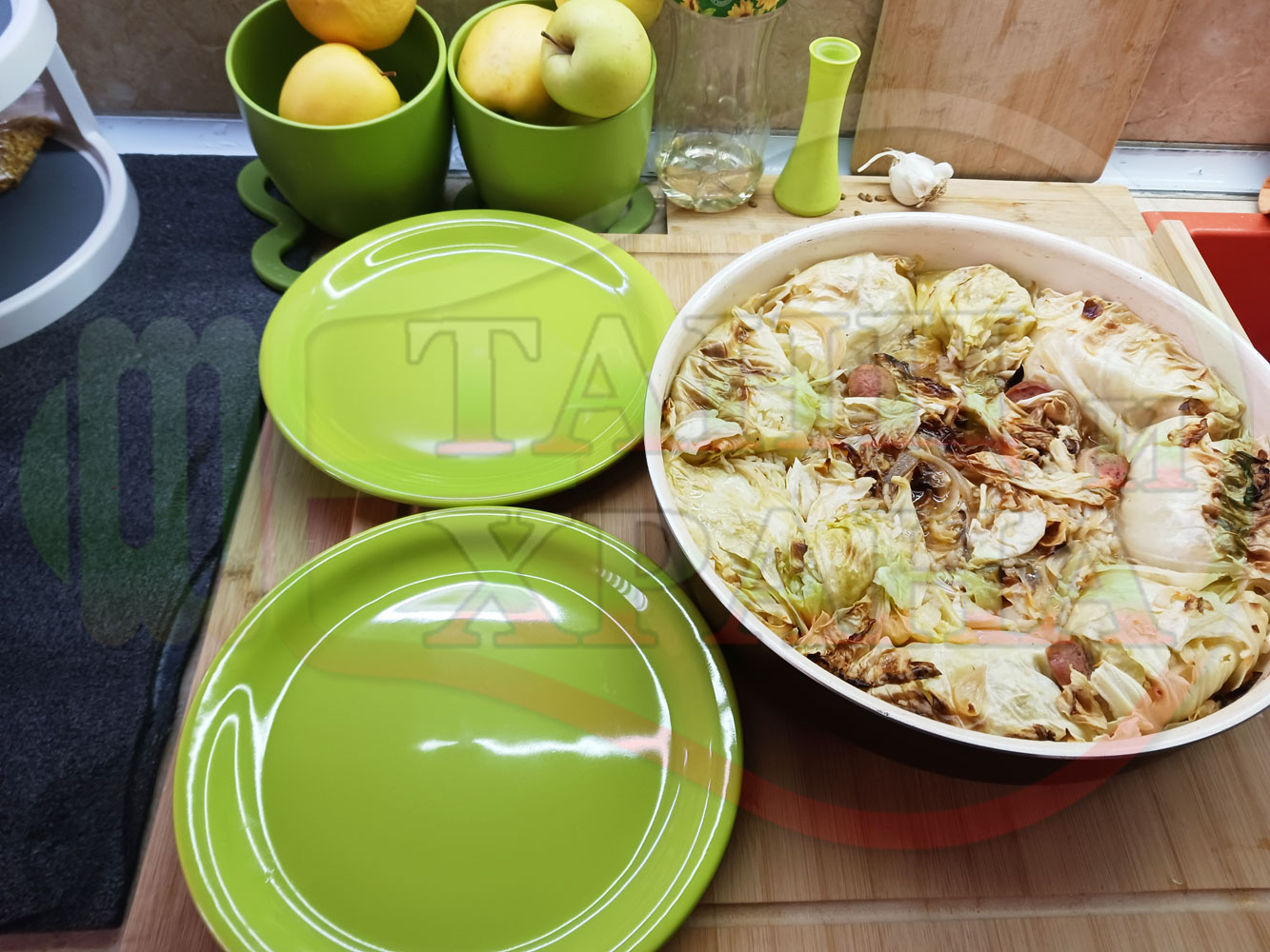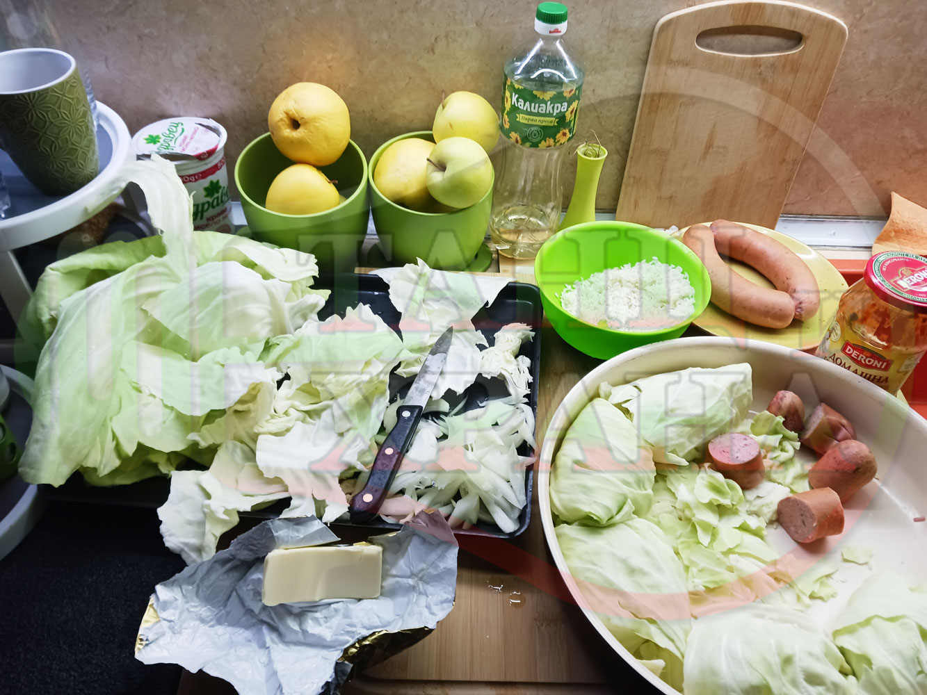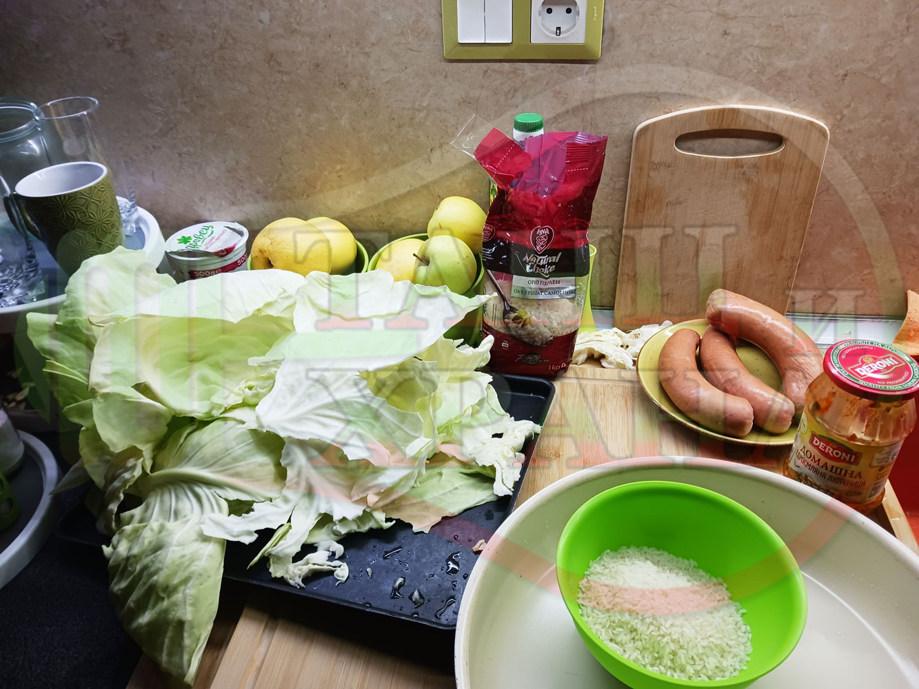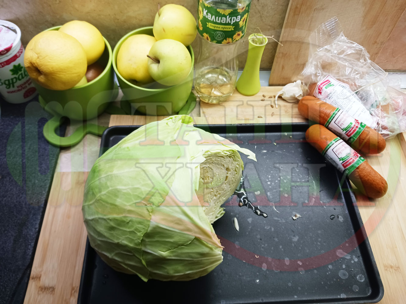Често в главата ми се въртят повече от една рецепта и всеки път се чудя коя точно да спретна. В крайна сметка реших да приготвя зелеви сарми с ориз с необичайна плънка от родопска наденица (с цели наденици и нарязани на едро парчета), ориз, кромид лук и краве масло без предварително запичане (запържване) на плънката и без сушени мерудии. Овкусих водата с едросмляна лютеница, в която сварих и запекох големите, зелеви сарми и отново се получи невероятна вкусно, вкусна, вкусотия (вкуснотия). ![]()