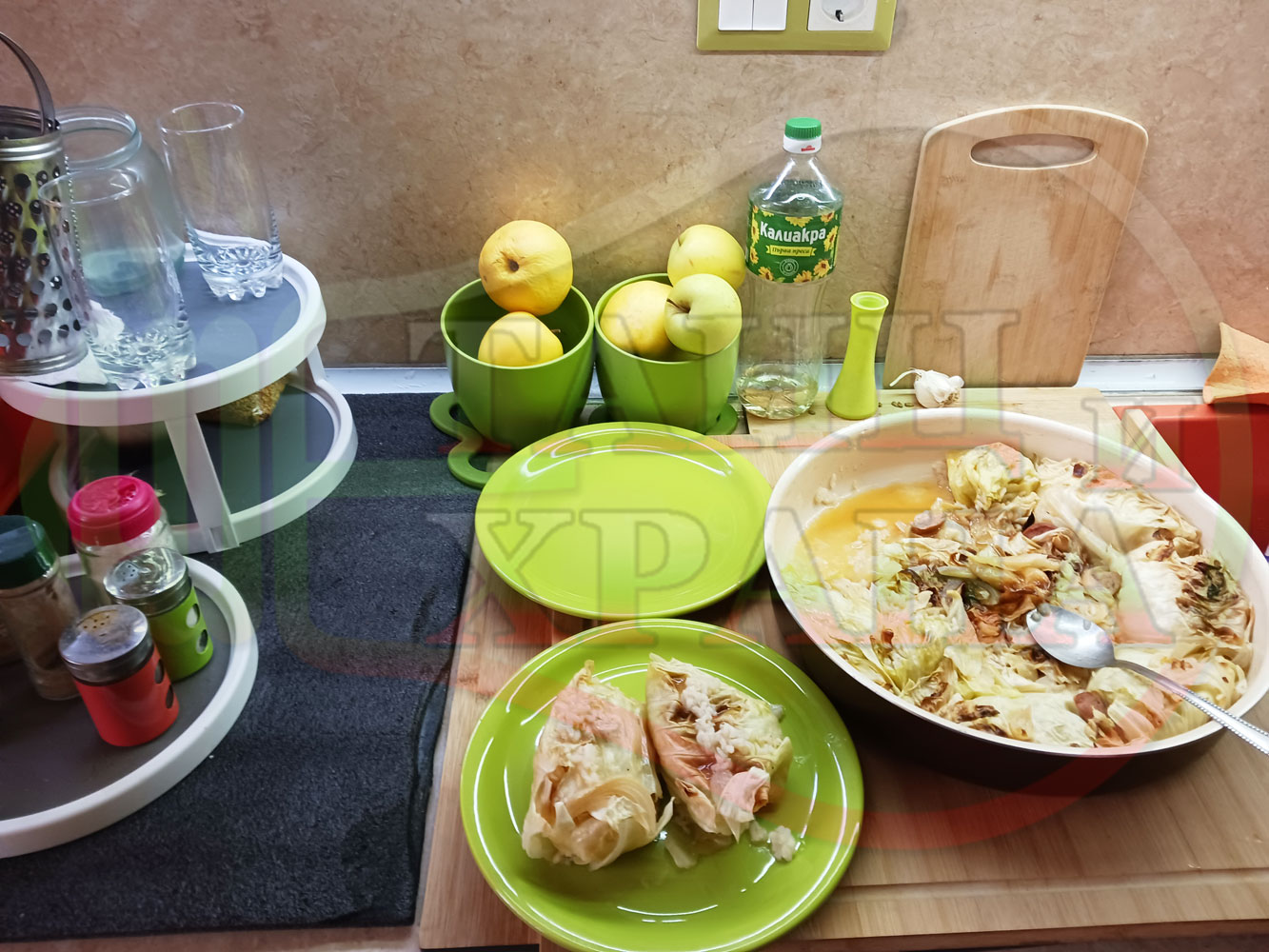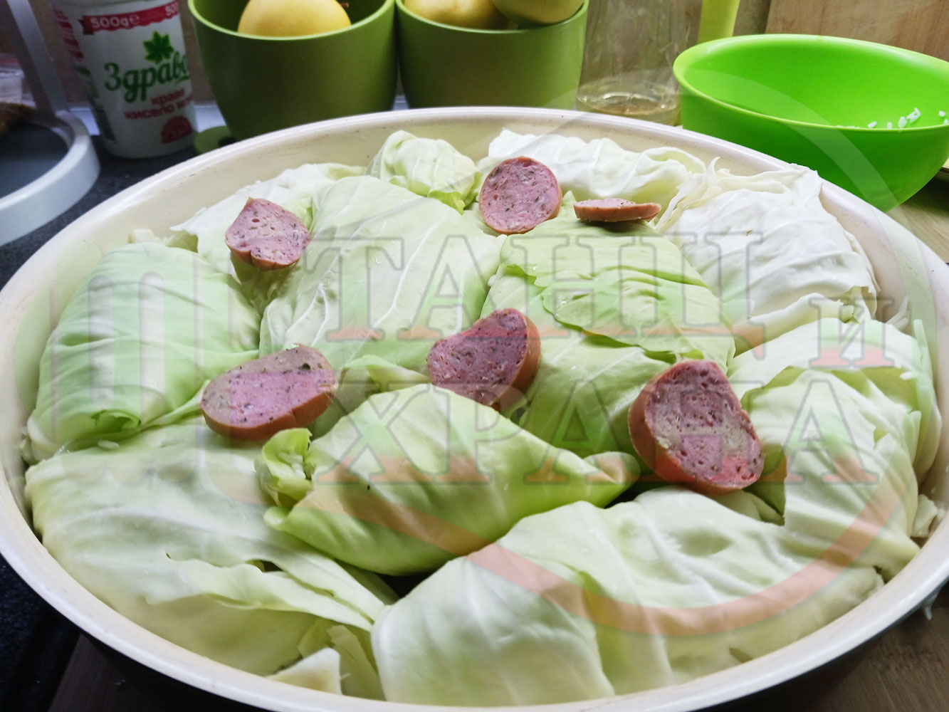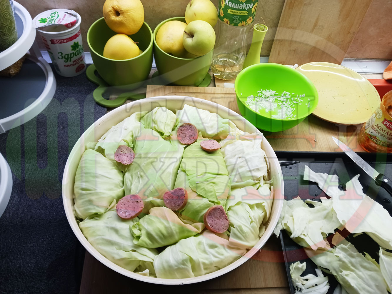 Следващите снимки онагледяват сармите с нарязаните на едри парчета родопска наденица, които си ги хапнахме на следващия ден.
