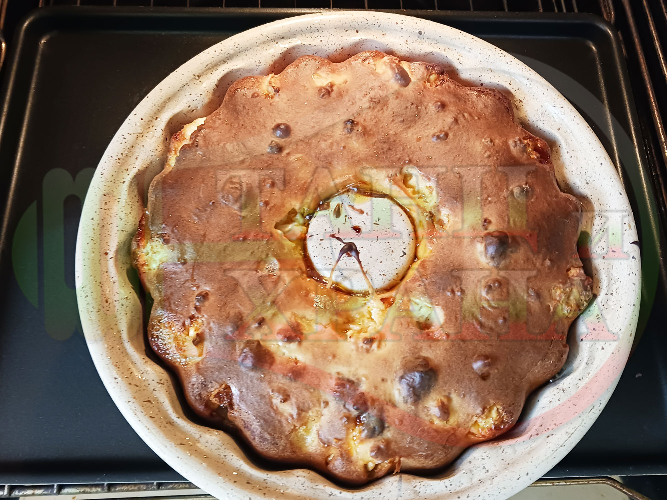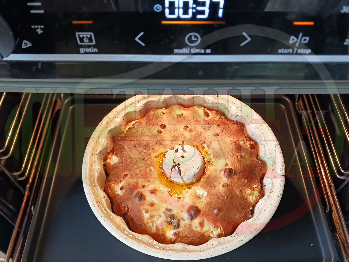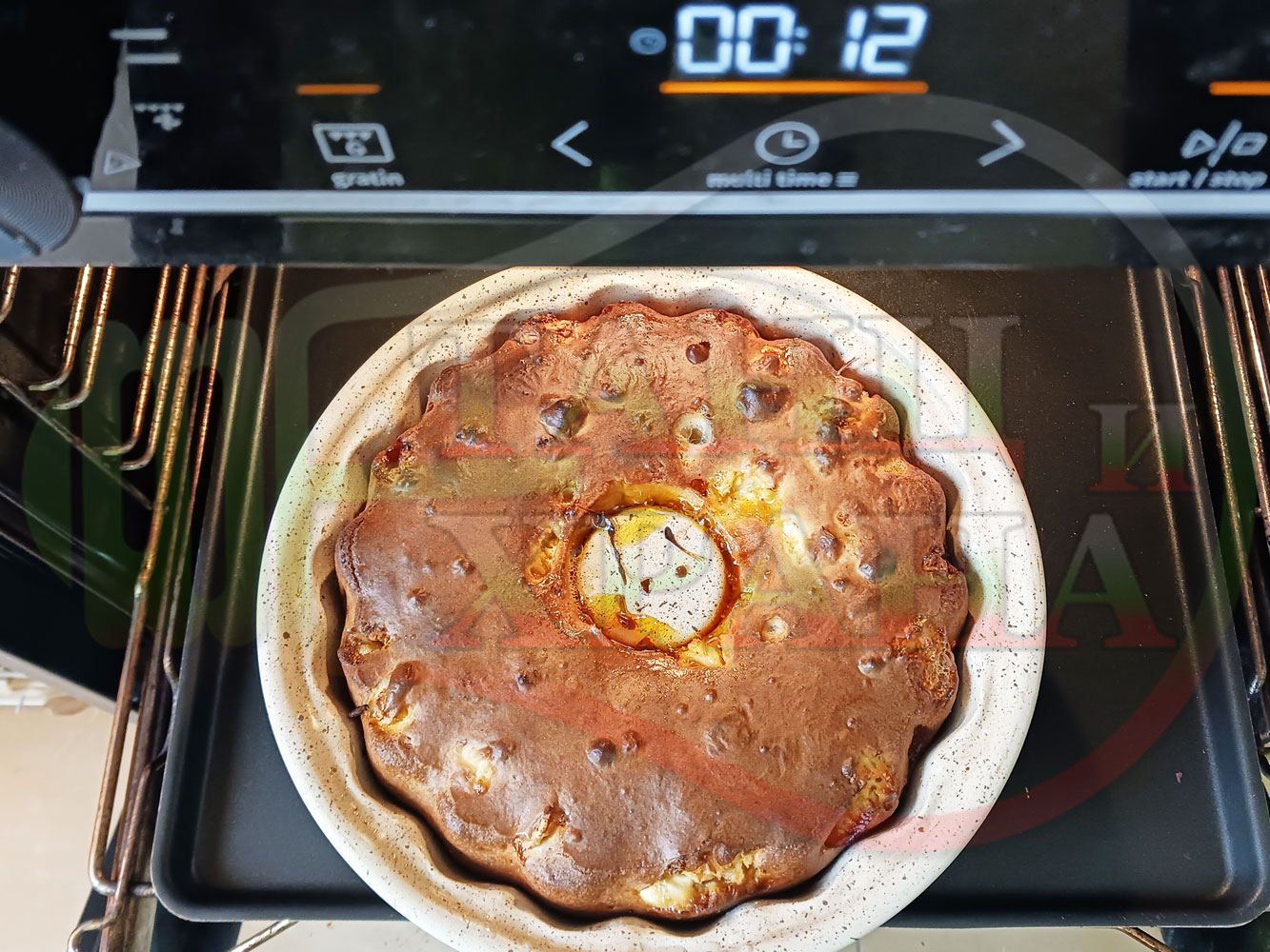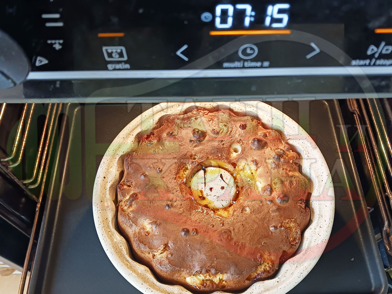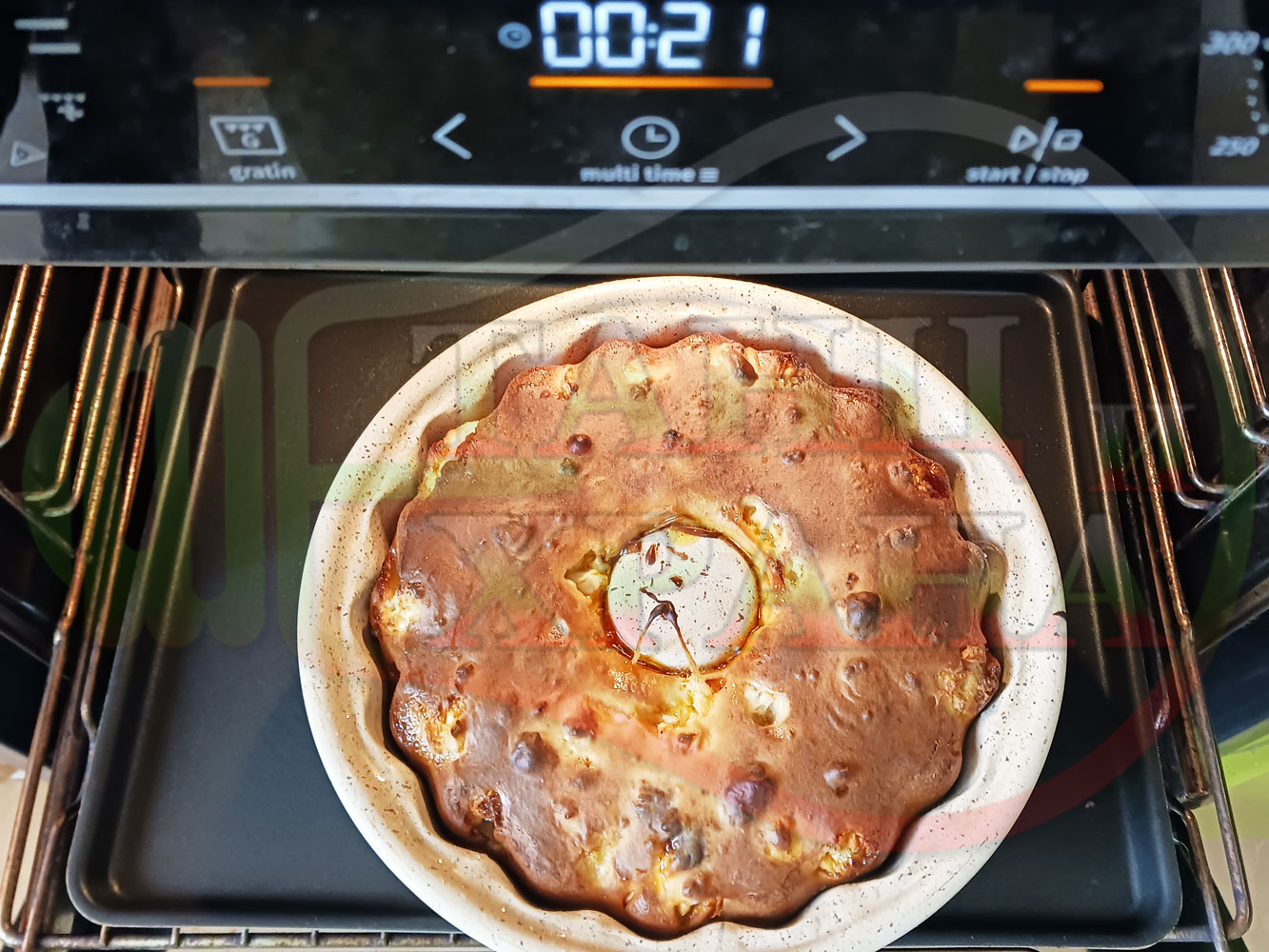 ВНИМАНИЕ: Фурните са различни и съответно времето за запичане е ориентировъчно. Наблюдавайте процеса на запичане и при необходимост, покрийте с хартия или фолио за печене. Не отваряйте кекса през първите 20 минути от началото на зададеното време за да не се слегне (моментът, кога да отворите фурната е доста тънък и почти винаги кексовете се слягат в някаква степен). За по-равномерно изпичане покрийте формата след 20-та минута от началото на зададеното време.