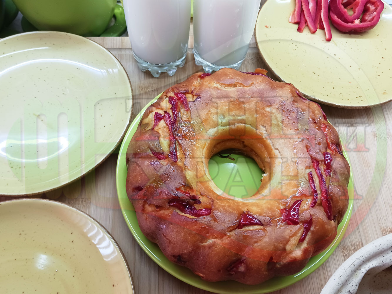 Добавете нарязано на малки парченца краве масло върху червения сладък пипер вместо слънчогледовото олио и/или намажете с масло кекса след изпичането му за дообогатяване на вкуса.
