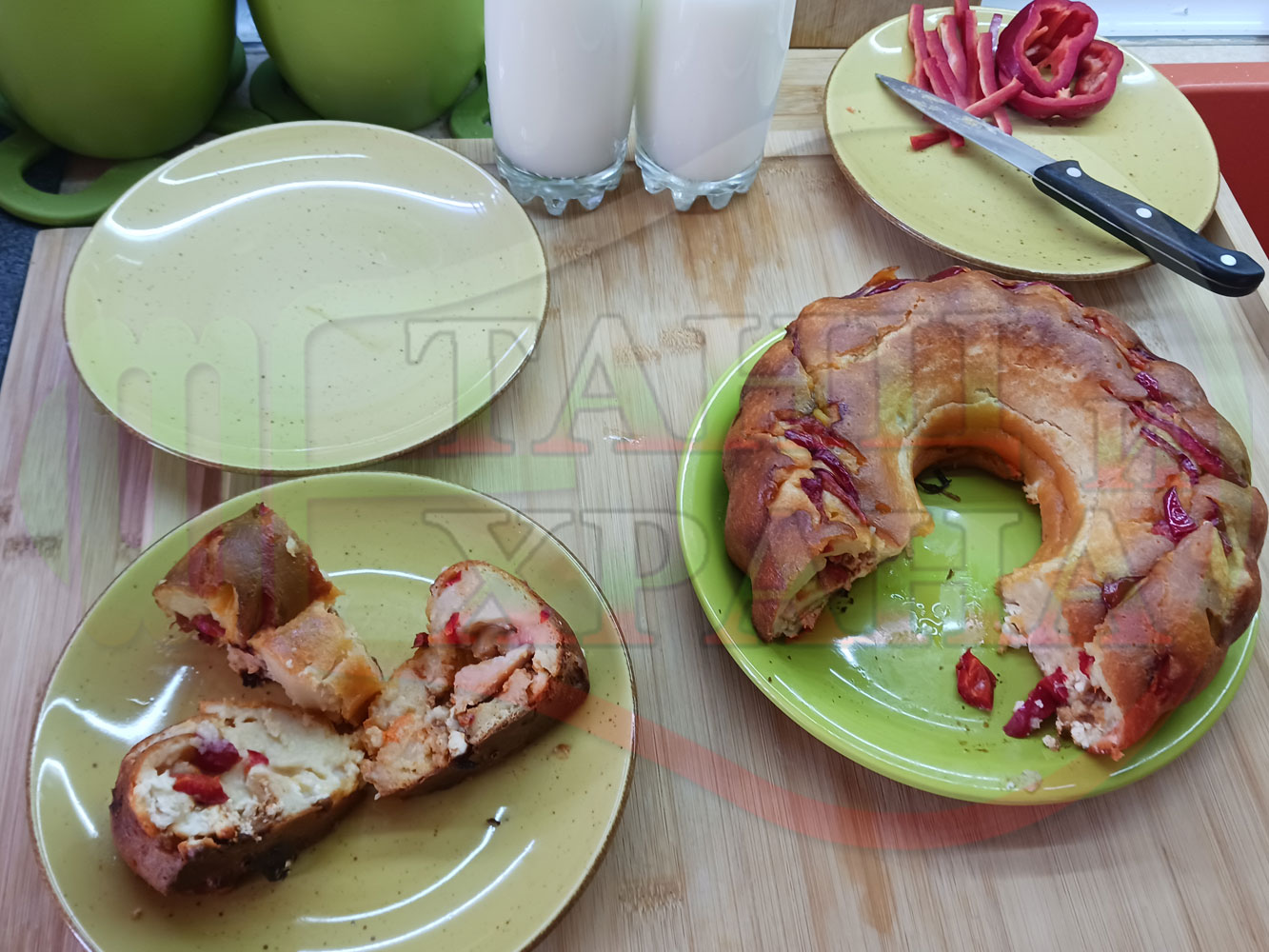 Колбасовият кекс със жарено филе се получи вкусен и ароматен, ухаещ на разтопено българско краве бяло саламурено сирене с червен сладък пипер (познат и обичан вкус от традиционно българско мезе). Ммммм... в кухнята се носи аромат на запечени червени чушки и жарено филе в идеална хармония със сиренето и червения сладък пипер. Отново се получи вкусно, вкусна, вкусотия (вкуснотия). laughing