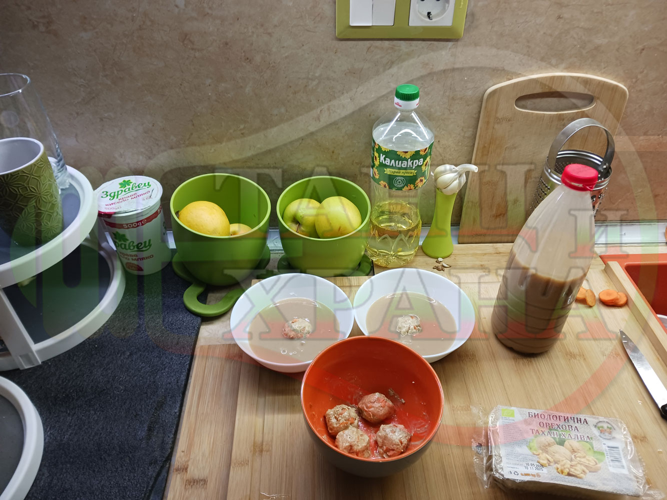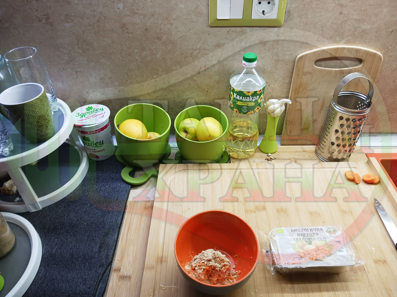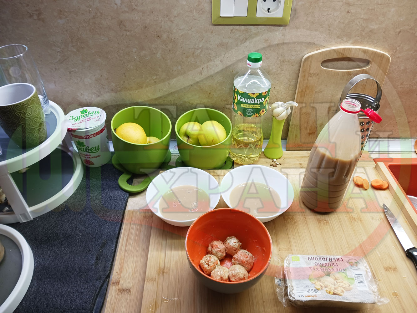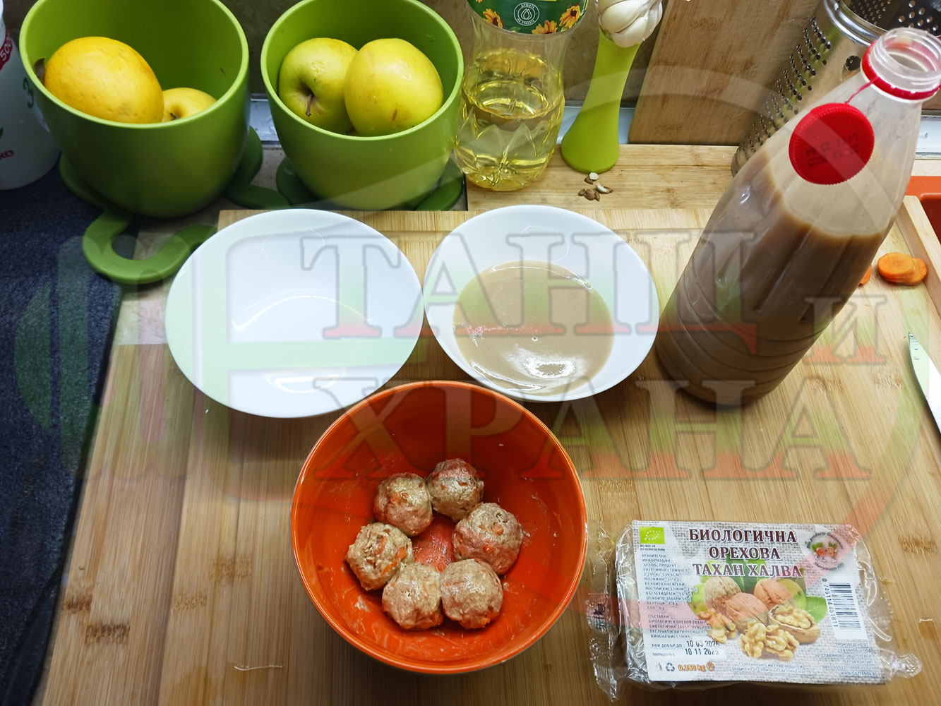 ПРОДУКТИ: Приблизителни количества за българска бозова сурова сладка супа "Бозаджийноморковена халвяноорехова" приготвена от боза гарнирана с топчета от халвяно морковен крем с пресни моркови и тахан халва с орехи подходяща за постещи хора - двукомпонентна