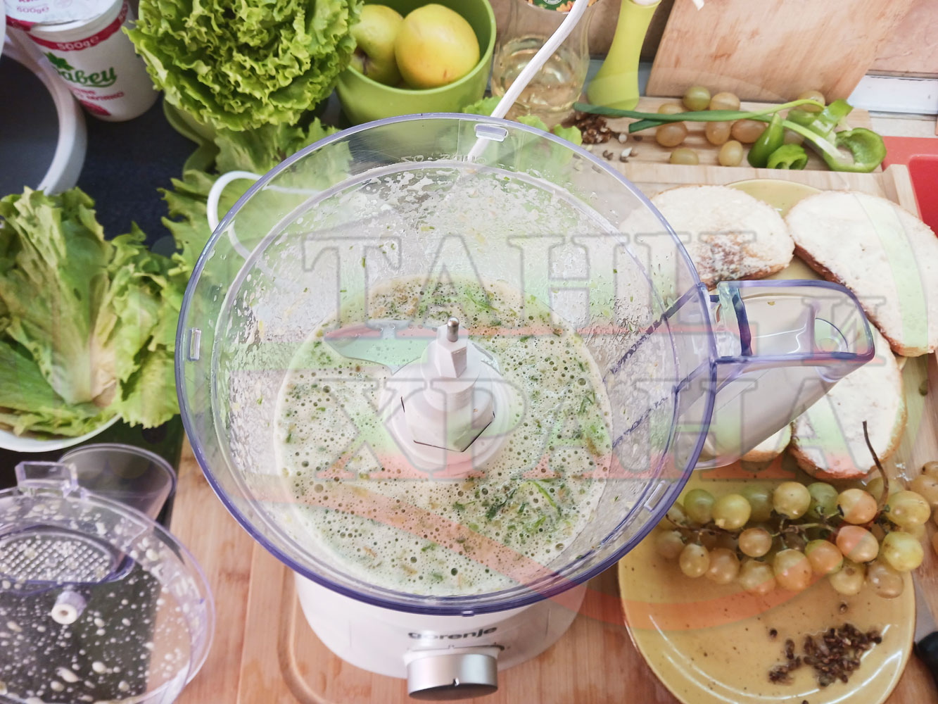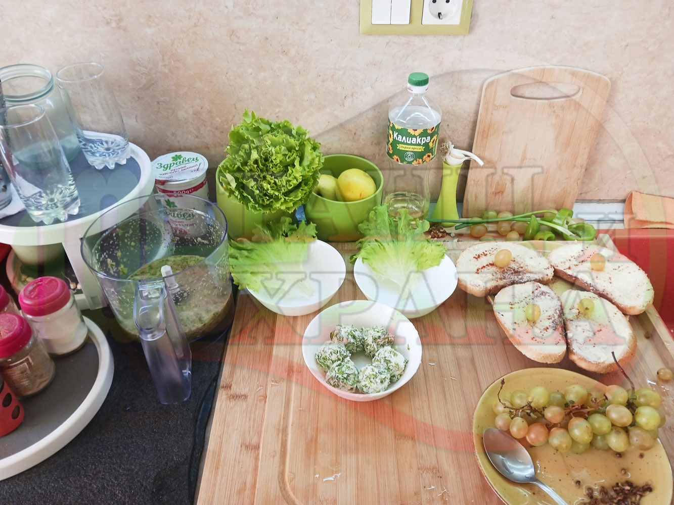 Спретнах изключително вкусна, сурова, сладко - солена, плодово - зеленчукова българска гроздова супа. Гроздовата супа се получи с лека кремообразност заради пресния лук и веществата, които съдържа в идеална хармония със саламурата от сиреново марулените топчета, съчетаваща полезните вещества, микроелементи и витамини на зеленолистните със зеленчуците и гроздето, дообогатени с млечните протеини.  Отново сътворих невероятно вкусно, вкусна, вкусотия (вкуснотия)... laughing