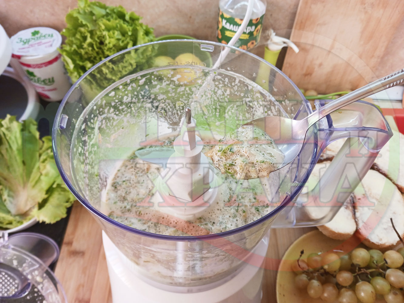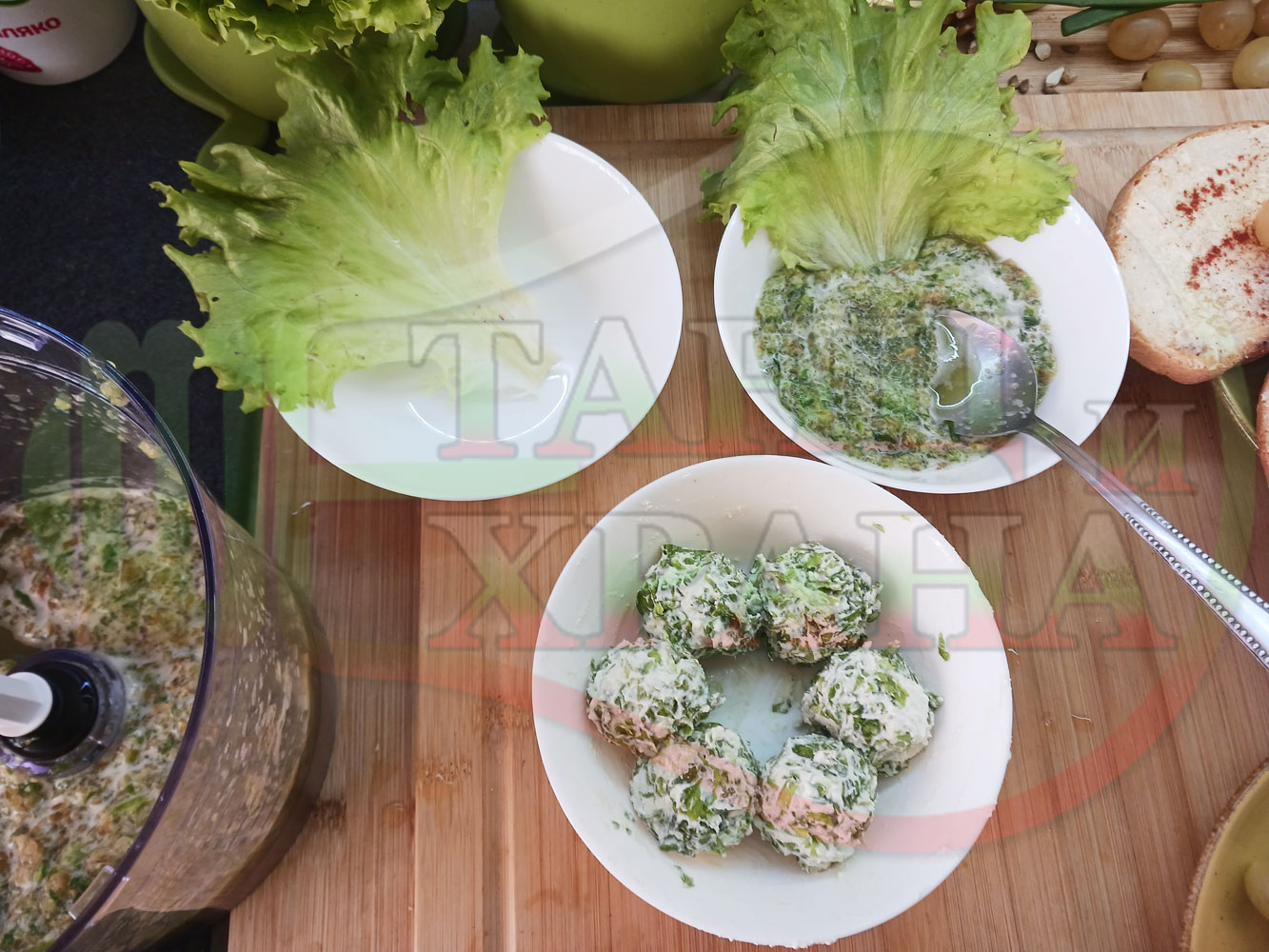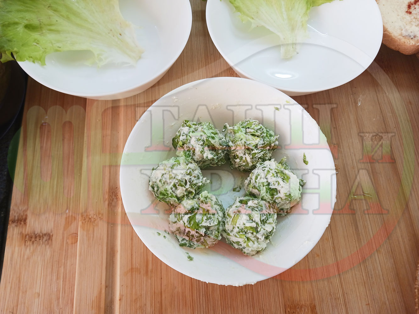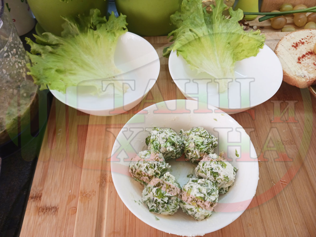 В случай, че сиреновият крем се получи прекалено гъст и солен, добавете измити и нарязани на едро марулени листа за да го разредите или сгъстете прекалено редкия крем с краве бяло сирене (винаги имайте под ръка някакво малко парченце (количество) от дадения продукт за доовкусяване и прецезиране на гъстотата). Разбърквайте и намачквайте с вилица след добавянето на съответния продукт (за сгъстяване или разреждане) за да прецените гъстотата и вкуса на крема (зависи от големината на марулените листа, вида на марулята и водното й съдържание и от вида и солеността на сиренето). Съобразявайте и според вида на супата, която ще гарниране със сиреновите топчета и водното и съдържание и особености (в случая е гроздовата супа).