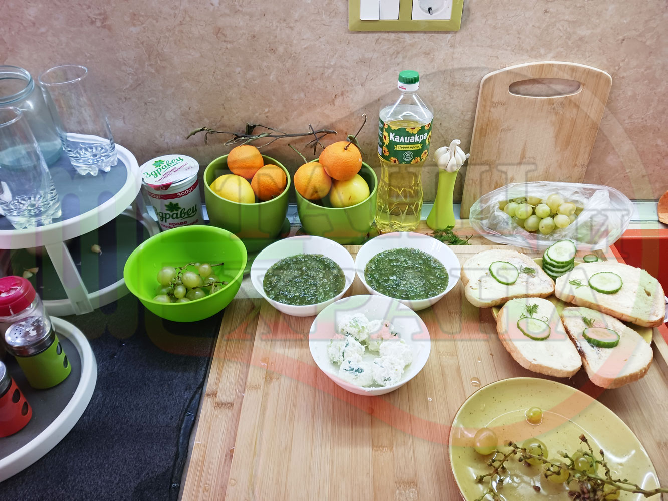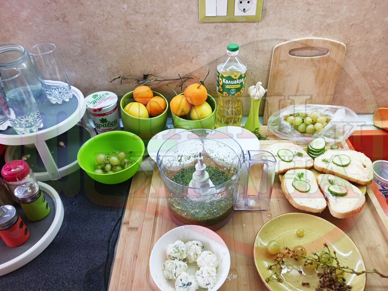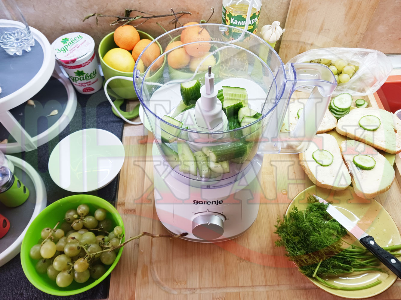 ПРОДУКТИ: Приблизителни количества за българска сурова сладко солена супа "Гроздовокопърова сиреновокраставична с БГсирене" приготвена с прясно грозде, краставици и свеж копър гарнирана с топчета от сиреново краставичен крем с краве бяло сирене (българско, саламурено) - двукомпонентна