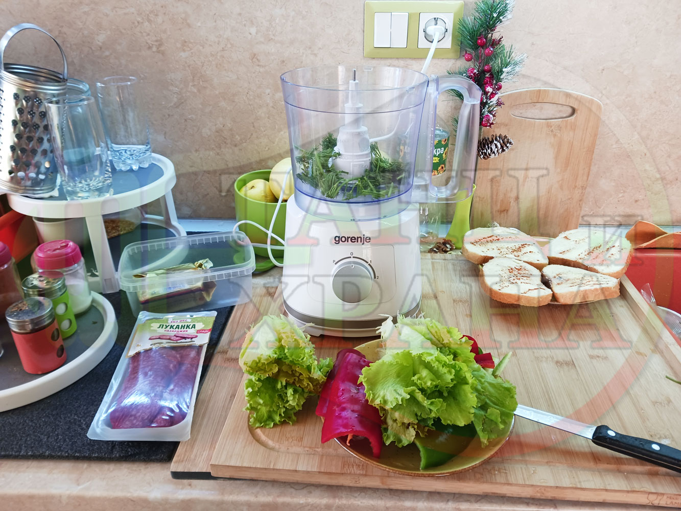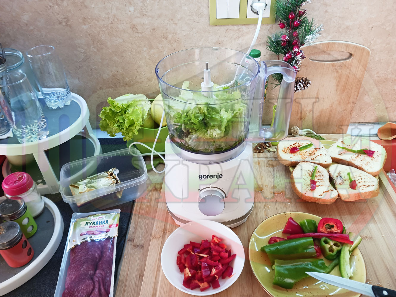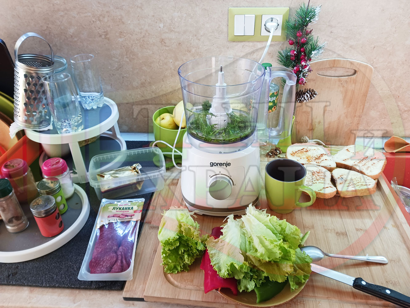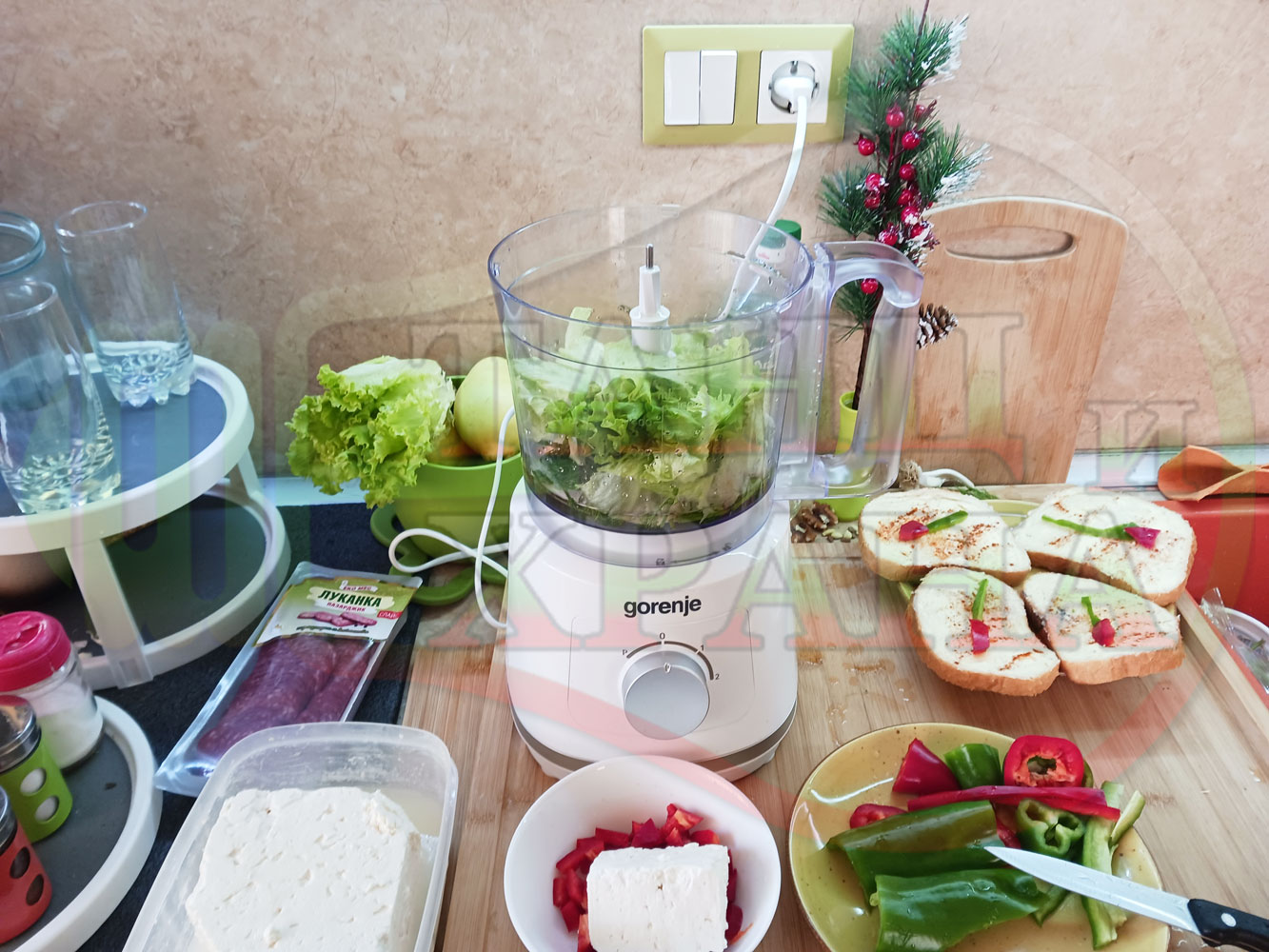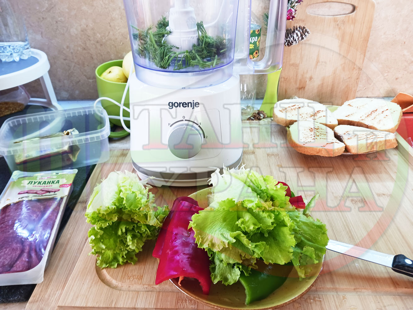 ПРОДУКТИ: Приблизителни количества за българска сурова студена супа "Марулена зеленопиперкова чайножасминова с БГсирене" приготвена от маруля, копър, зелени чушки и зелен чай със жасмин гарнирана с луканка и с топчета от сиренов крем с червени чушки и краве бяло сирене - двукомпонентна