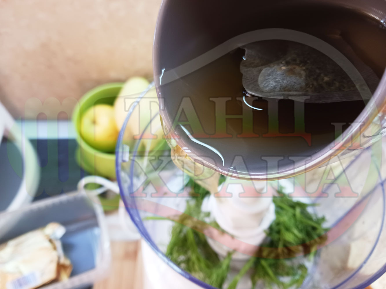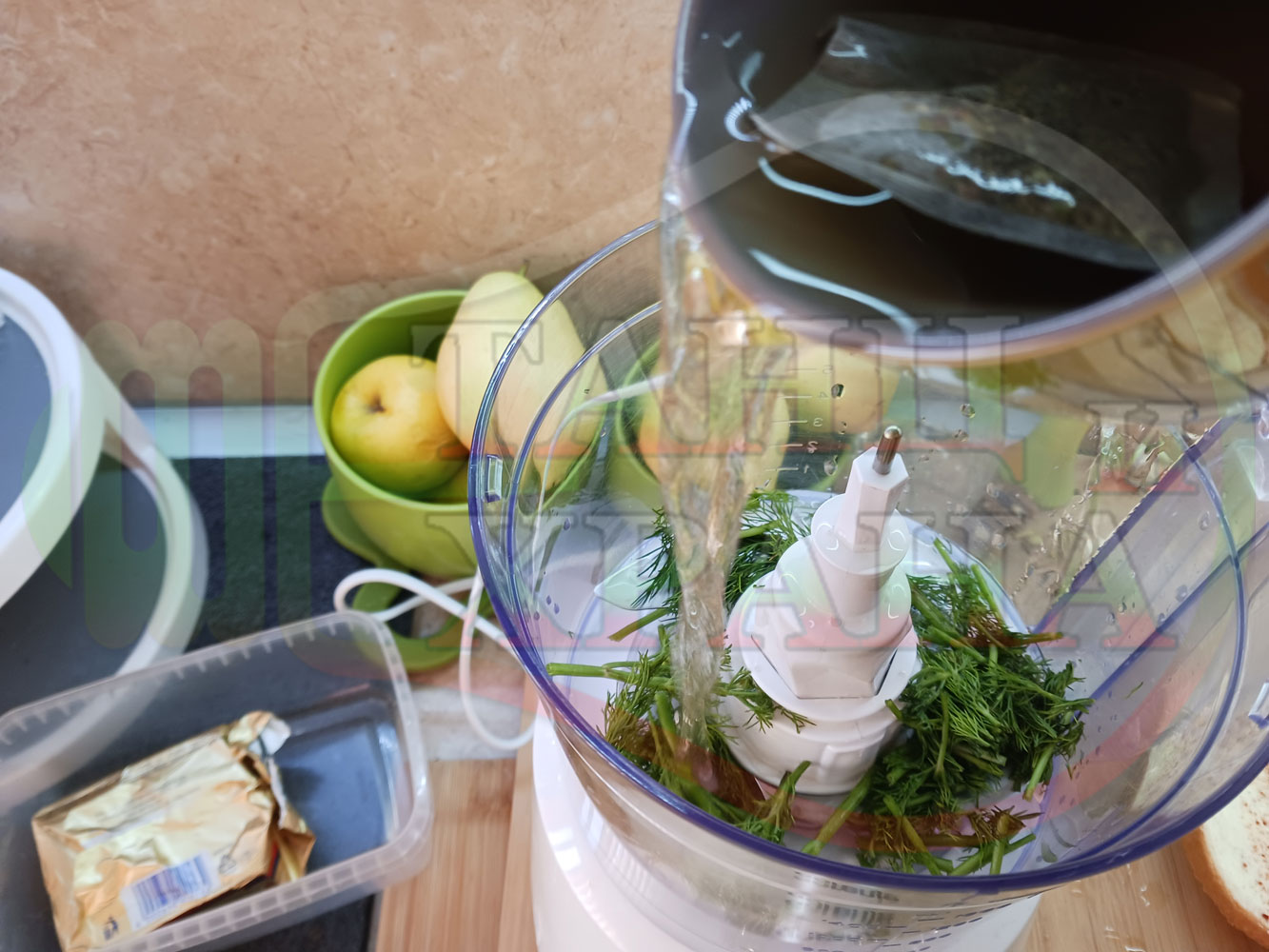 В случай, че сиреновият крем се получи прекалено гъст и солен, добавете измита, почистена от семките и нарязана на малки парченца червена чушка за да го разредите или сгъстете прекалено редкия крем с краве бяло сирене (винаги имайте под ръка някакво малко парченце (количество) от дадения продукт за доовкусяване и прецезиране на гъстотата). Разбърквайте и намачквайте с вилица след добавянето на съответния продукт (за сгъстяване или разреждане) за да прецените гъстотата и вкуса на крема (зависи от големината и водното съдържание на чушката/ите и солеността на сиренето). Съобразявайте и според вида на суровата супа и водното и съдържание и особености (в случая е марулената супа с копъра, зелената чушка и зеления чай).