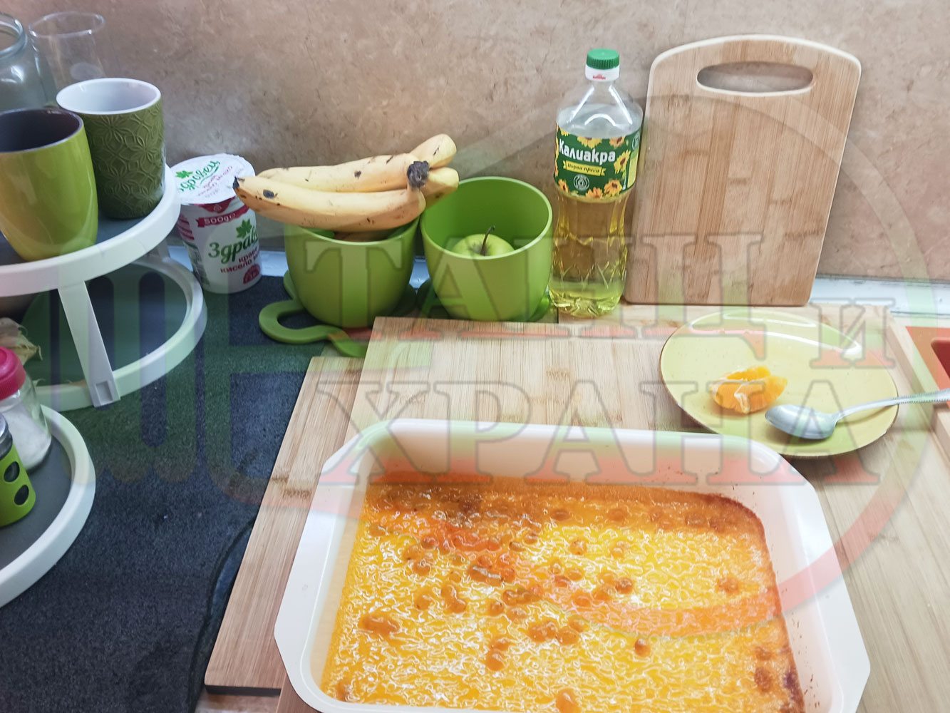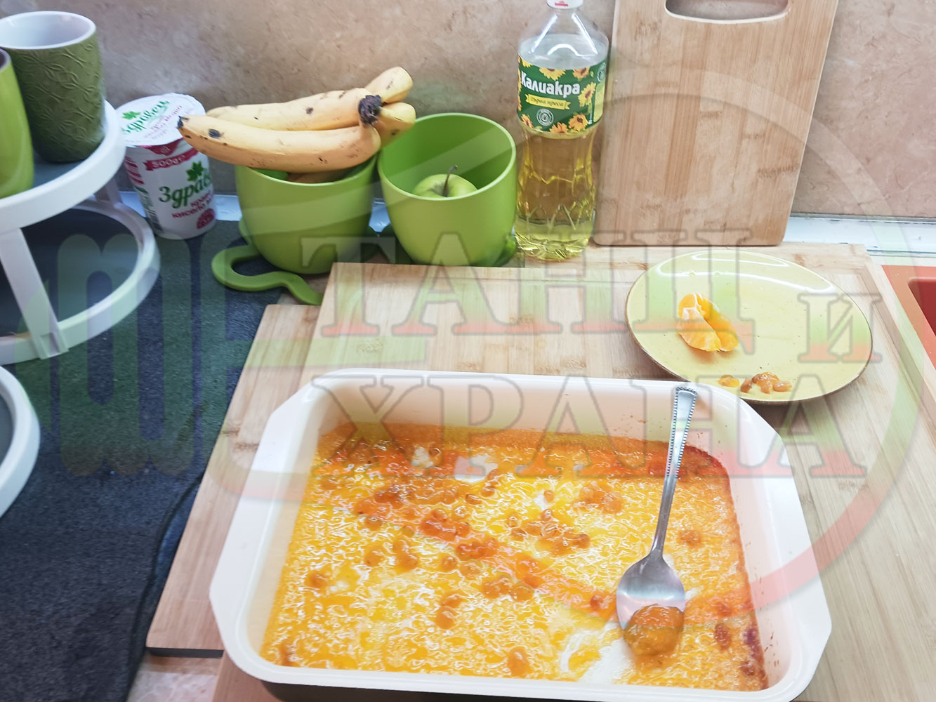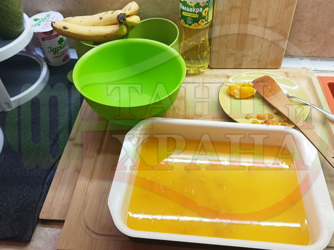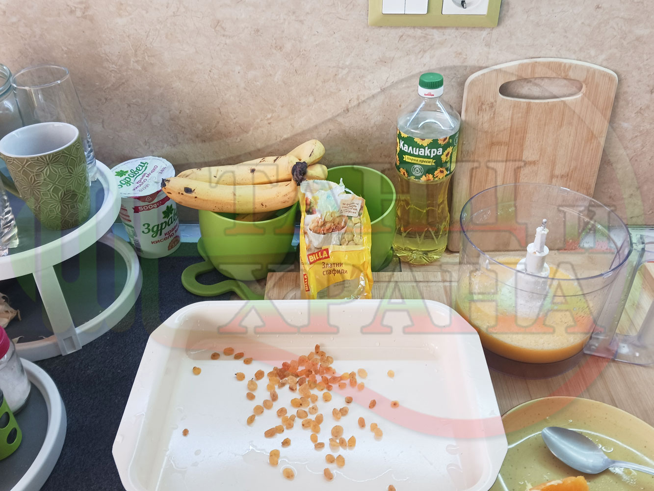 ПРОДУКТИ: Приблизителни количества за български портокалов постен кремообразен кекс "Портокаловостафиден" приготвен с пресни портокали, кристална и пудра захар, нишесте праскова, брашно без набухвател и златни стафиди подходящ за постещи хора