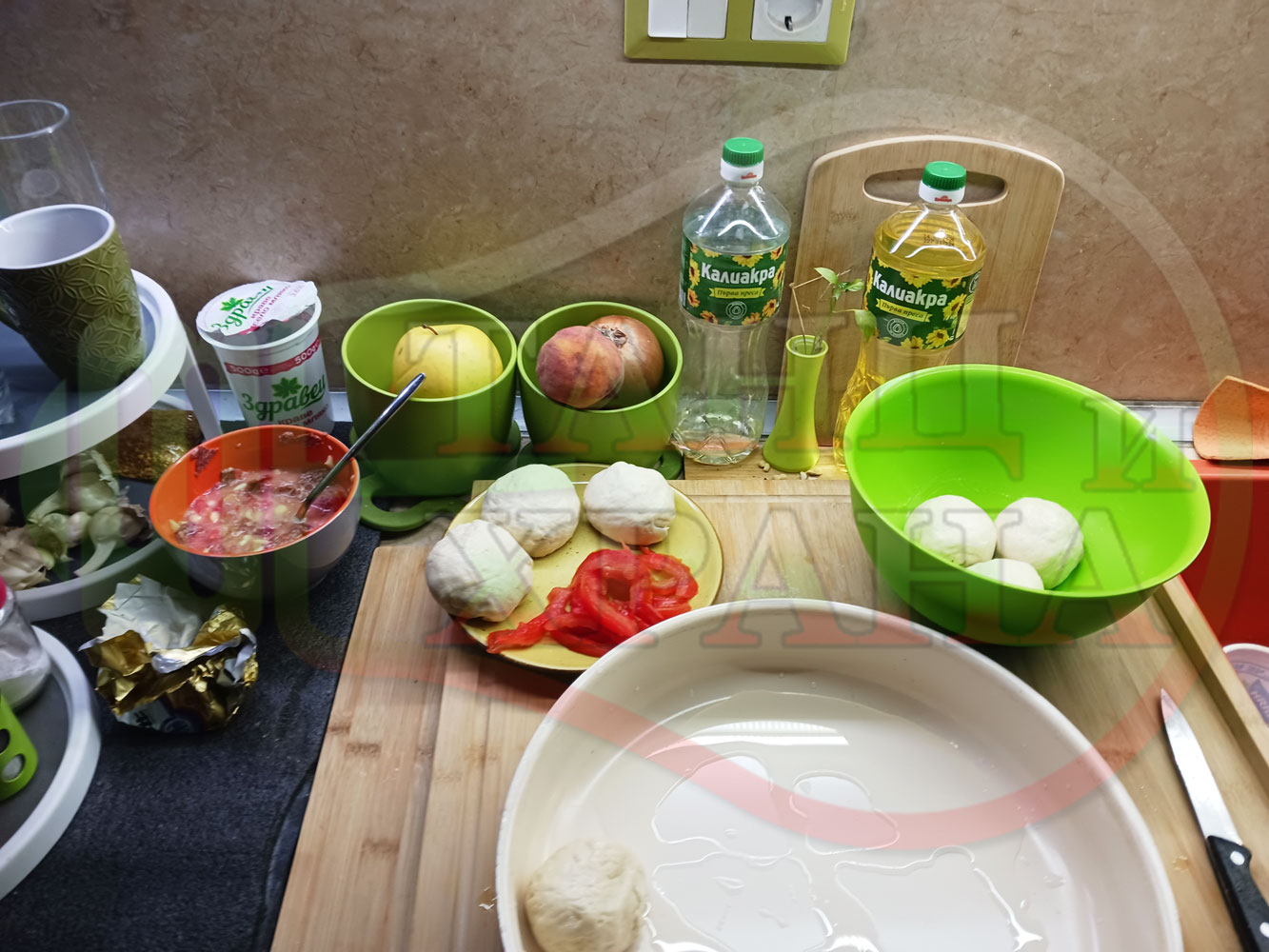 ПРОДУКТИ: Приблизителни количества за пълнени питки "Смядовсколуканкови доматеночеснови" запечени на фурна с масло и яйчено доматена плънка от пресни домати, стар чесън, яйца и смядовска луканка омесени със суха мая