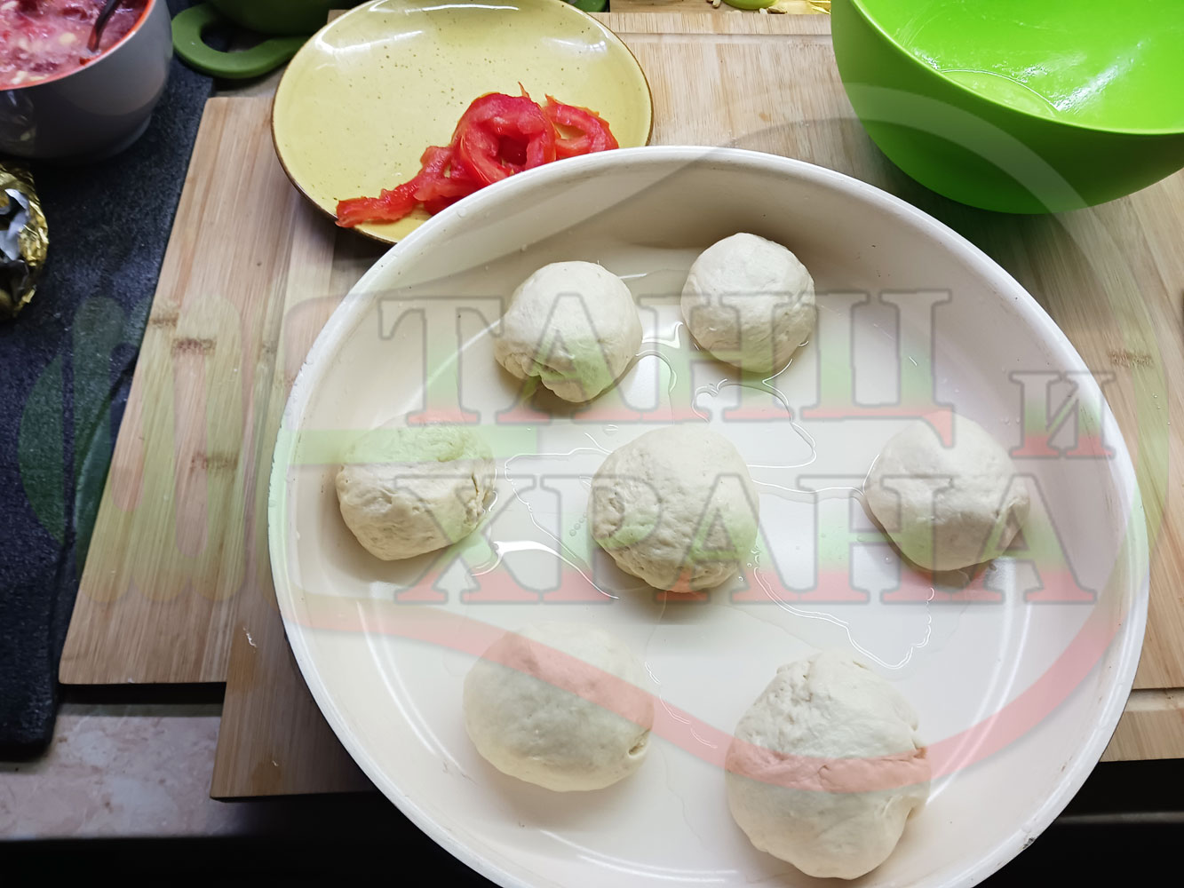Поставете тавата с втасалите питки в предварително загрятата фурна (загрейте я за поне 5 минути). Запечете на фурна без вентилатор на 180 градуса за около 60 минути.