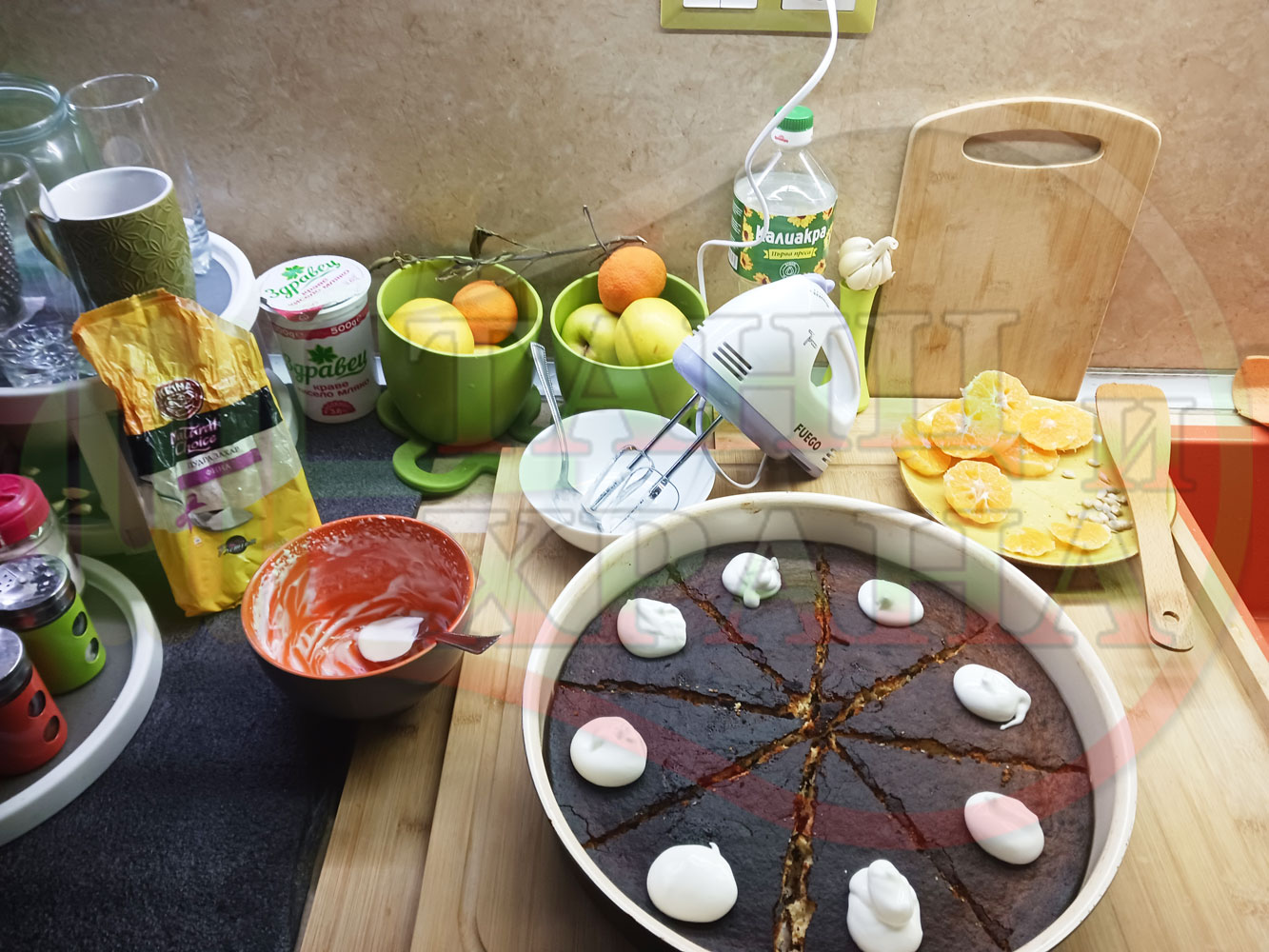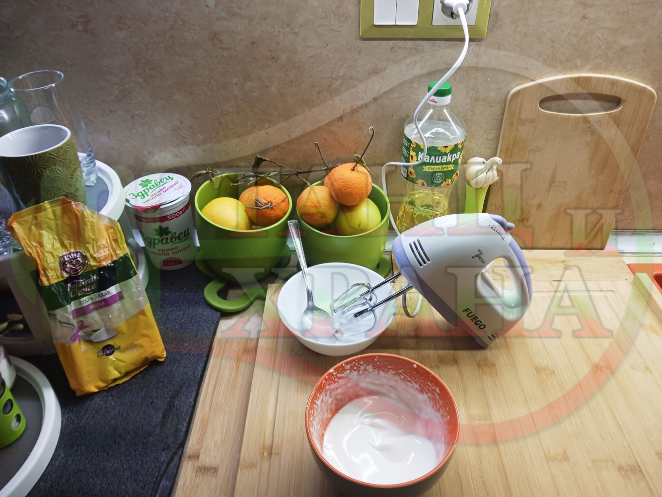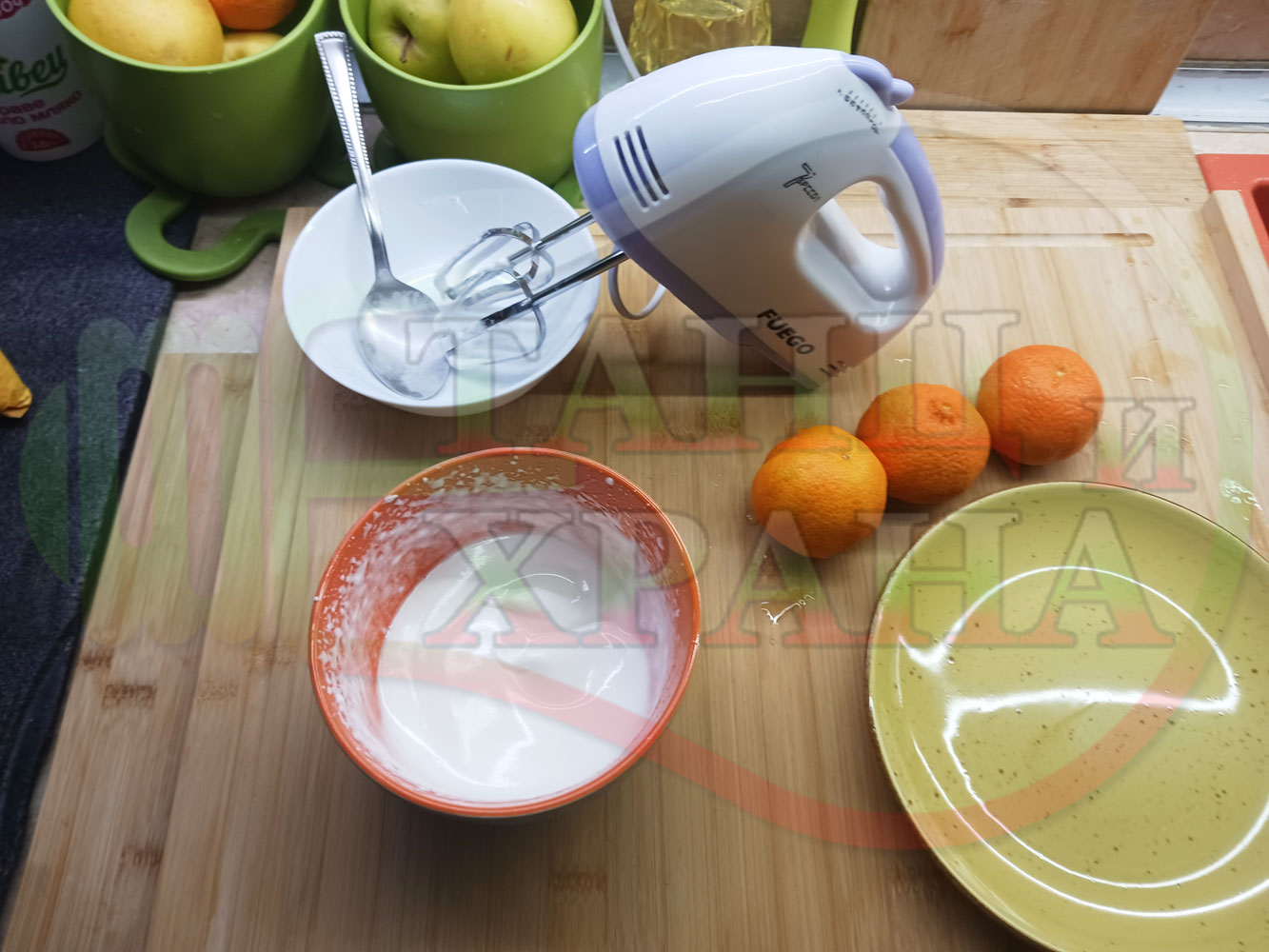 Бях си наумила да приготвя белтъчен десерт с някакъв пресен плод, така че белтъка да не се преизсушава и става ронлив (както се получава с белтъчния десерт наречен "целувки"). Комбинацията от белтък и пресен сочен плод е доста трудна за изпичане и все търсех някакъв начин да успея и накрая успях да приготвя десерт, в който да участват белтъците и пресните плодове в идеална хармония и баланс (успехът е домашен, наш си, според нашия вкус (наш - семейството ми)). Спретнах кексова торта, която дозапекох с белтъчен крем, гарниран с пресни, сочни мандарини. Тортата се получи изключително вкусна с невероятната комбинация от кекс, който носи сочността на пресния плод и меката кремообразност на белтъчния крем. Ммммм... отново се получи голяма вкусно, вкусна, вкусотия (вкуснотия). ![]()