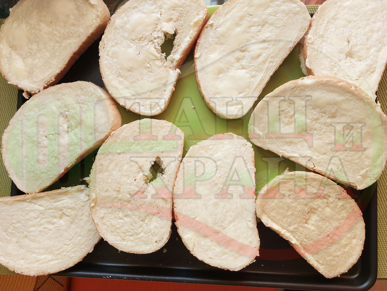ПРОДУКТИ: Приблизителни количества за български филийки "Маслиновочерни с БГсирене" намазани с краве масло, запечени на мини скара с яйчено сиренова плънка приготвена от яйца, черни маслини и краве бяло сирене (българско, саламурено)