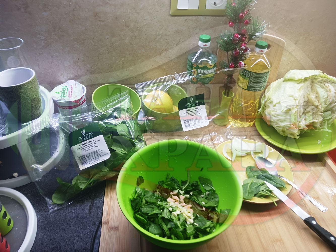 Спретнах вкусна спаначена яхния с изключително малко продукти и с по-голямо количество вода за приготвяне на производни ястия с останалия спаначен бульон. Добавих нежния спанак в тавата около 10 минути преди края на зададеното време за да остане максимално свеж и да запази зеления си цвят и богатството от полезни съставки съдържащи се в хлорофила. Отново се получи невероятна вкусно, вкусна, вкусотия (вкуснотия)...