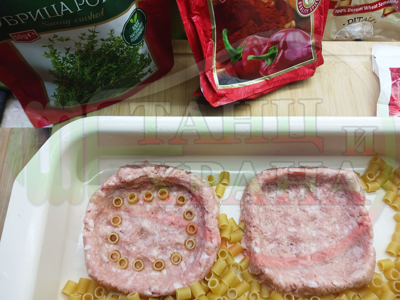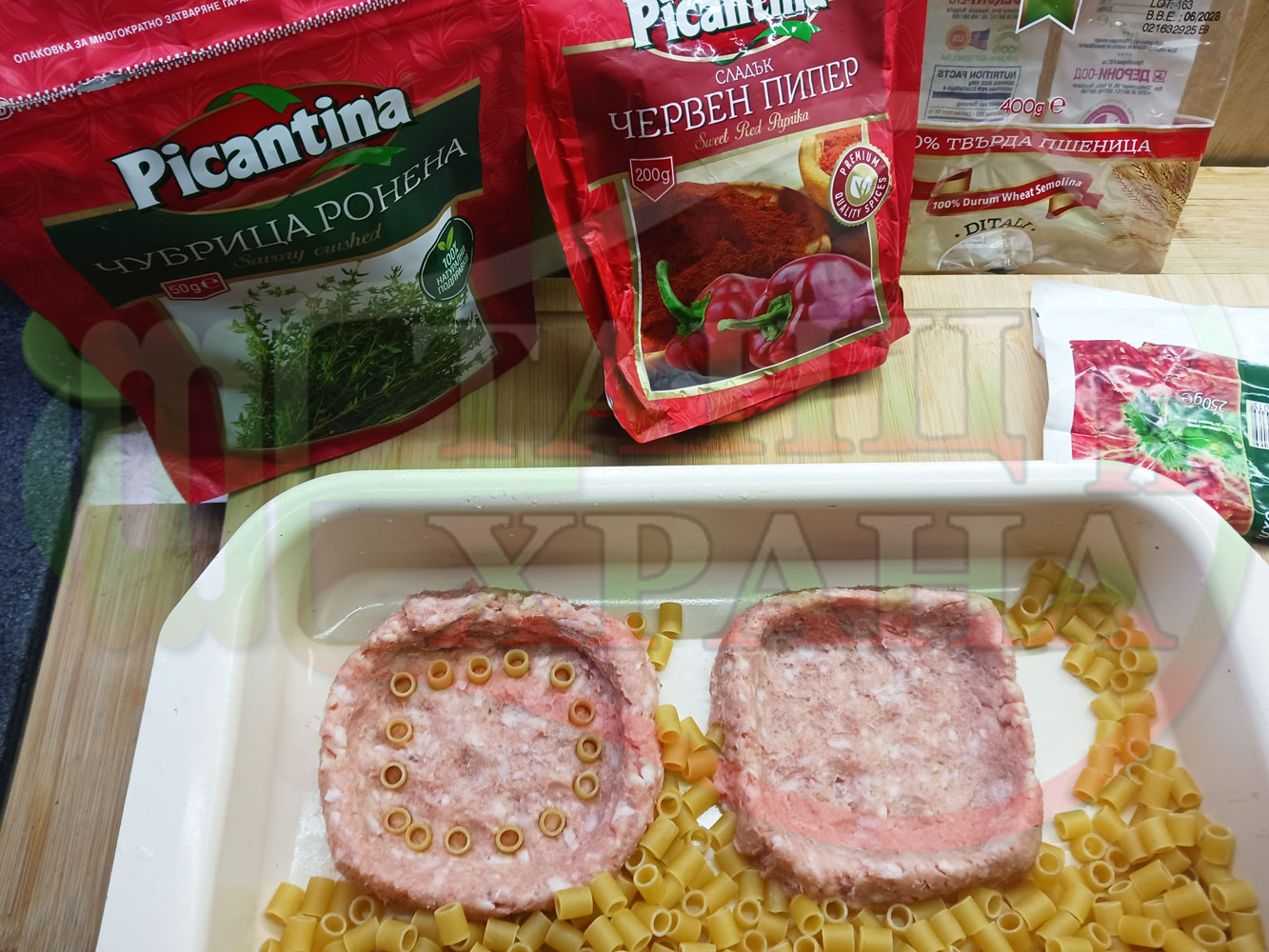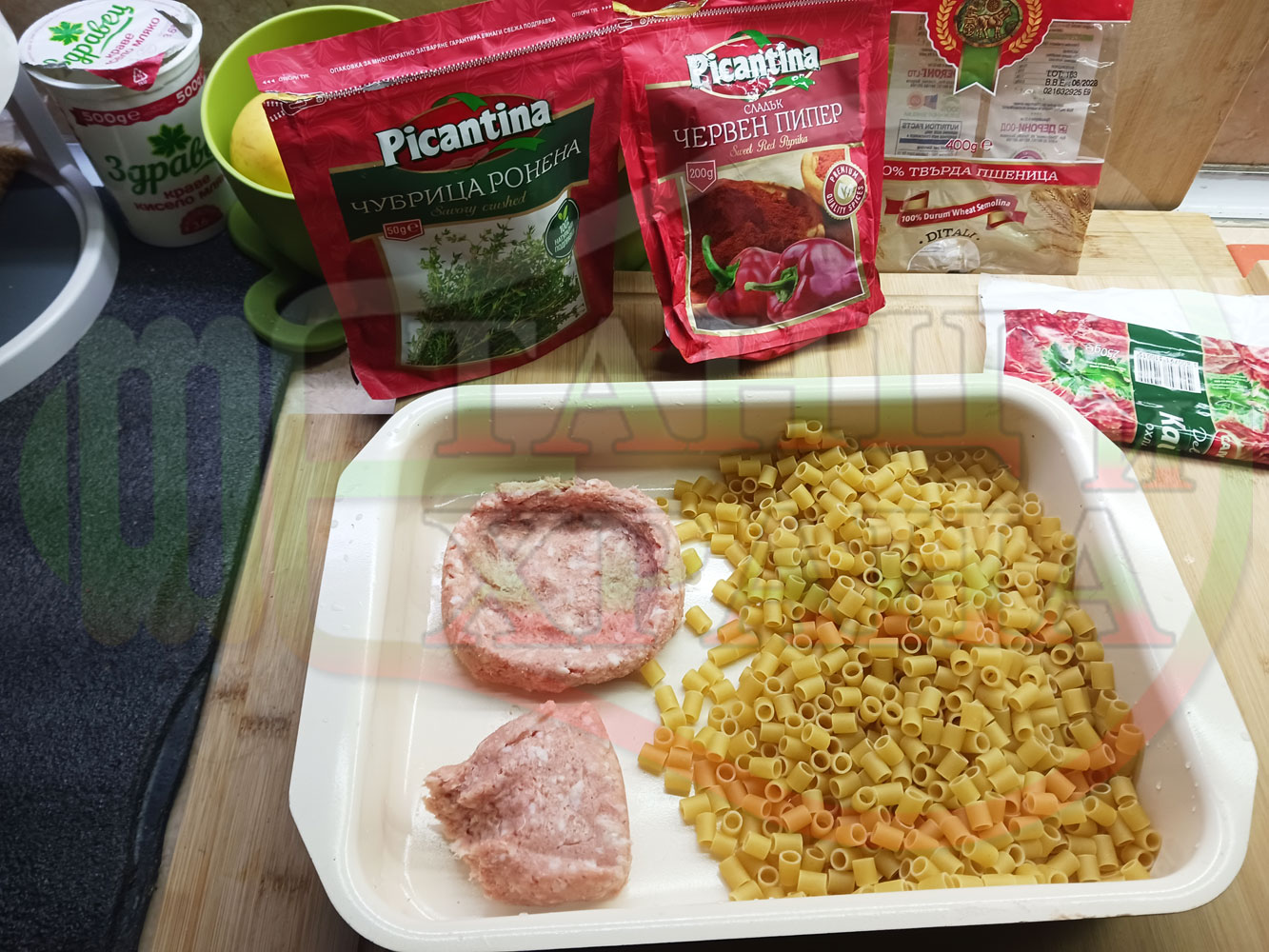 ПРИГОТВЯНЕ НА КАЙМЯНИТЕ КВАДРАТНИ КЮФТЕТА И СВАРЯВАНЕ С МАКАРОНИТЕ (ОСНОВЕН КОМПОНЕНТ ЗА 2 И ПОВЕЧЕ ЯСТИЯ)