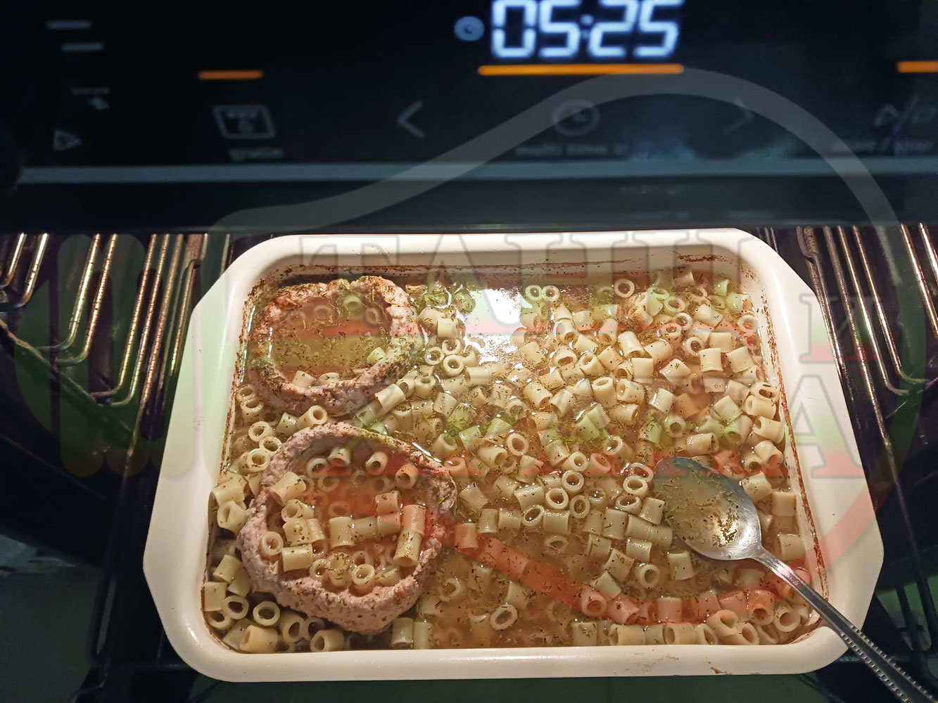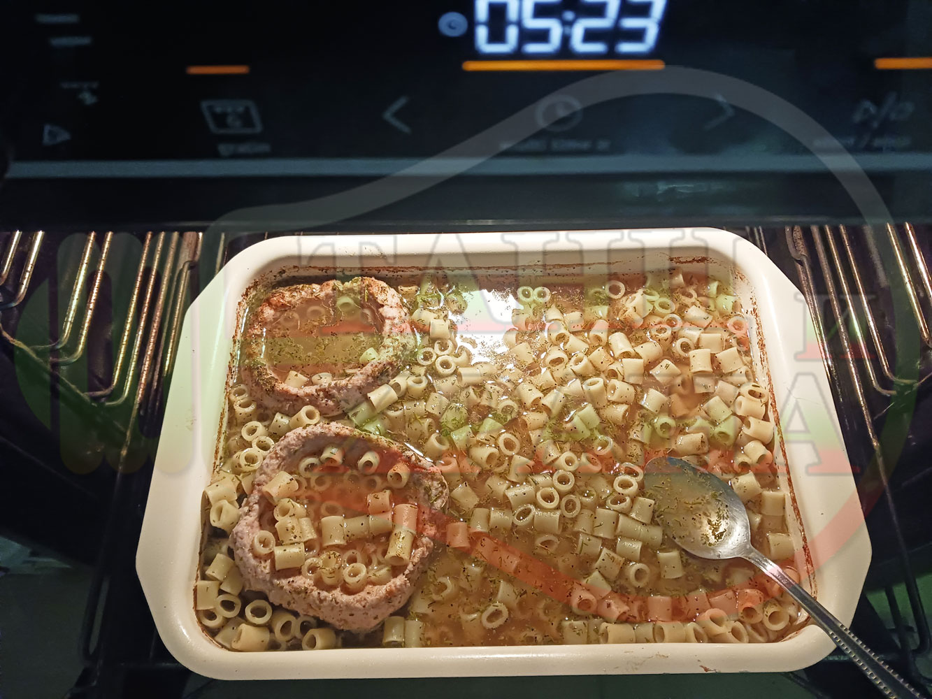 ВНИМАНИЕ: Фурните са различни и съответно времето за сваряване и запичане е ориентировъчно. Наблюдавайте процеса на запичане и при необходимост покрийте с капак или отстранете тавата от фурната.
