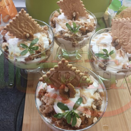 Обичаме да похапваме бисквити. Често правех различни комбинации с бисквити, които помня от моето детство. Любими ми бяха бисквитите намазани с масло и мед или домашно сладко. Киселото мляко с начупени на едро чаени бисквити, малини и мед е любим домашен десерт на цялото семейство до ден днешен. През годините макар и рядко приготвях различни бисквитени торти.