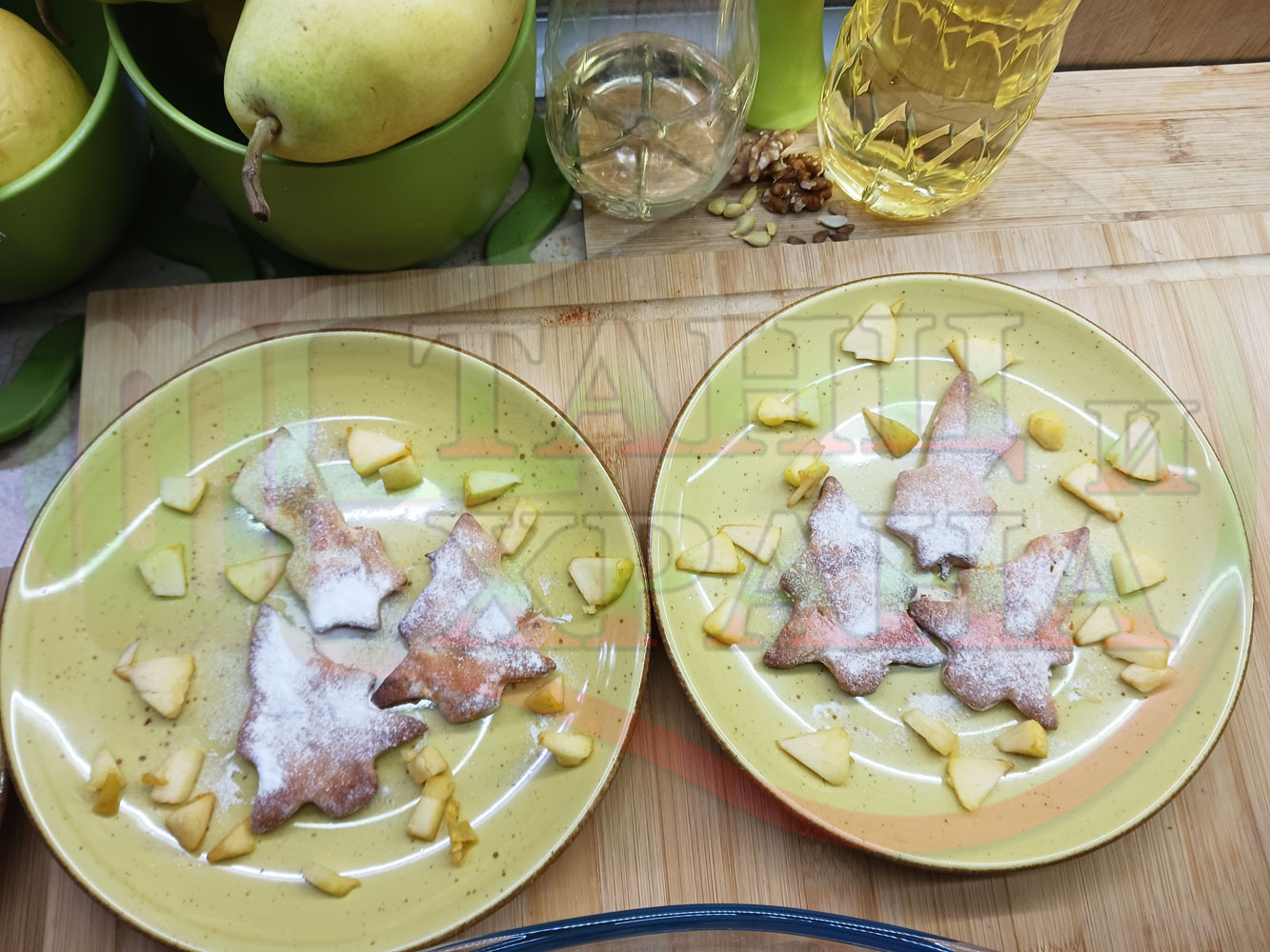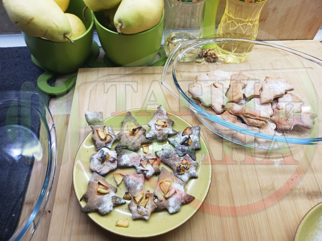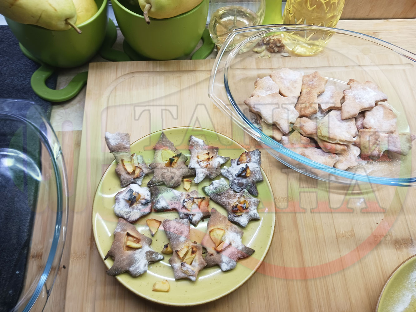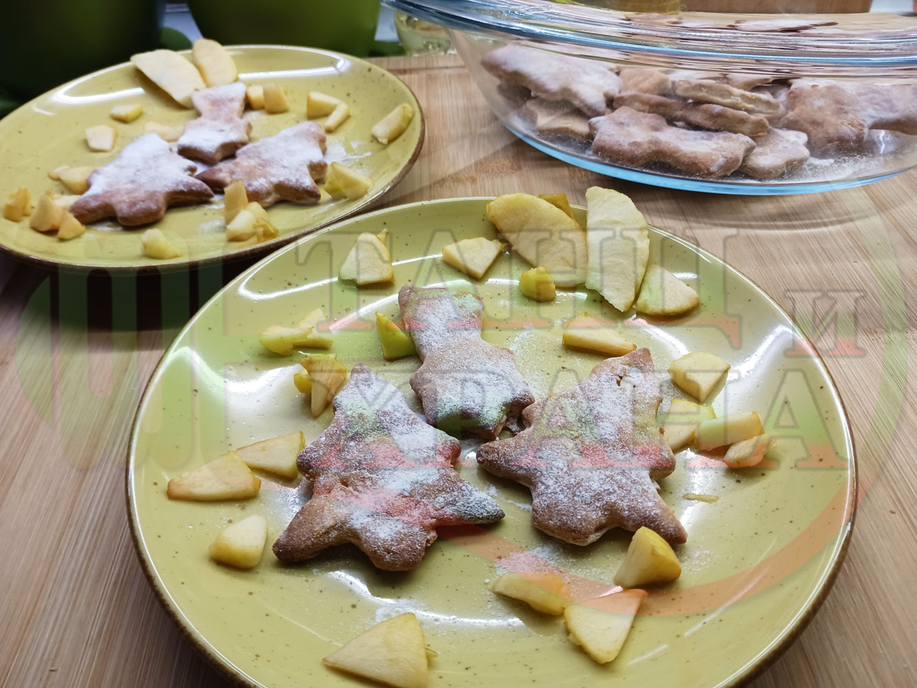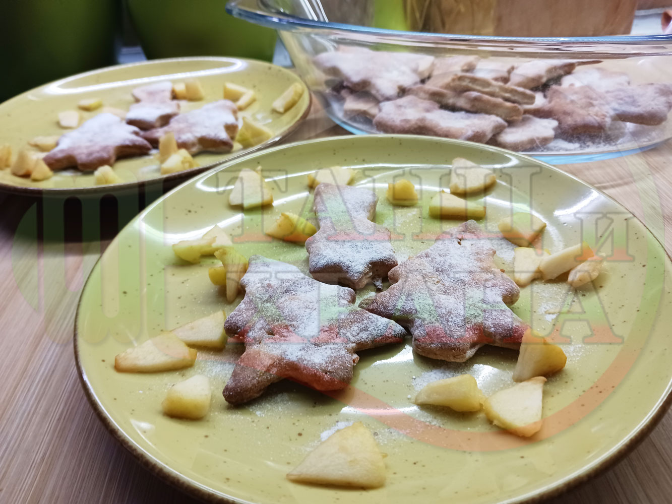 Български класически коледни курабийки "Ябълкови канелени" приготвени с пресни ябълки и канела за Коледа 2025 г. омесени с брашно, яйца и кристална захар