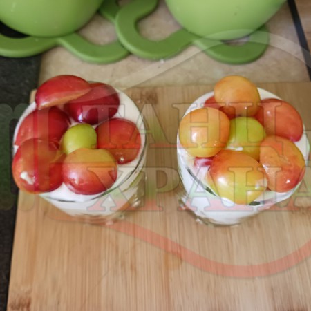Често правя млечни десерти с различни видове плодове. Киселото мляко присъства ежедневно на нашата трапеза. Така ми хрумва да го съчетавам понякога с наглед несъвместими продукти. Получават се изключително вкусни десерти с кисело и прясно мляко, което е произведено в моята родна, мила страна България.