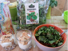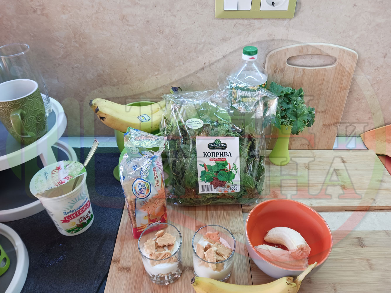ПРОДУКТИ: Приблизителни количества за бисквитен млечен десерт "Бисквитен копривнобананов" приготвен с обикновени бисквити и кисело мляко от България с копривен бананов крем от банани и свежа коприва